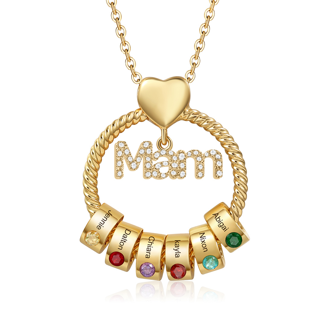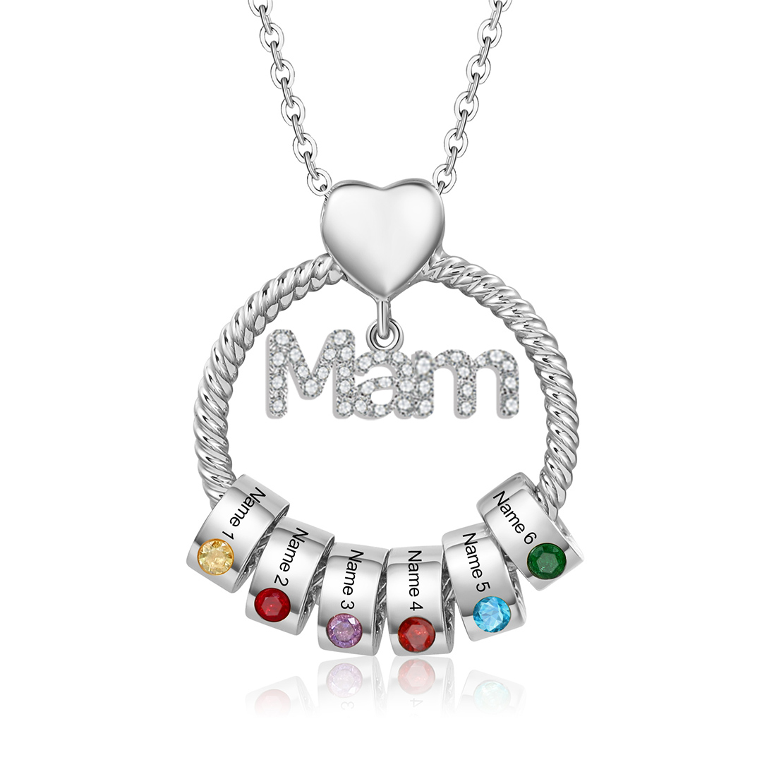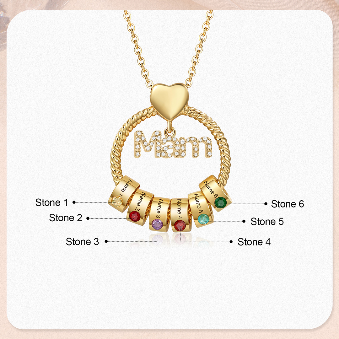 6 Names-Personalized Mam Circle Necklace With 6 Birthstones Pendant Engraved Names Gift For Mother