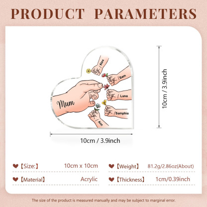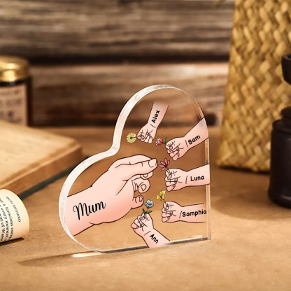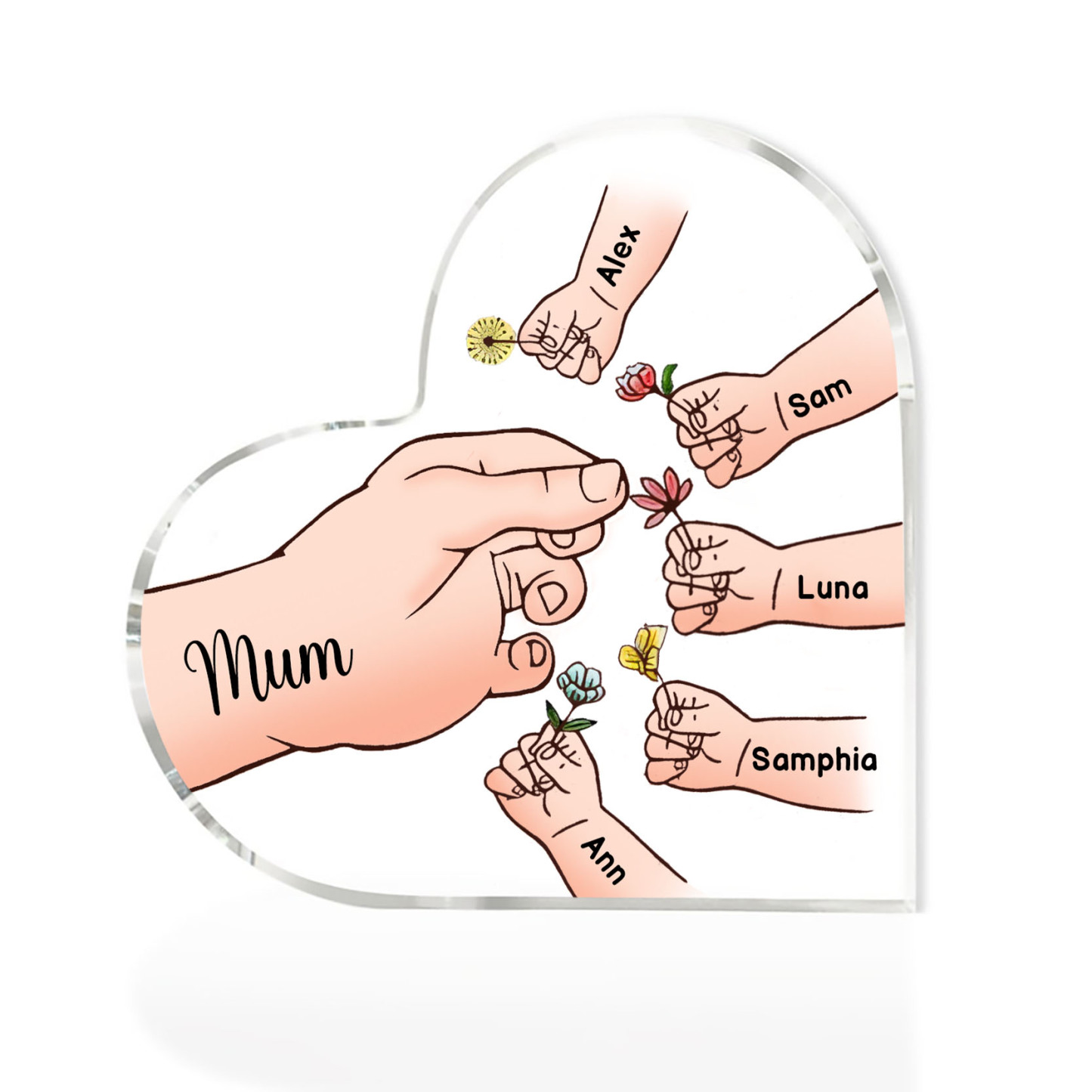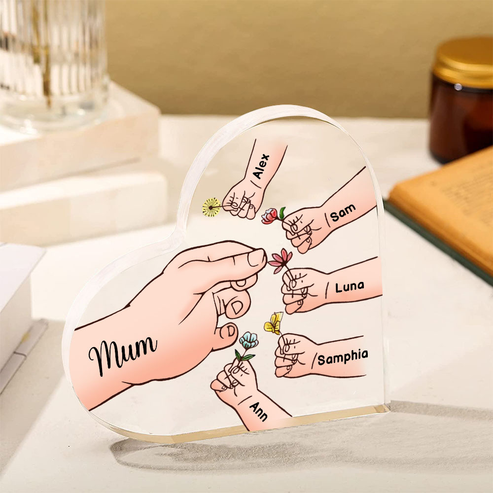 6 Names-Personalized Mom Acrylic Heart Keepsake Giving Flowers Ornaments Gifts Set With Gift Box for Grandma/Mother