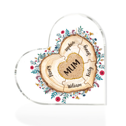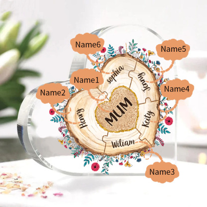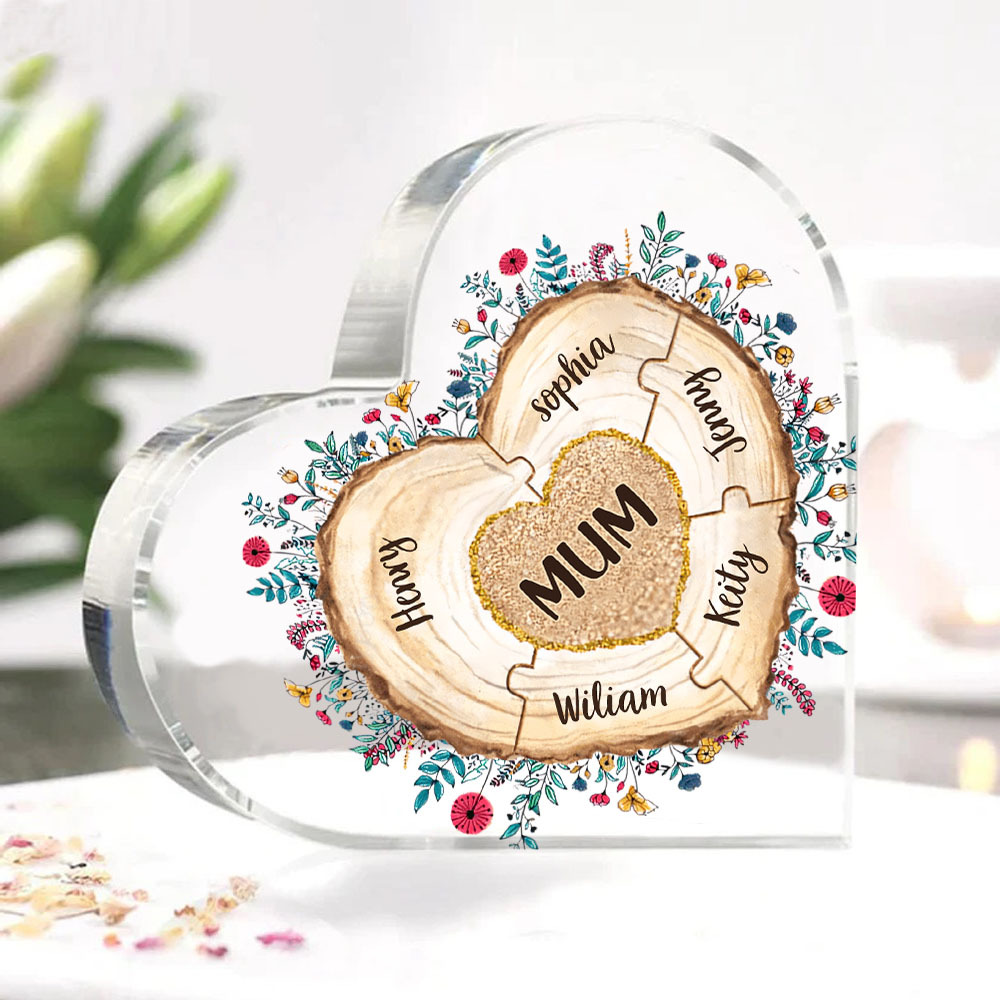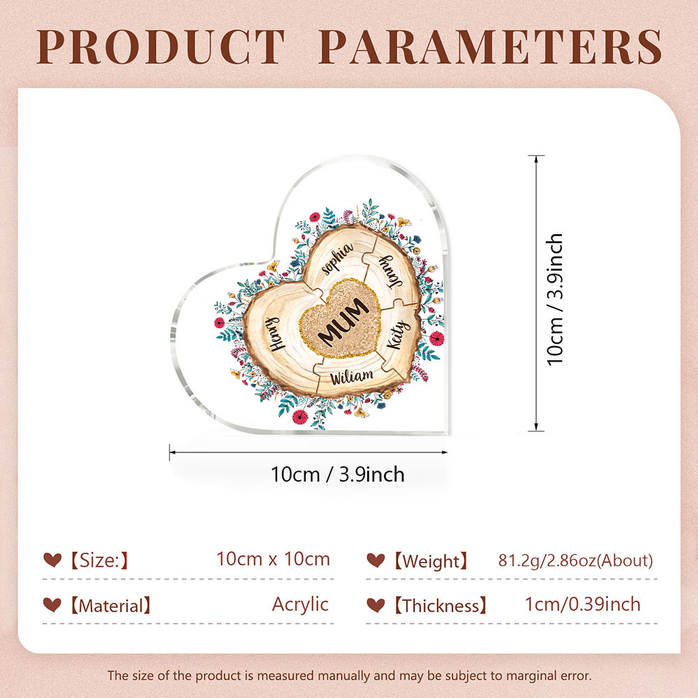 6 Names-Personalized Mom Acrylic Heart Keepsake Growth Rings Ornaments Gifts Set With Gift Box for Grandma/Mother