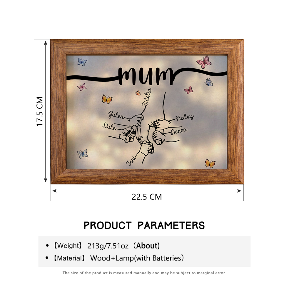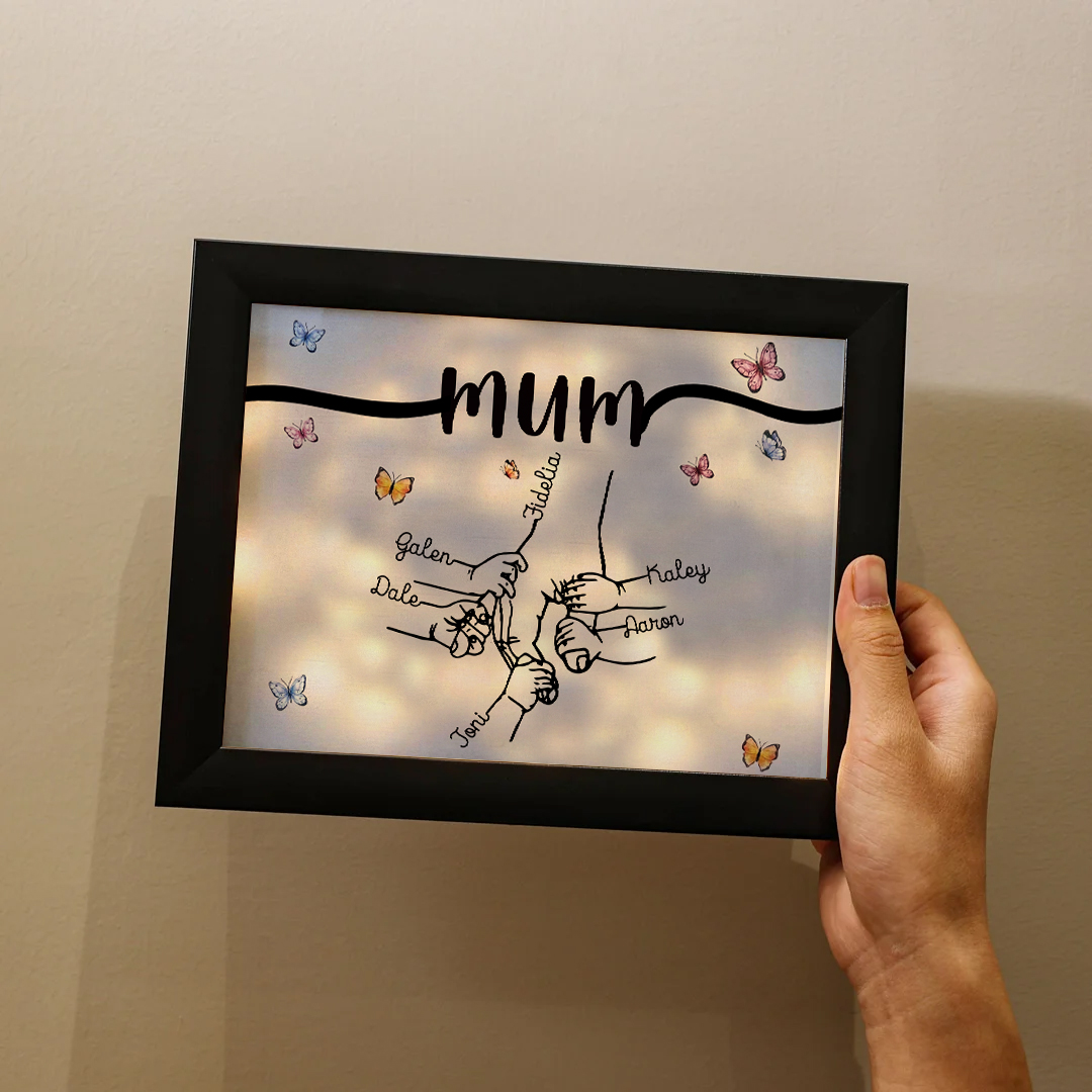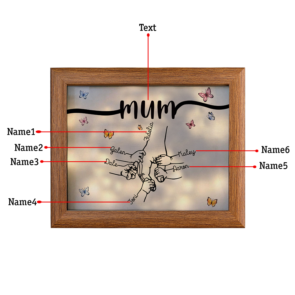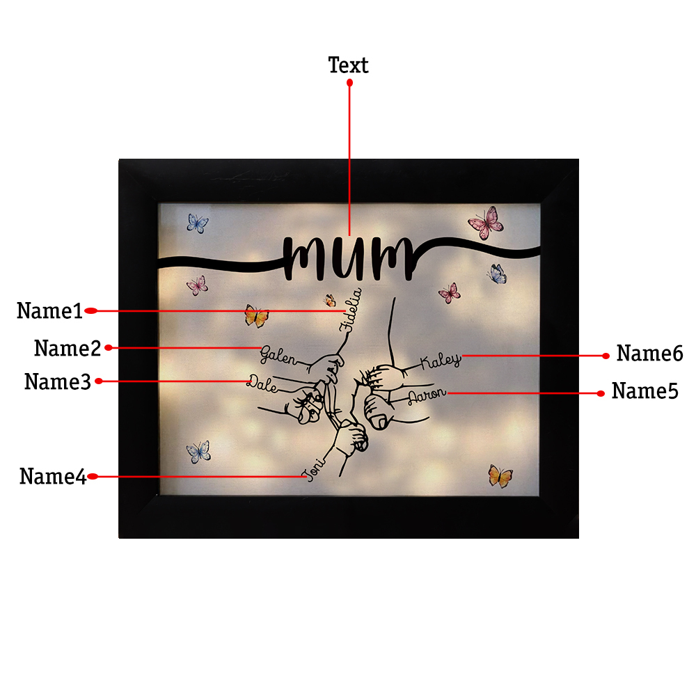 6 Names-Personalized Mum Family Hooking Hands Frame Custom Text LED Night Light Gift For Mum