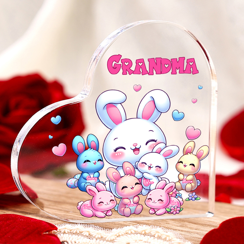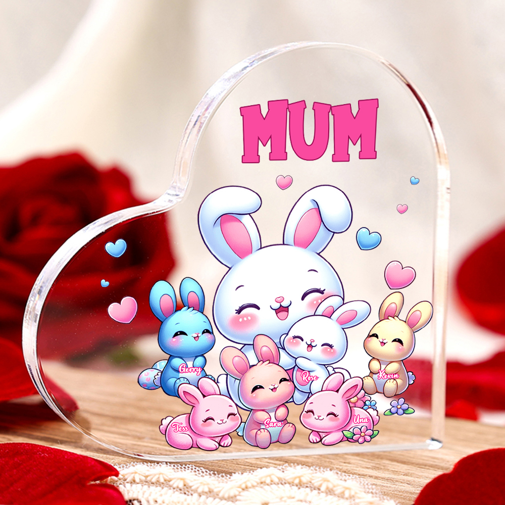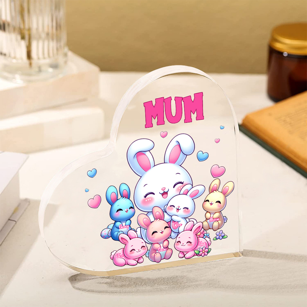 6 Names-Personalized Mum Rabbit Acrylic Heart Keepsake Custom Text Acrylic Plaque Ornaments Gifts Set With Gift Box for Nan/Mother for Easter