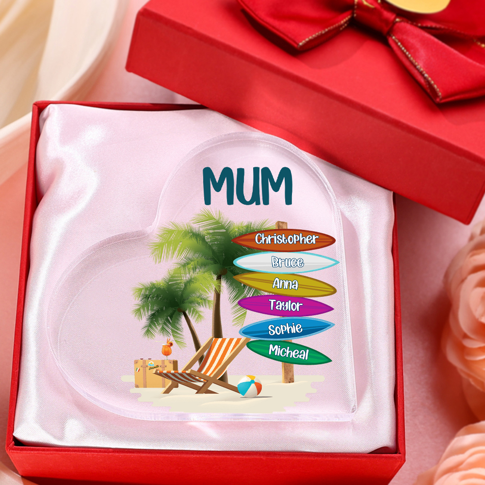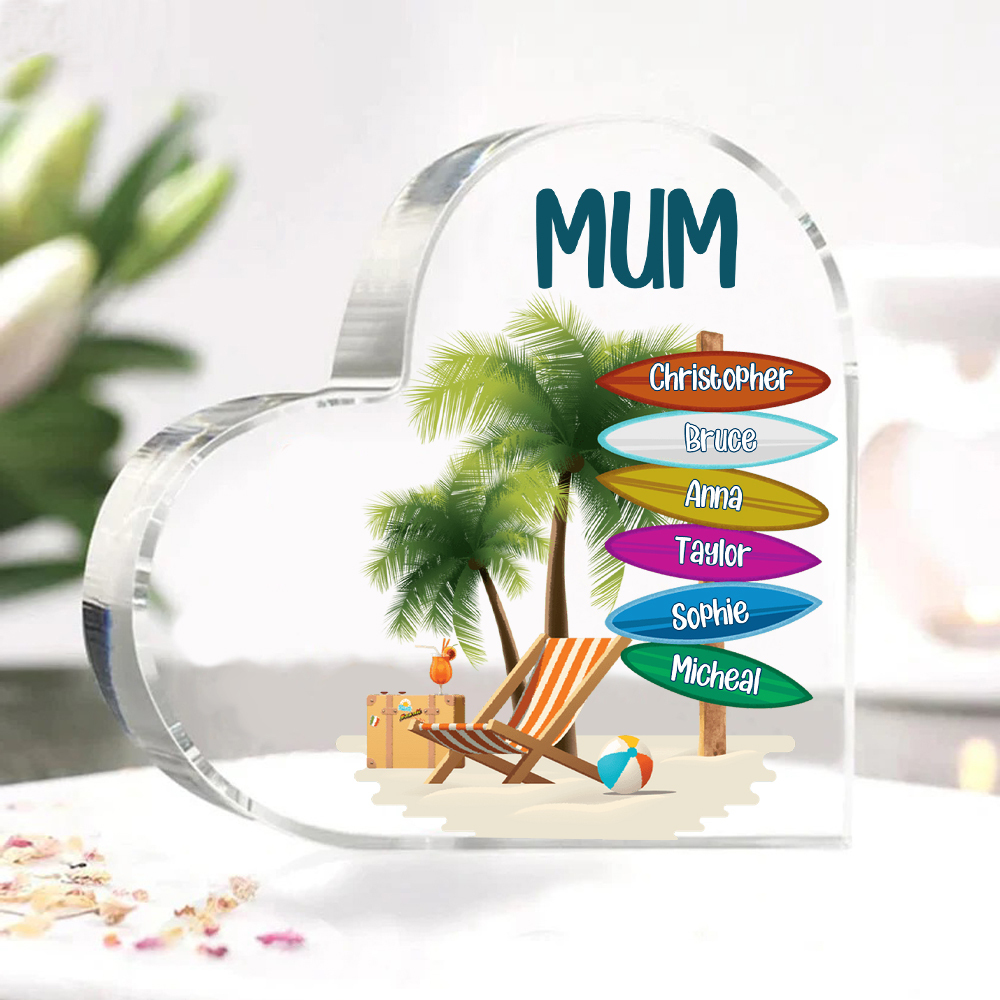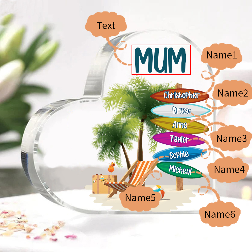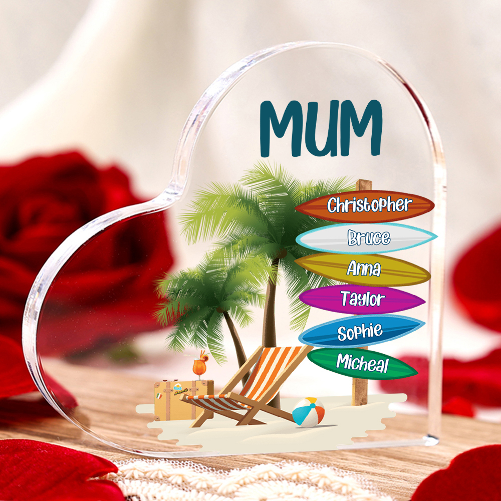 6 Names-Personalized Mum Vacation Acrylic Heart Keepsake Custom Text Acrylic Plaque Ornaments Gifts Set With Gift Box for Nan/Mother