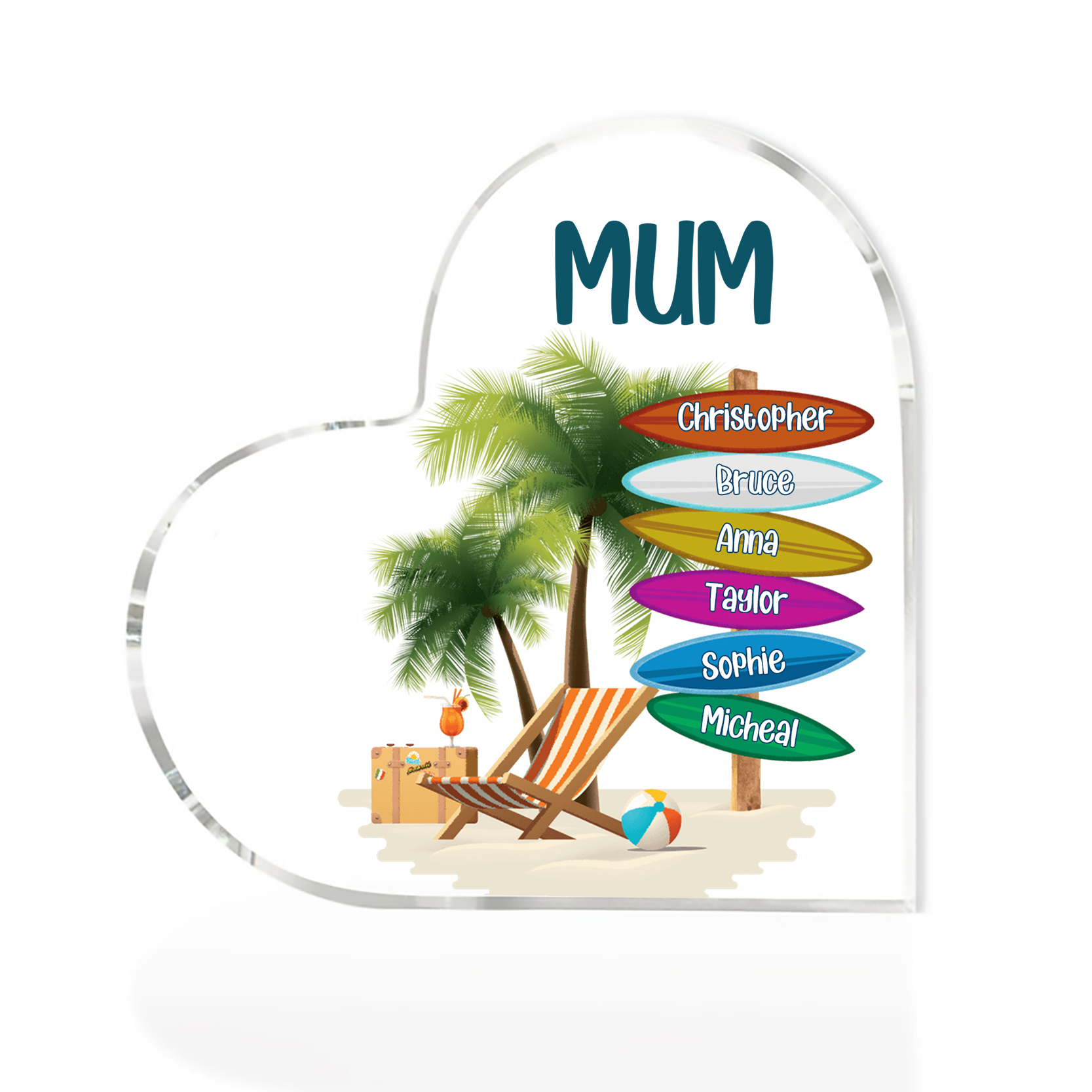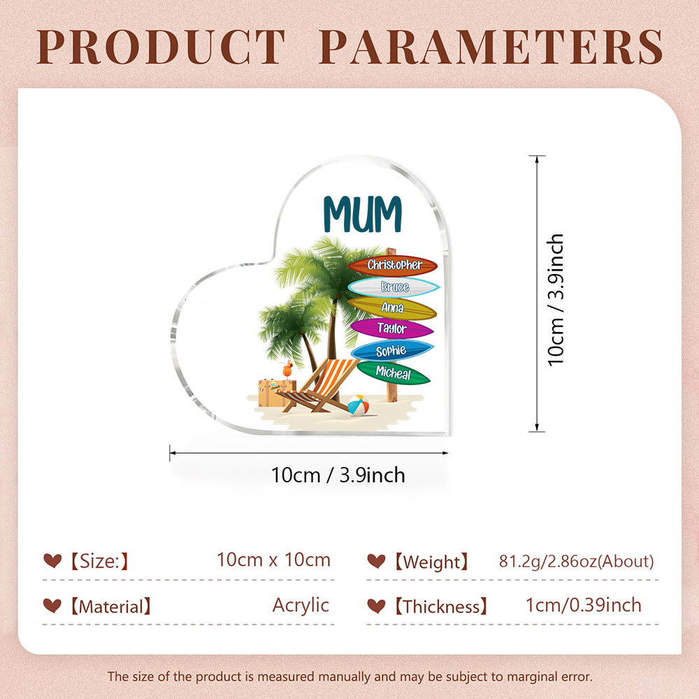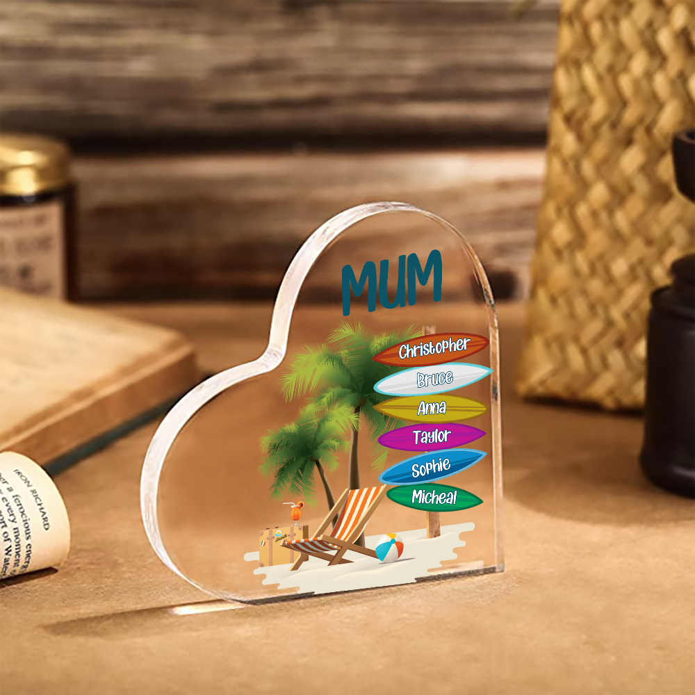 6 Names-Personalized Mum Vacation Acrylic Heart Keepsake Custom Text Acrylic Plaque Ornaments Gifts Set With Gift Box for Nan/Mother