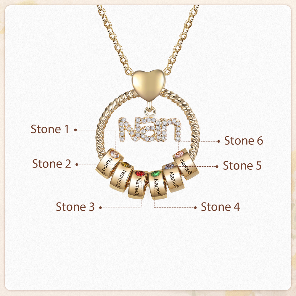 6 Names-Personalized Nan Circle Necklace Set With Rose Flower Gift Box-Custom Woman Necklace With 6 Birthstones Engraved Names Gift For Nan/Nana/Nanny/Granny