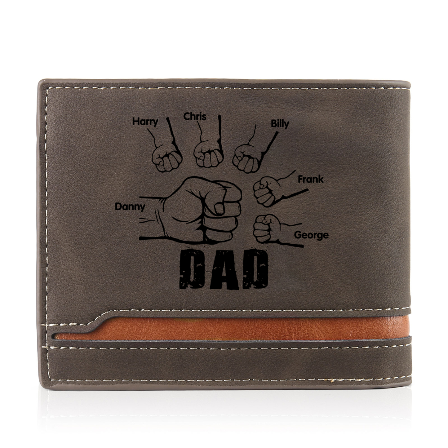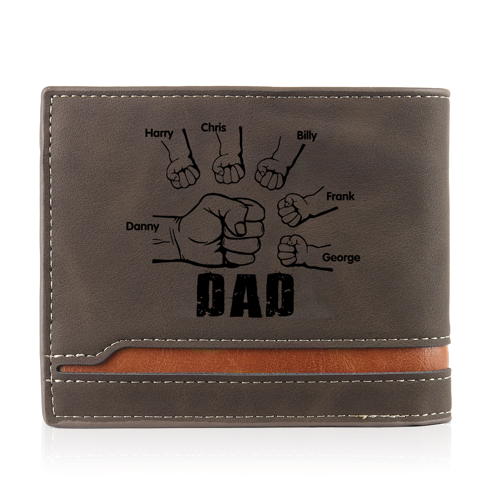 6 Names - Personalized Photo Custom Leather Men's Folding Wallet as a Father's Day Gift for Dad