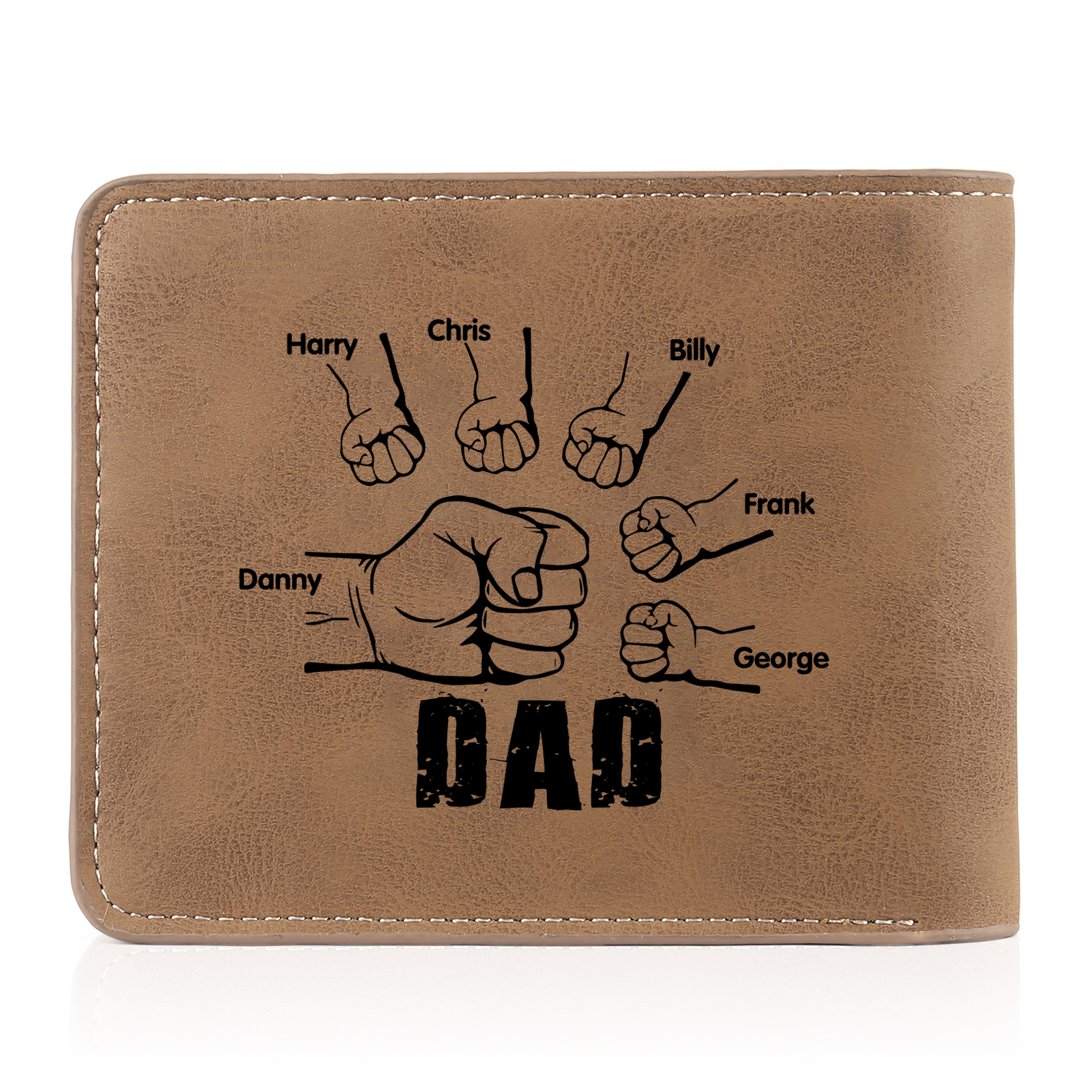 6 Names - Personalized Photo Custom Leather Men's Folding Wallet as a Father's Day Gift for Dad