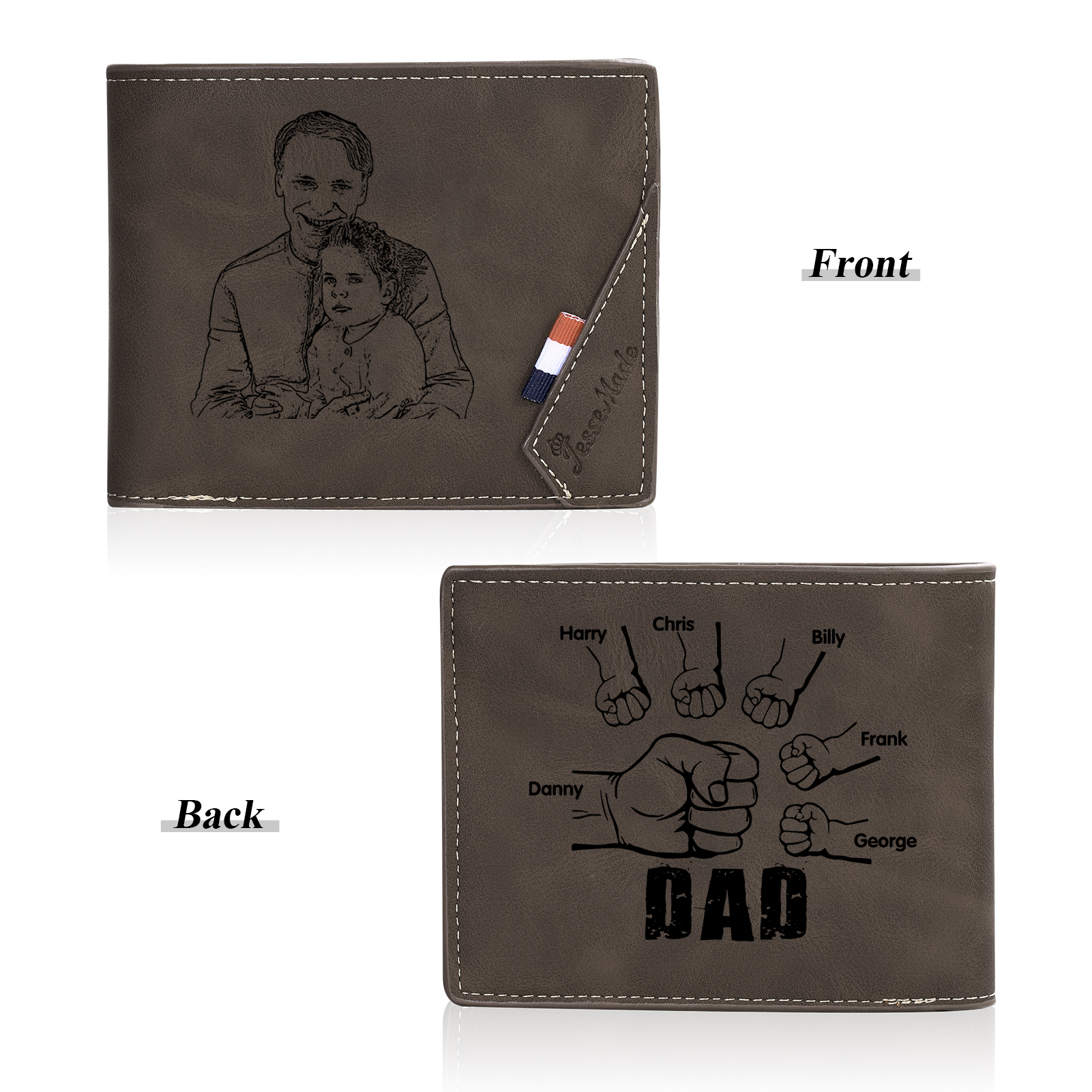 6 Names - Personalized Photo Custom Leather Men's Wallet as a Father's Day Gift for Dad