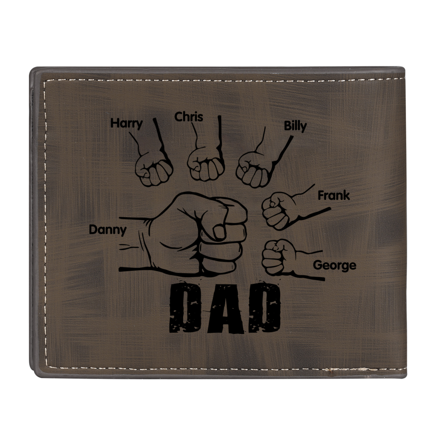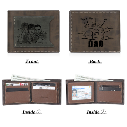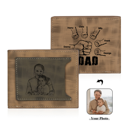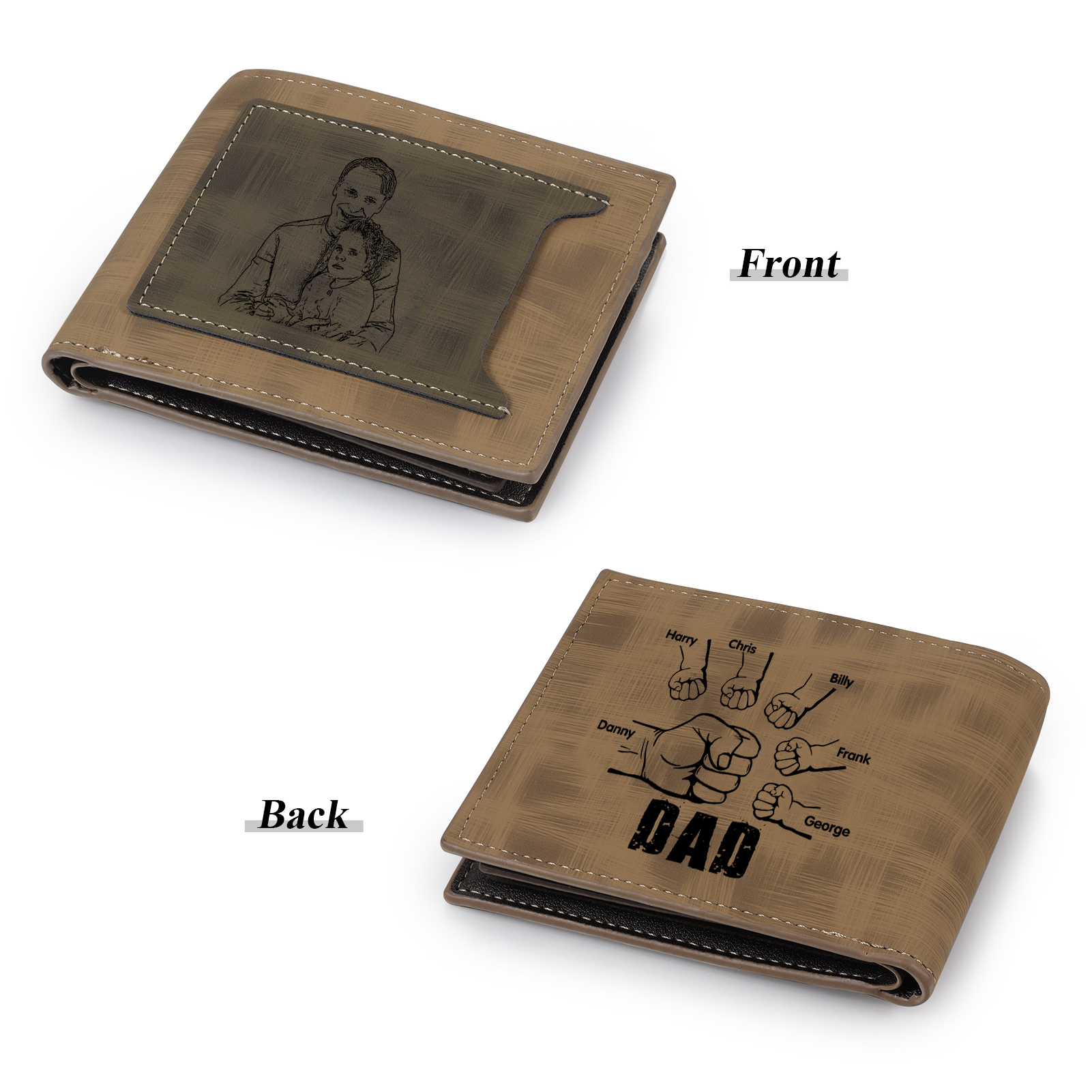 6 Names - Personalized Photo Custom Leather Men's Wallet as a Father's Day Gift for Dad