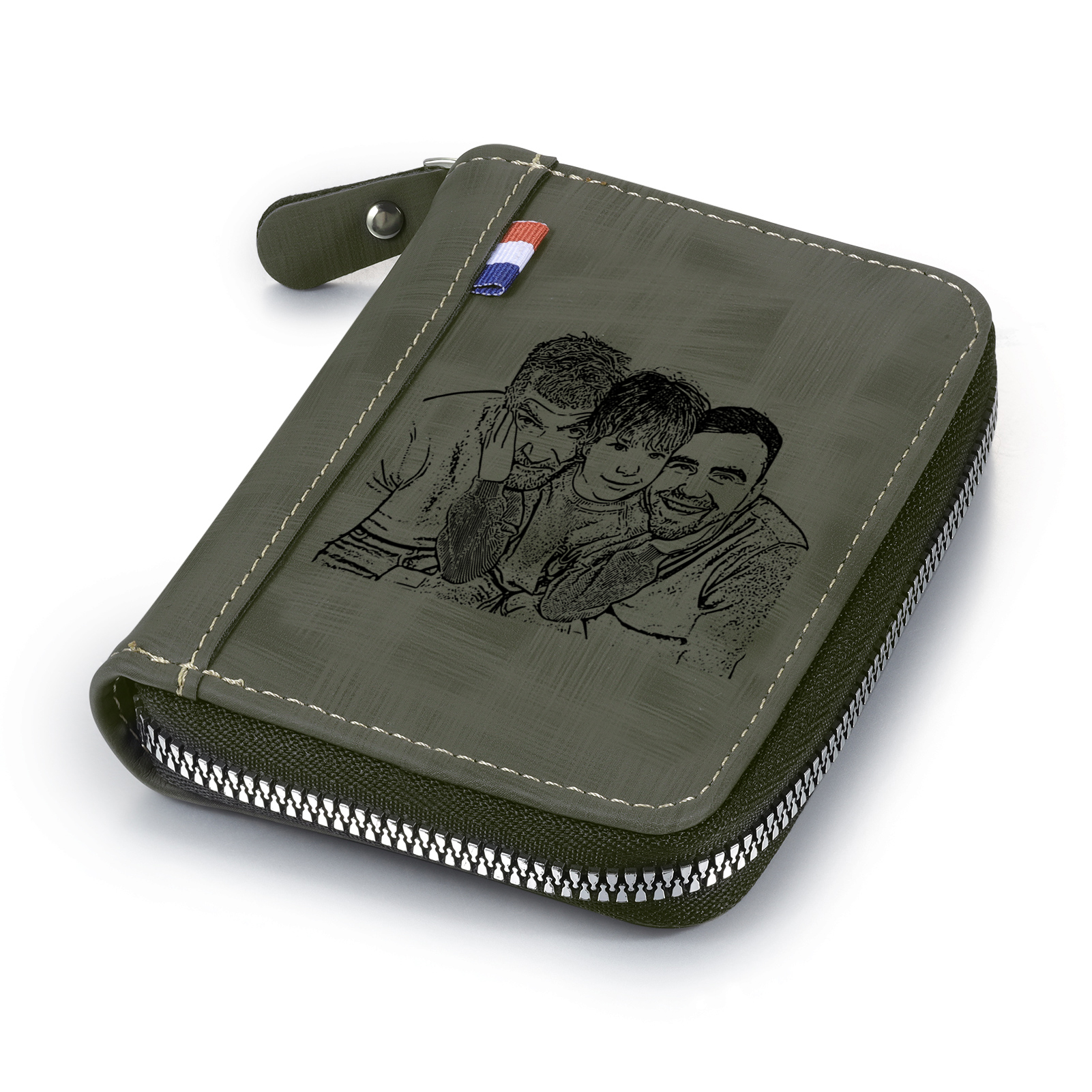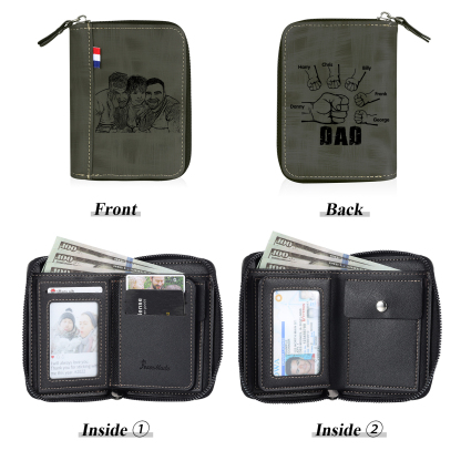 6 Names - Personalized Photo Custom Leather Men's Zipper Wallet as a Father's Day Gift for Dad
