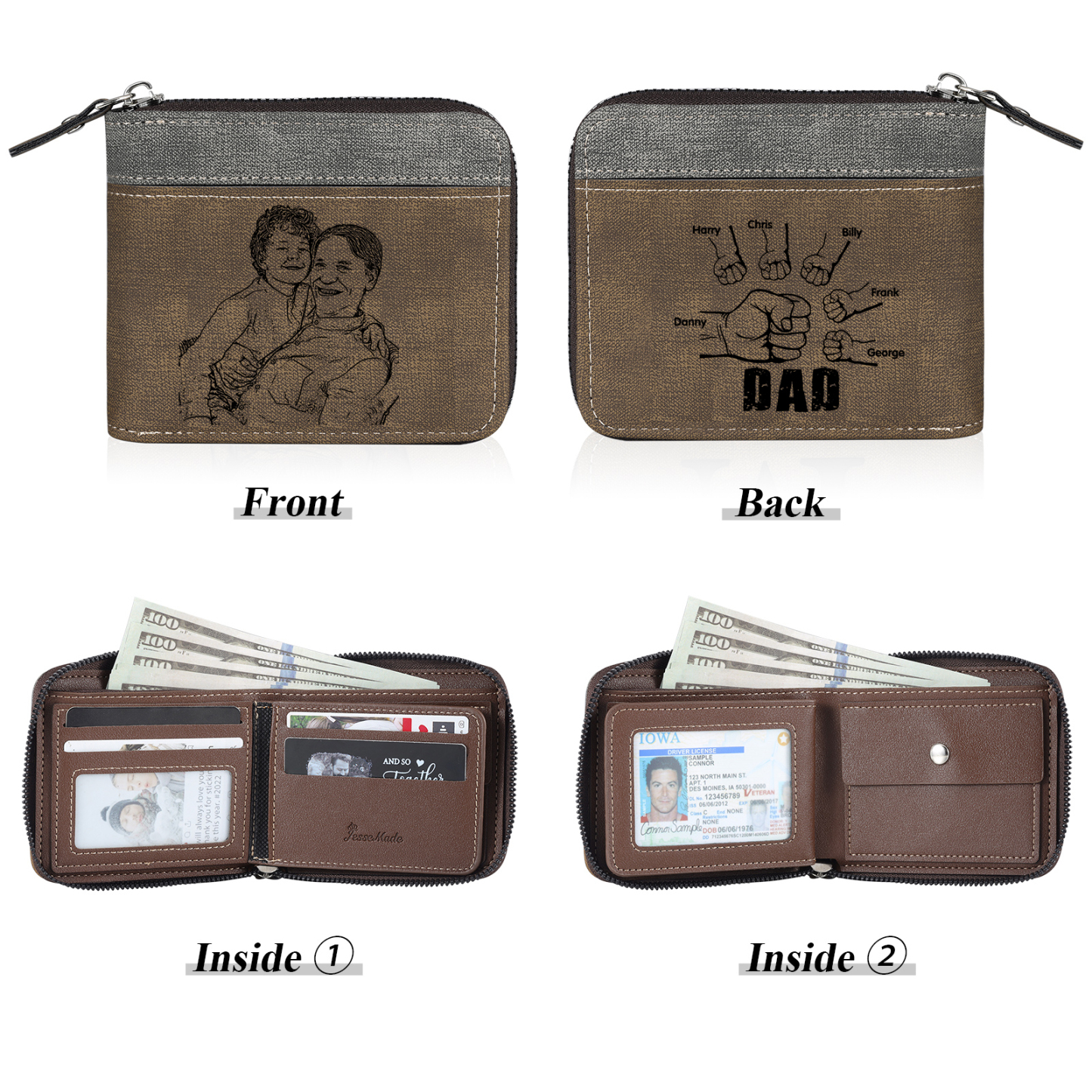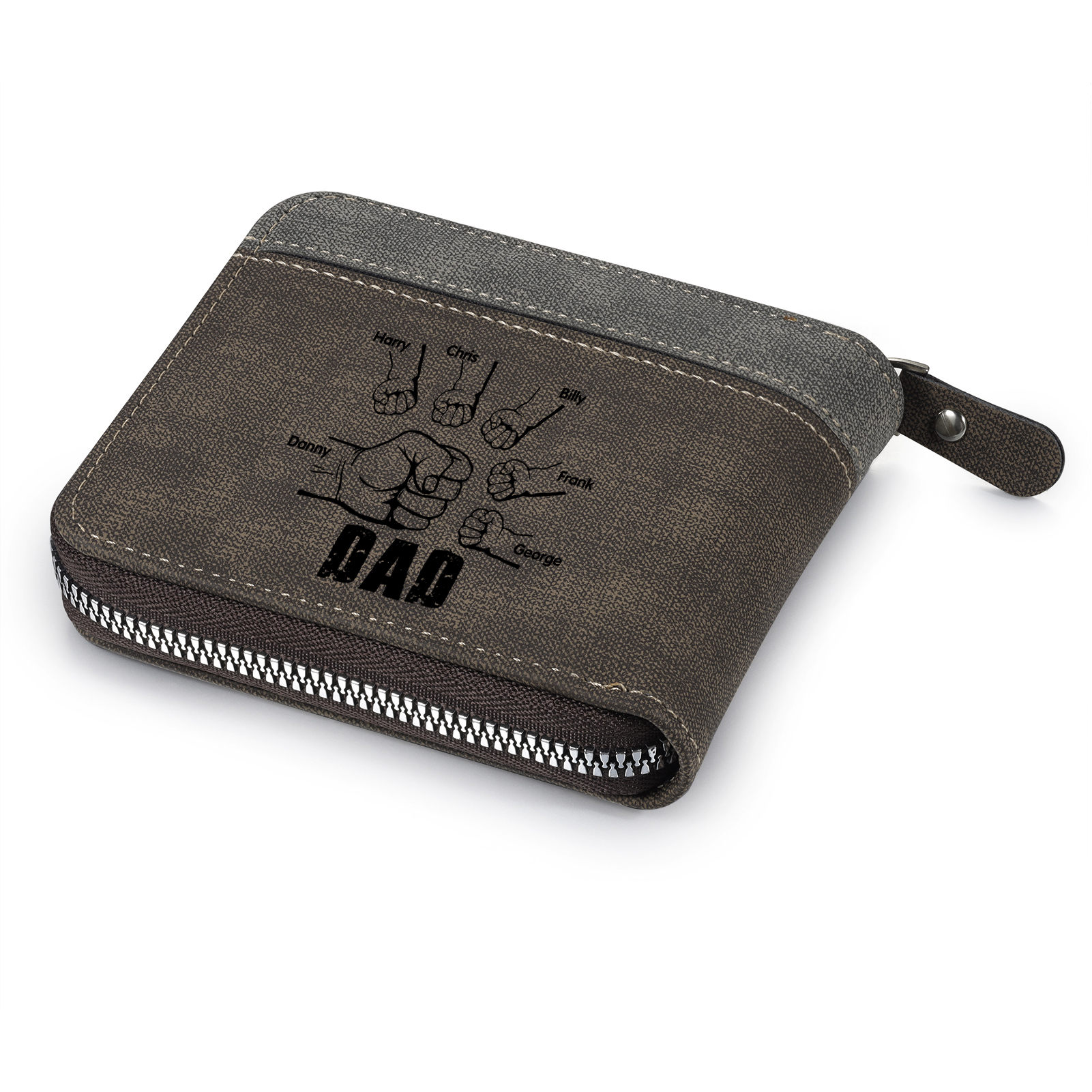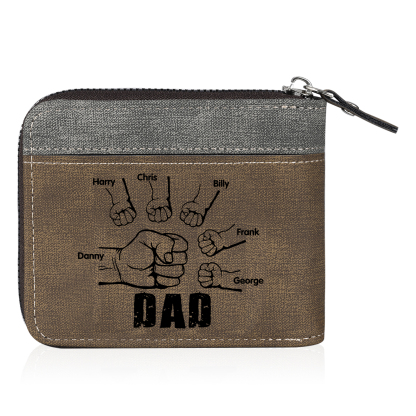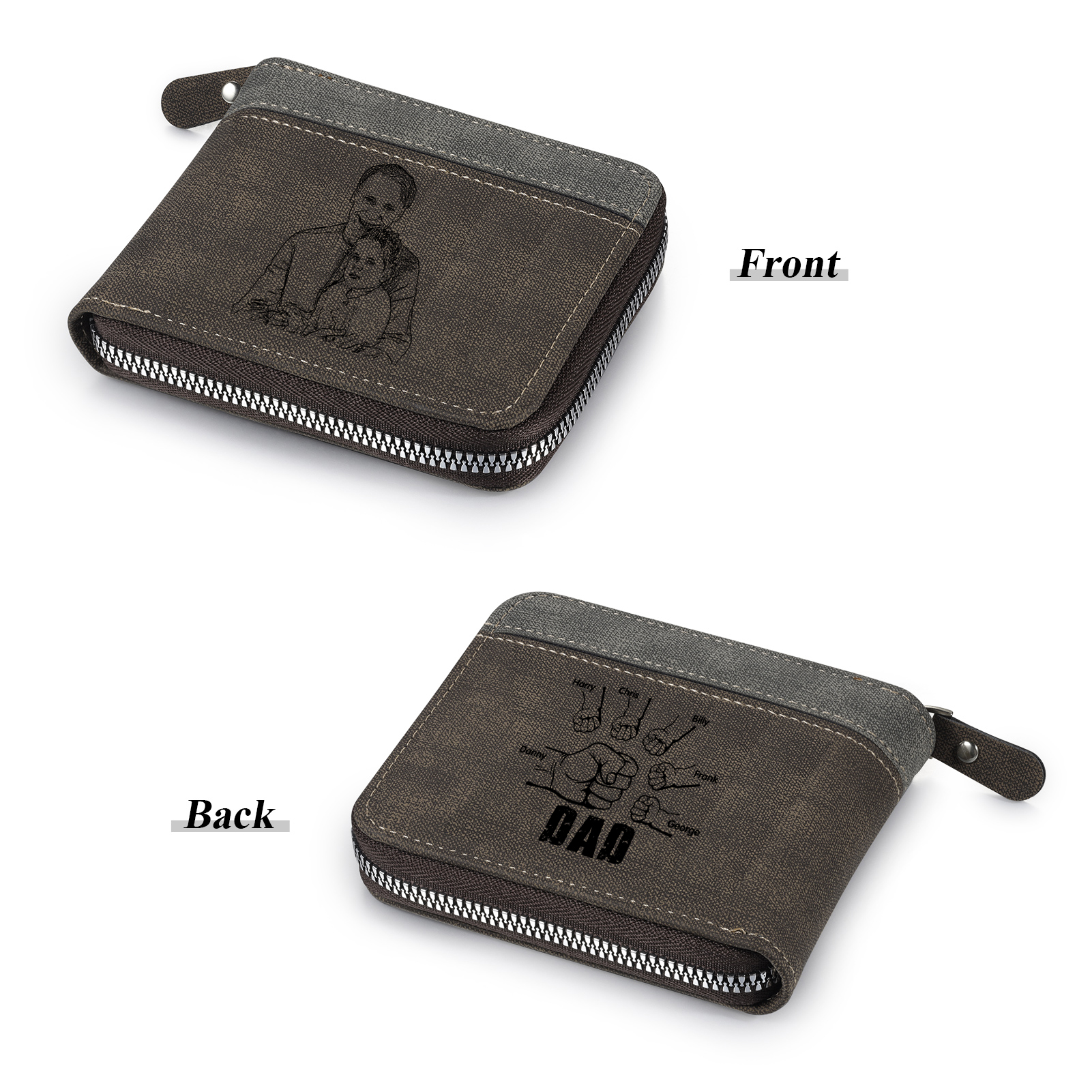 6 Names - Personalized Photo Custom Leather Men's Zipper Wallet as a Father's Day Gift for Dad