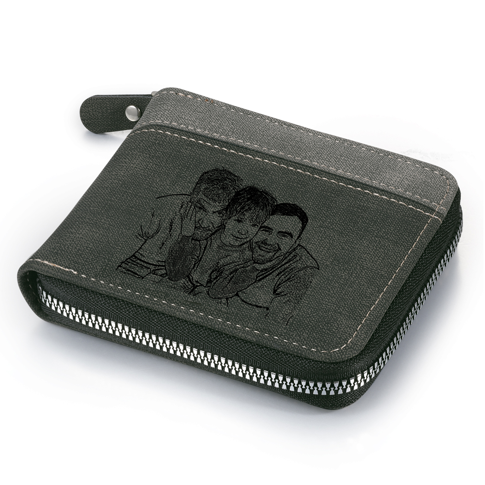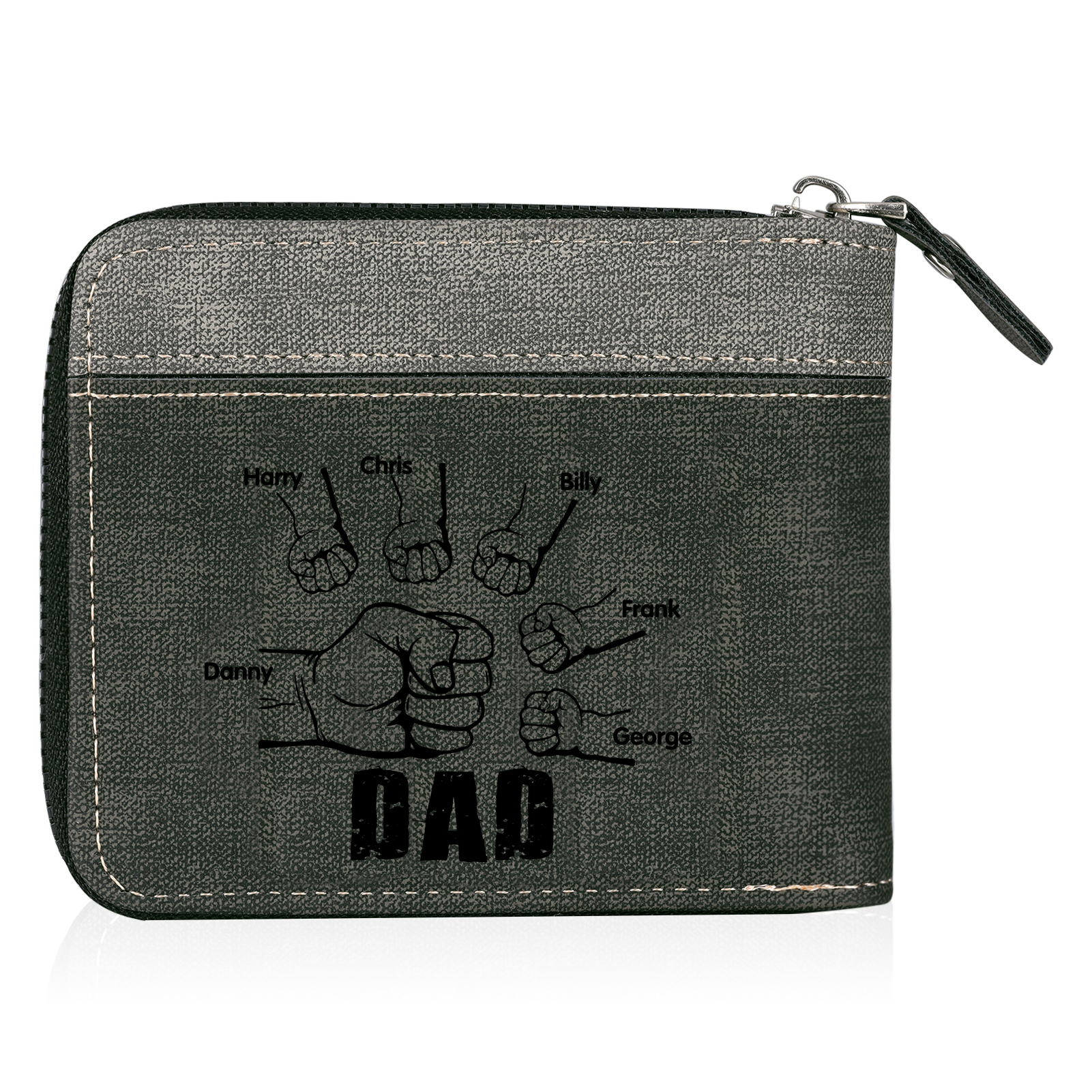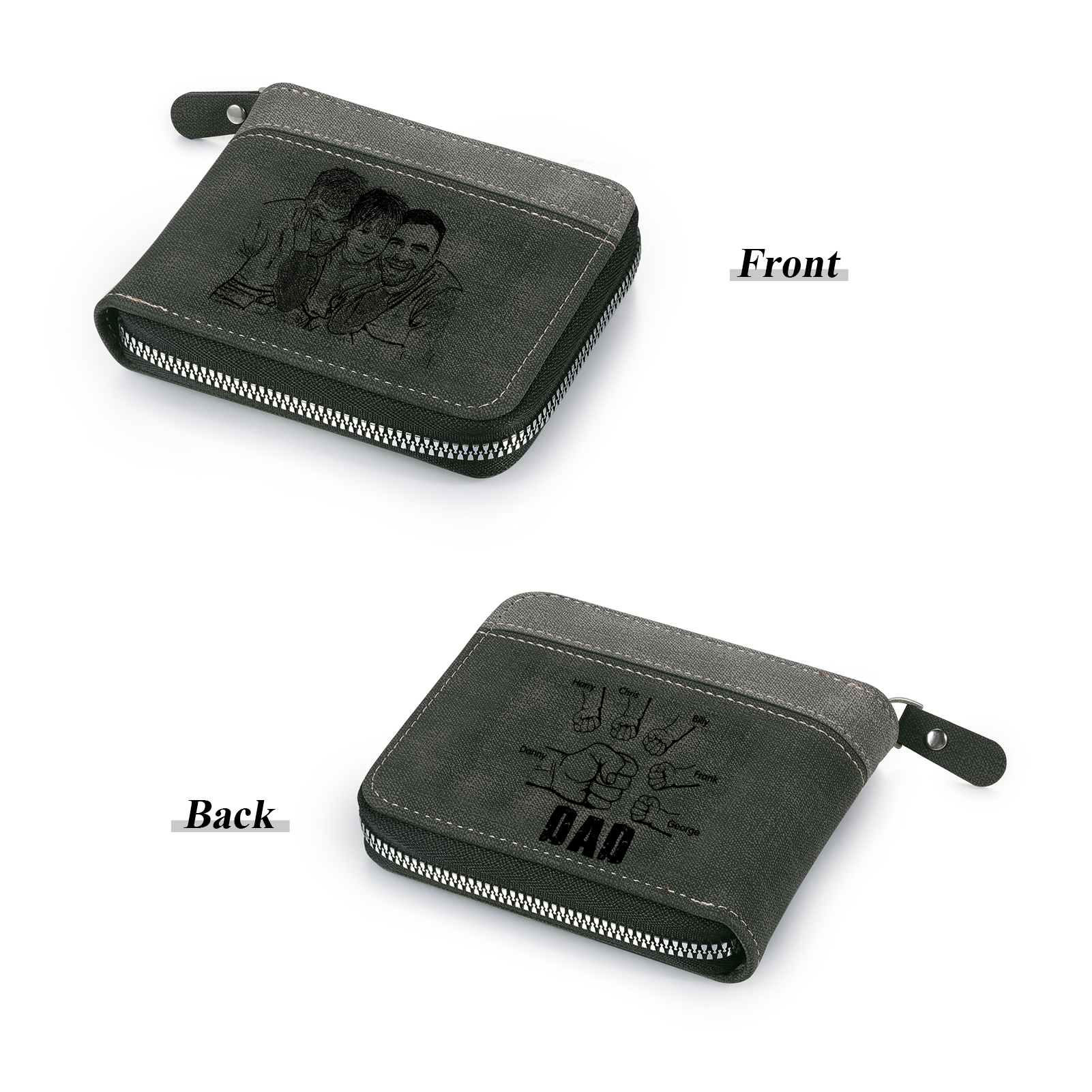 6 Names - Personalized Photo Custom Leather Men's Zipper Wallet as a Father's Day Gift for Dad