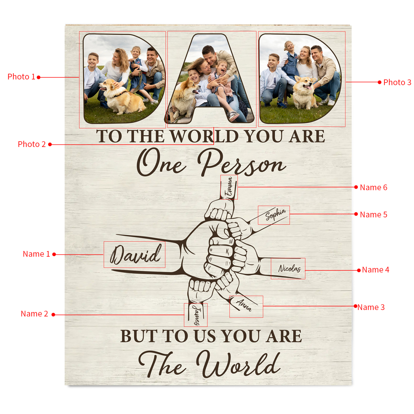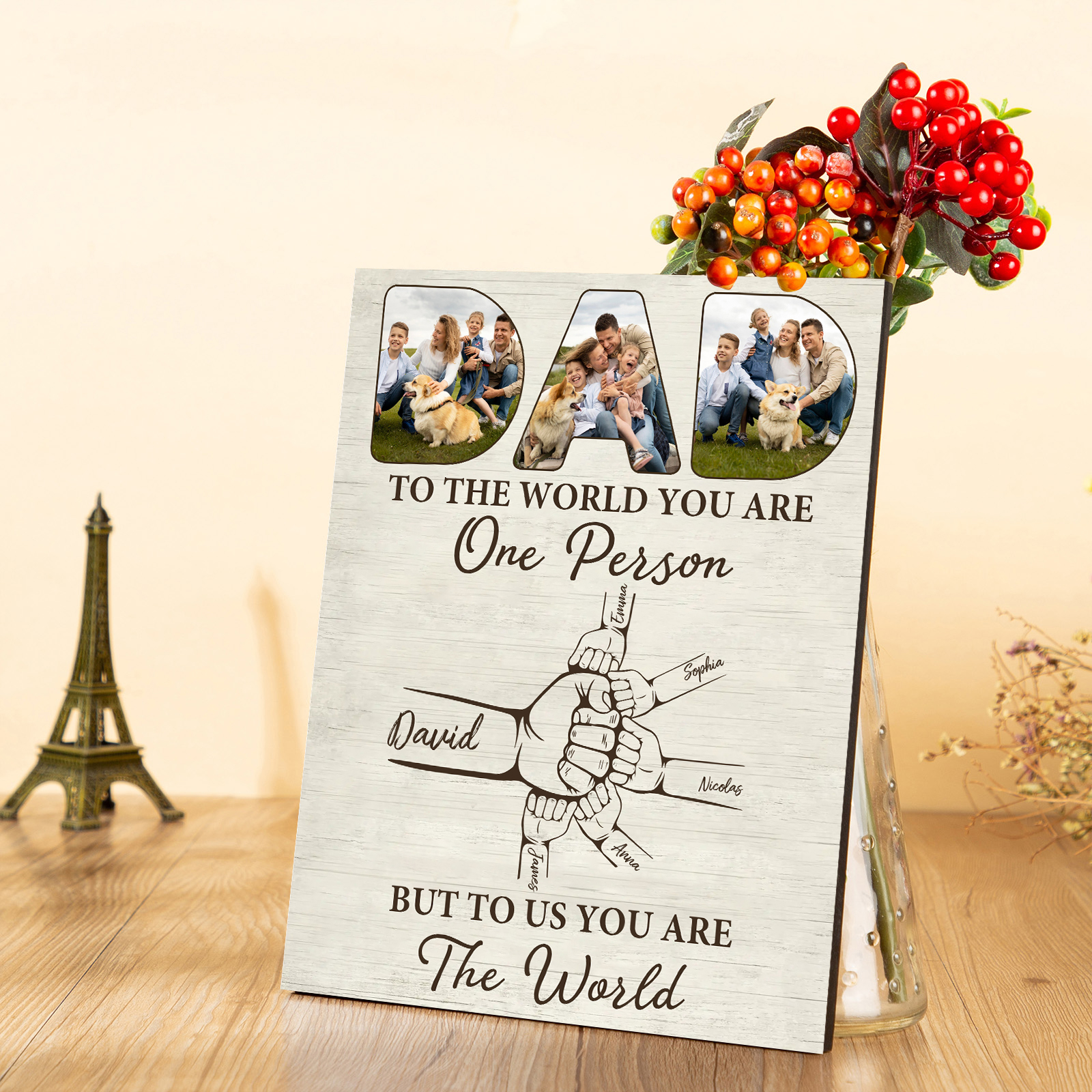 6 Names - Personalized Photos Fist Bump Home Wood Panel Painting Decorations Father's Day Gift for Dad