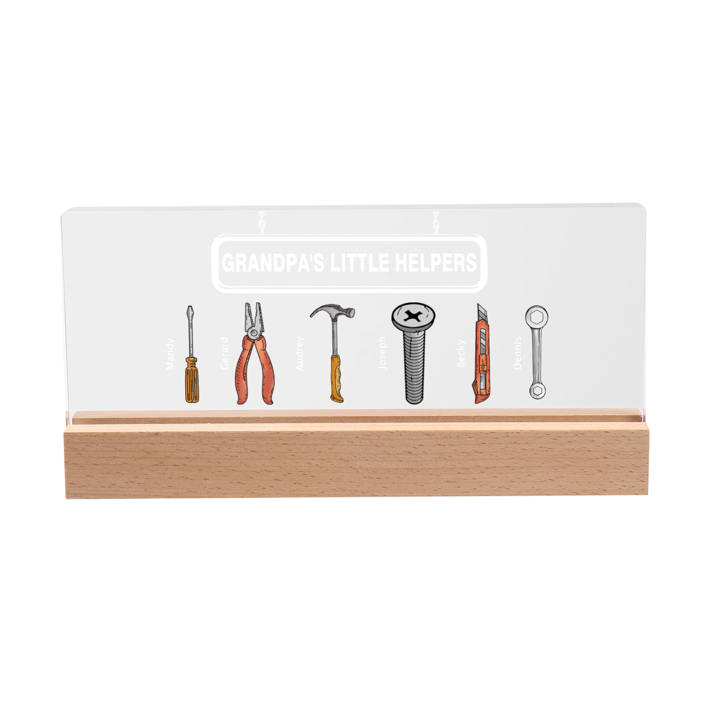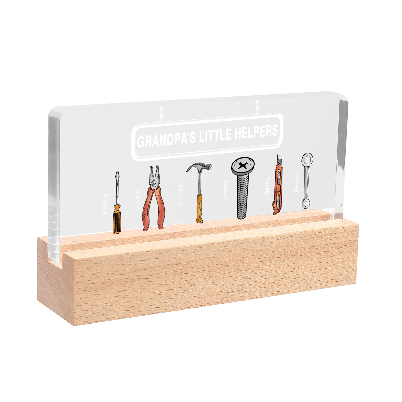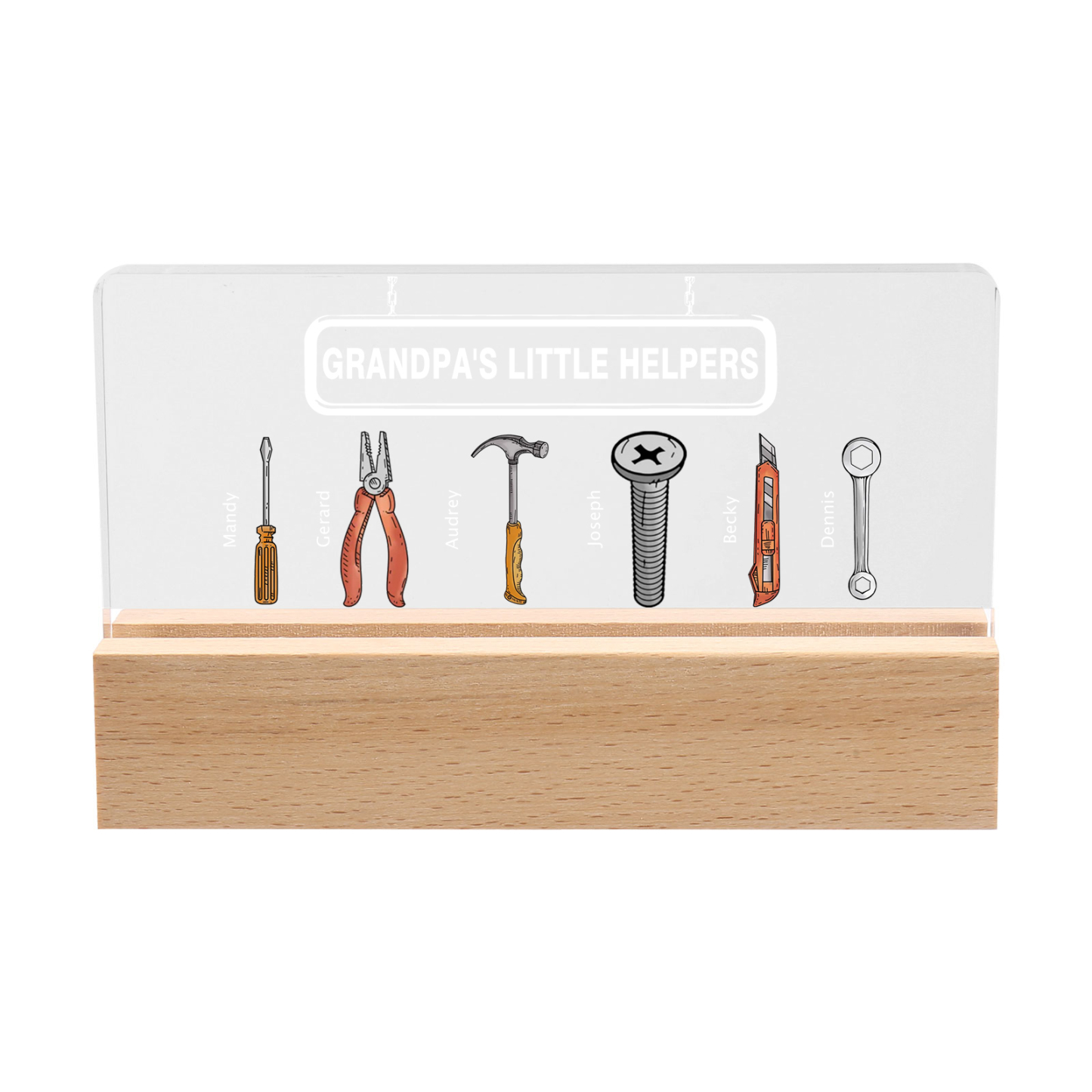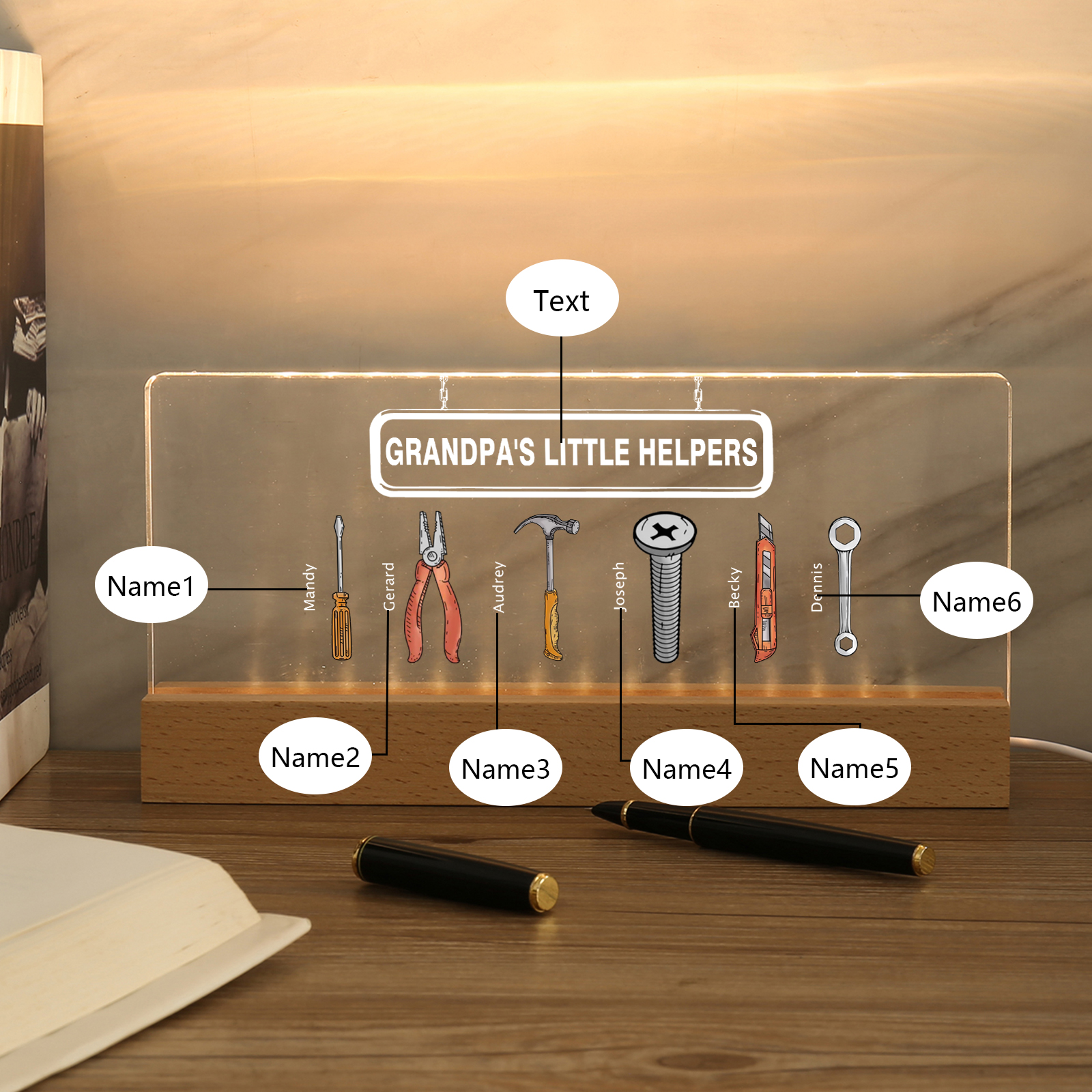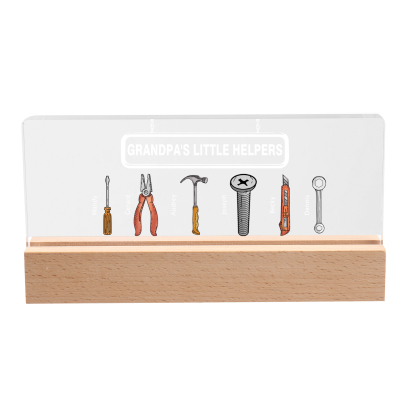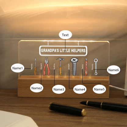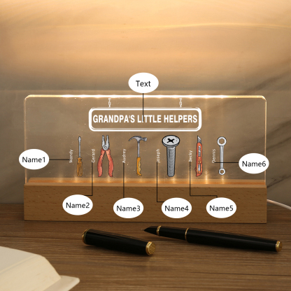 6 Names - Personalized Repair Tool Pattern Table Lamp Customized Text Father's Day Gift for Grandpa/Dad