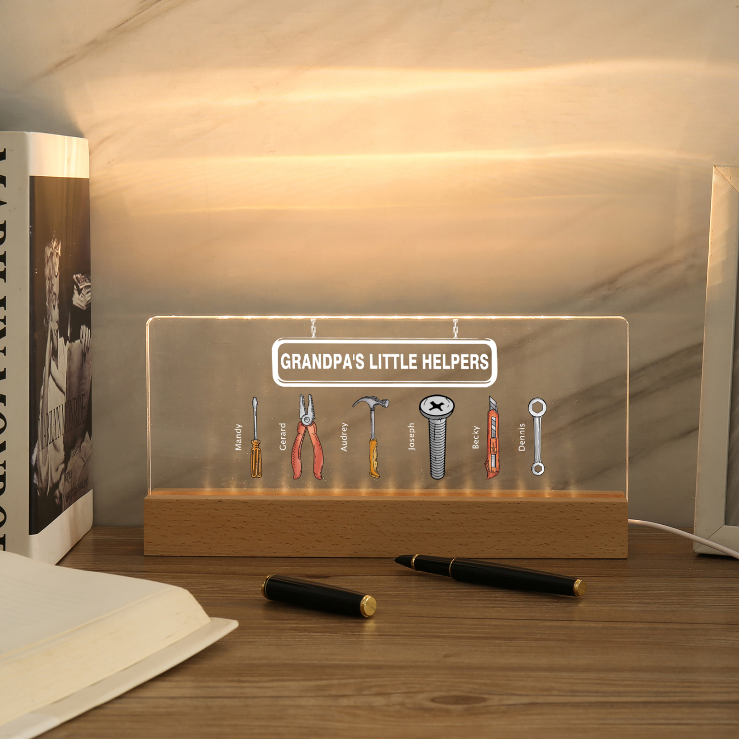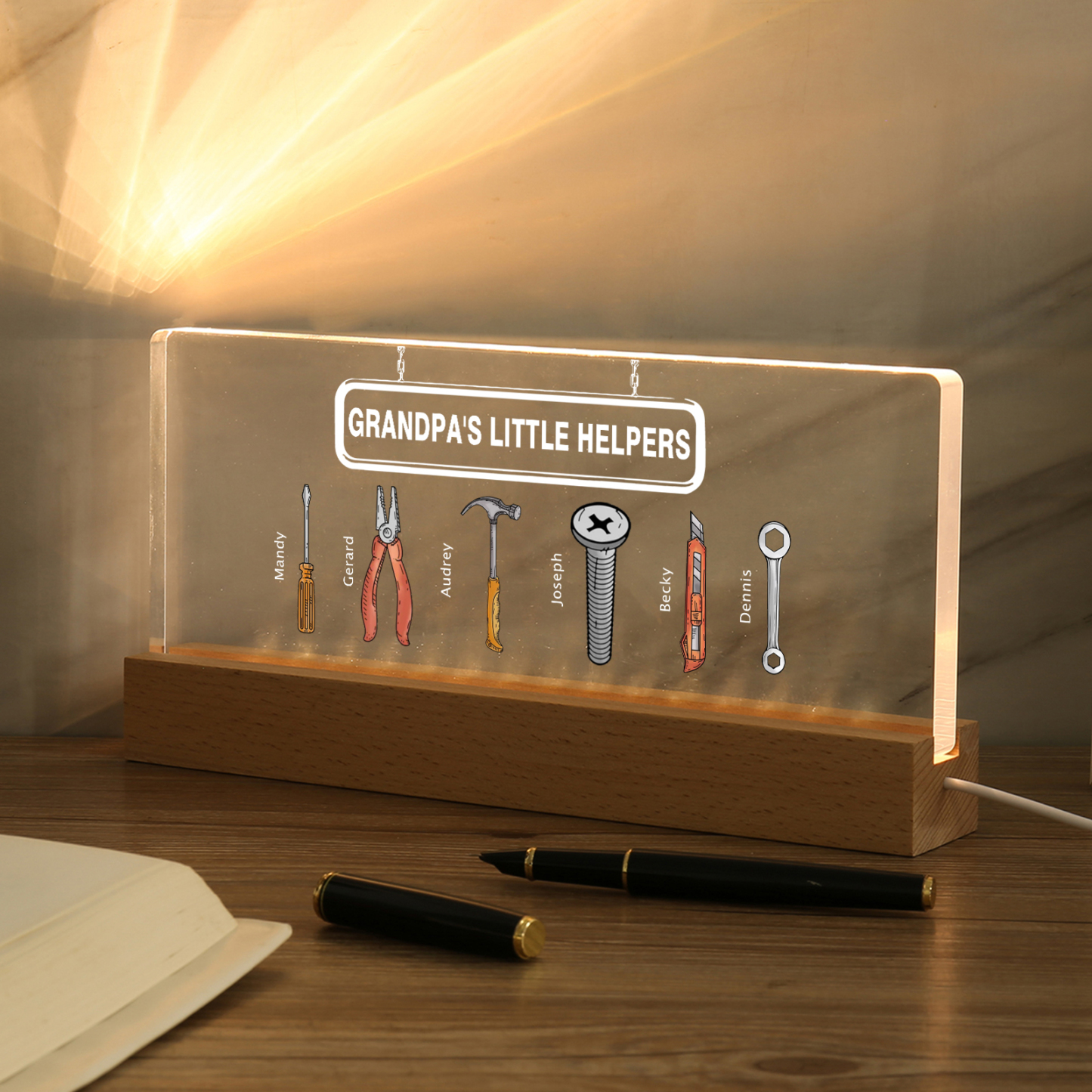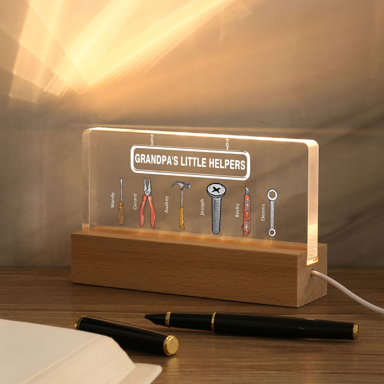 💡Customize a Repair Tool Table Lamp with Your Name! 🌟 Light up your family's world with a unique gift. ❤️This stylish little helper table lamp with name and custom text will add a modern touch to his space. Brighten up his day with personalized warmth and style. Order now to brighten his day! 🥰