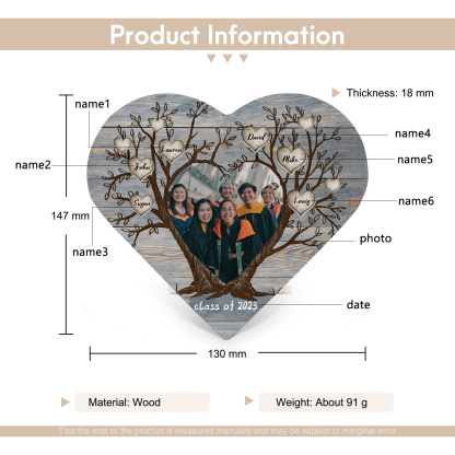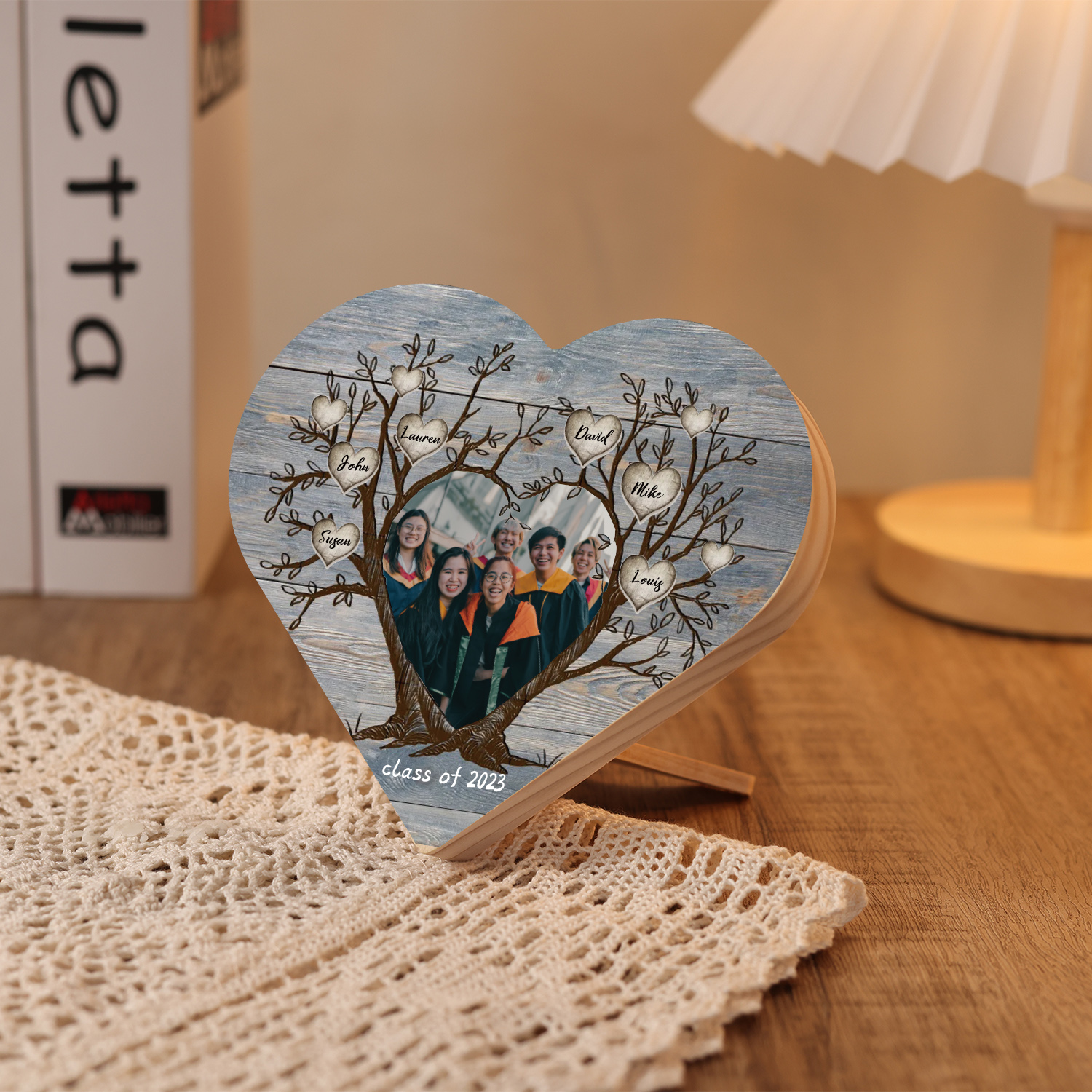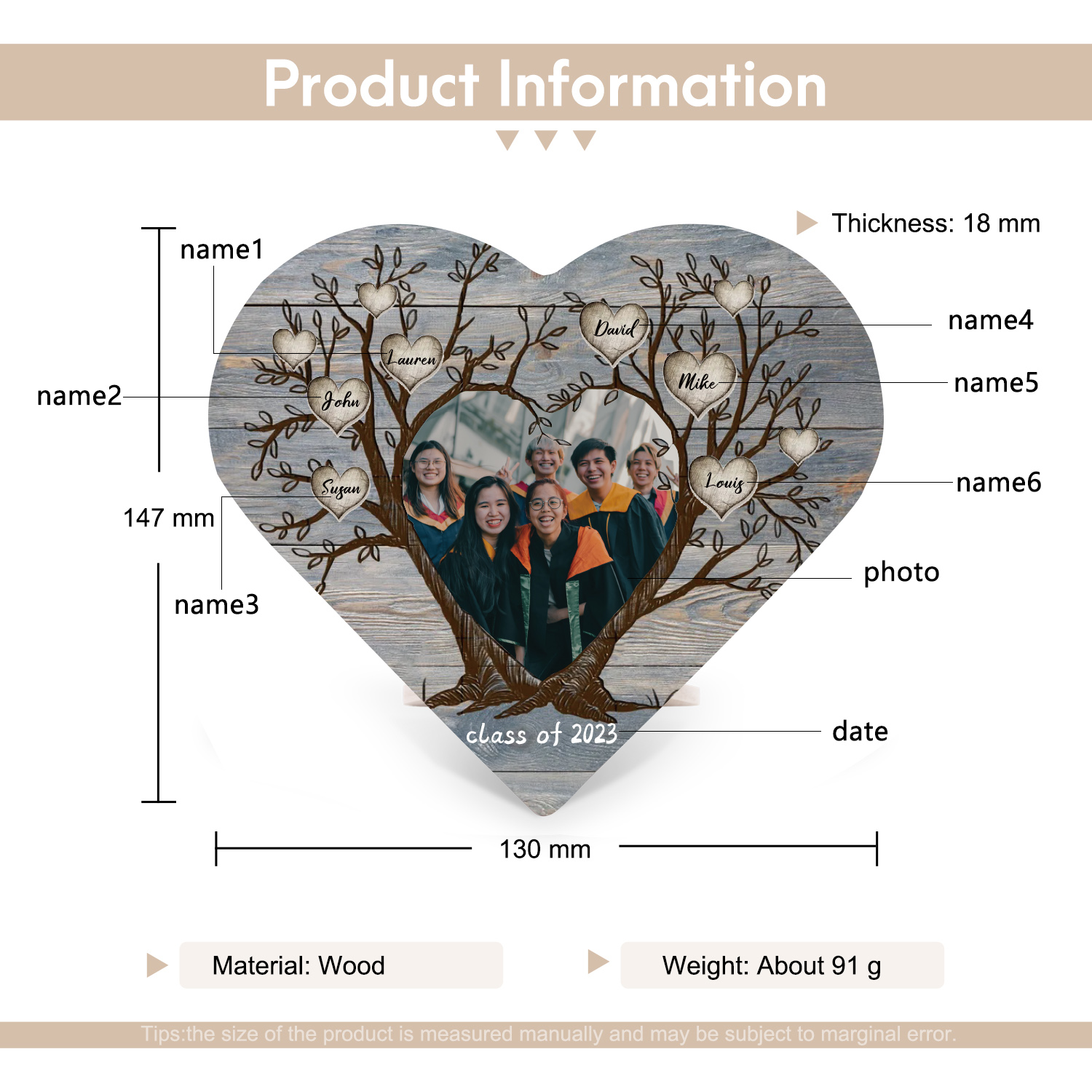 6 Names-Personalized Tree Heart Wooden Ornament Gift-Customized Gift Ornament Desktop Decoration Picture Frame For Friends Or Family
