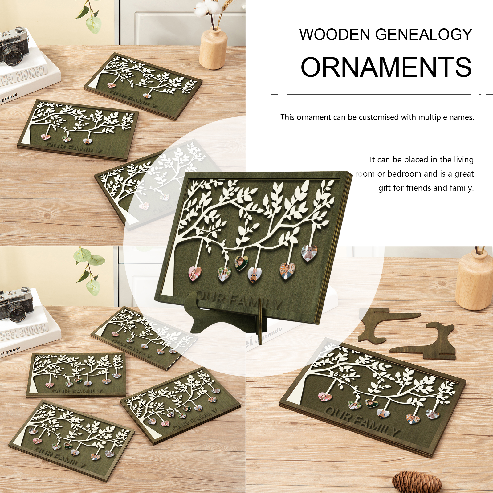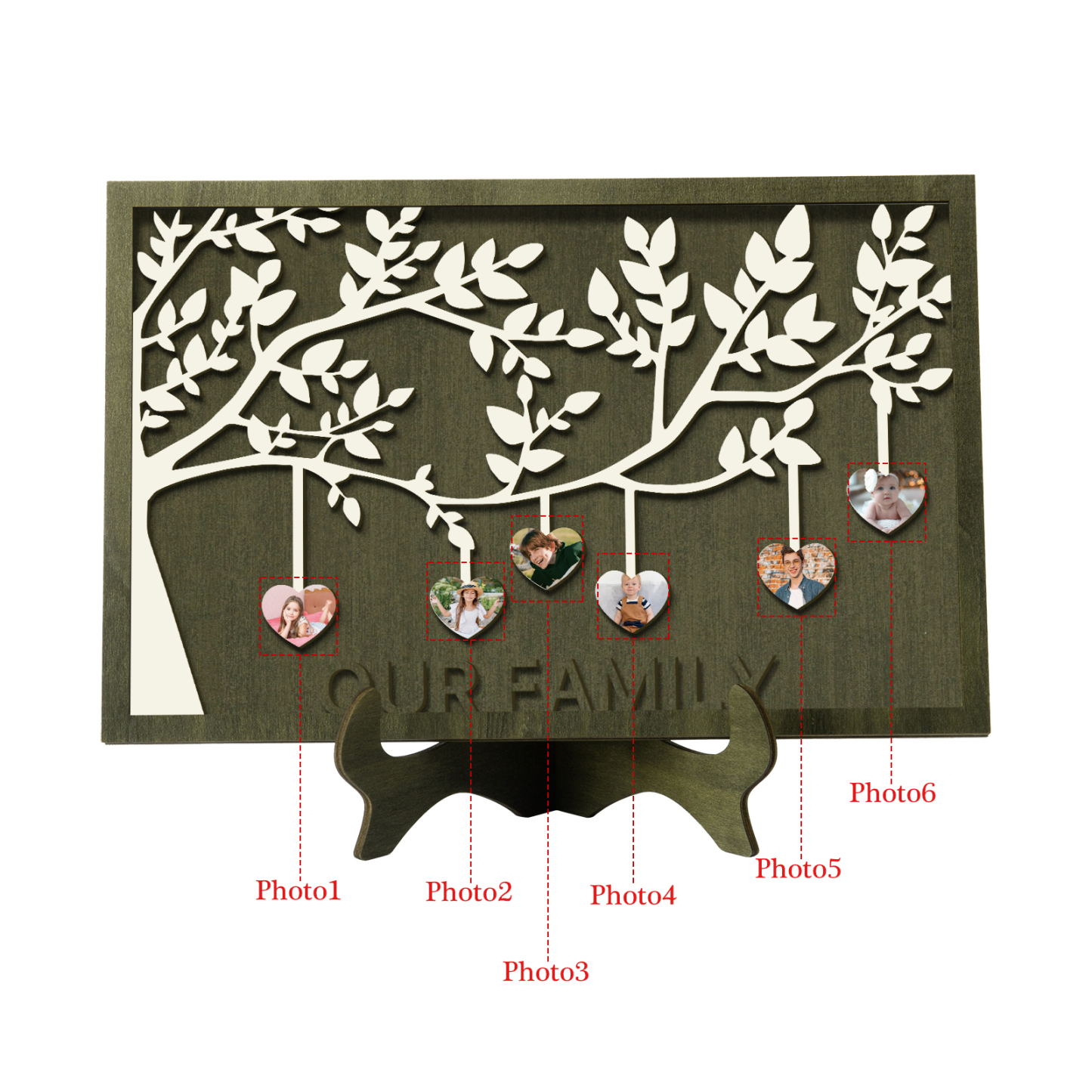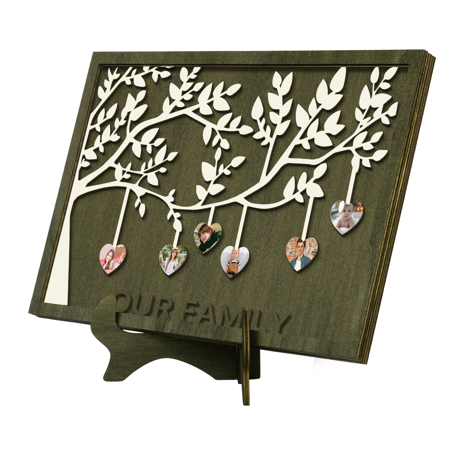 6 Photos-Personalized Family Tree Decoration Wooden Ornaments Concave And Convex Frame Custom Photos For Our Family