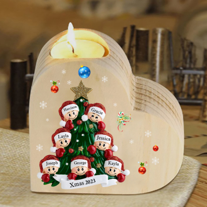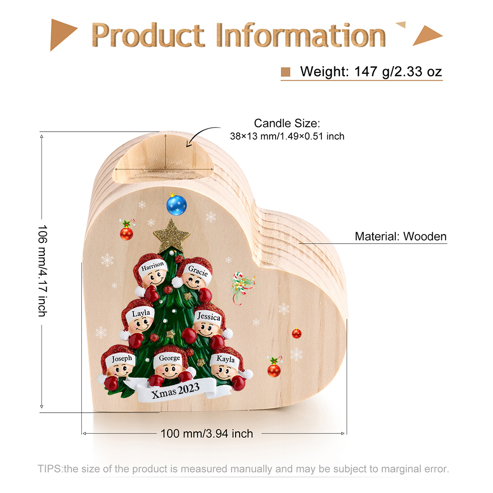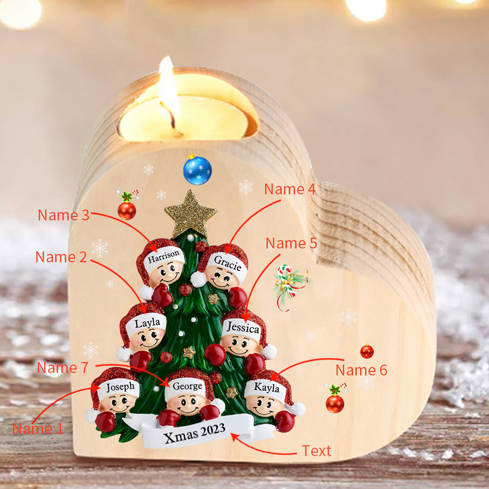 7 Names-Custom Christmas Tree Wooden Candlestick-Personalized Names Heart Candle Holder Christmas Gift for Family
