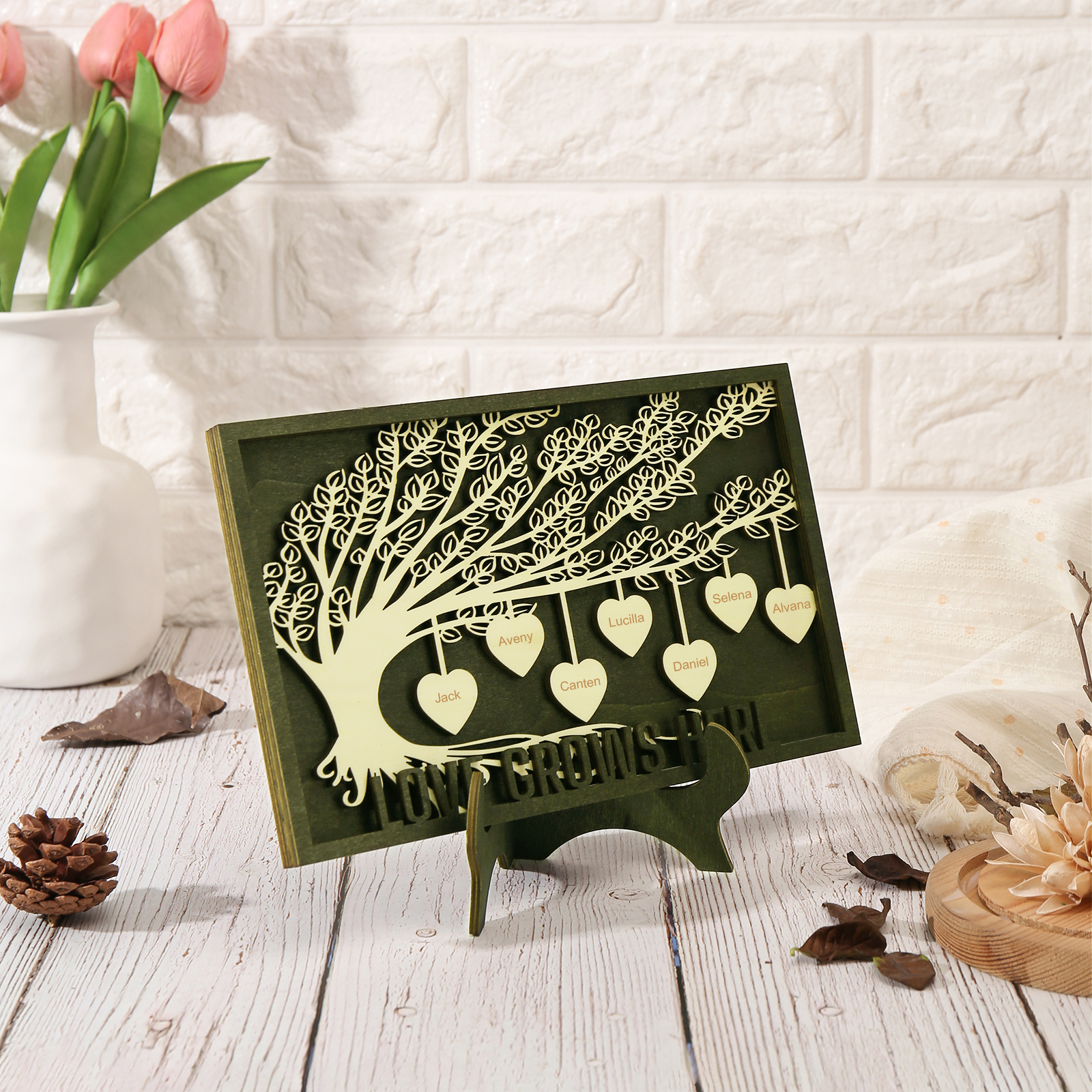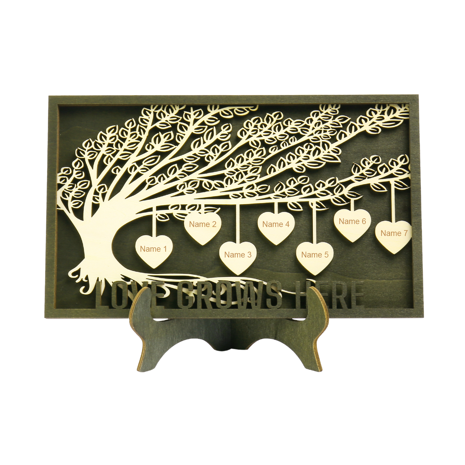 7 Names - Customized Tree Type Wooden Ornaments Decorations Text Love Grows Here