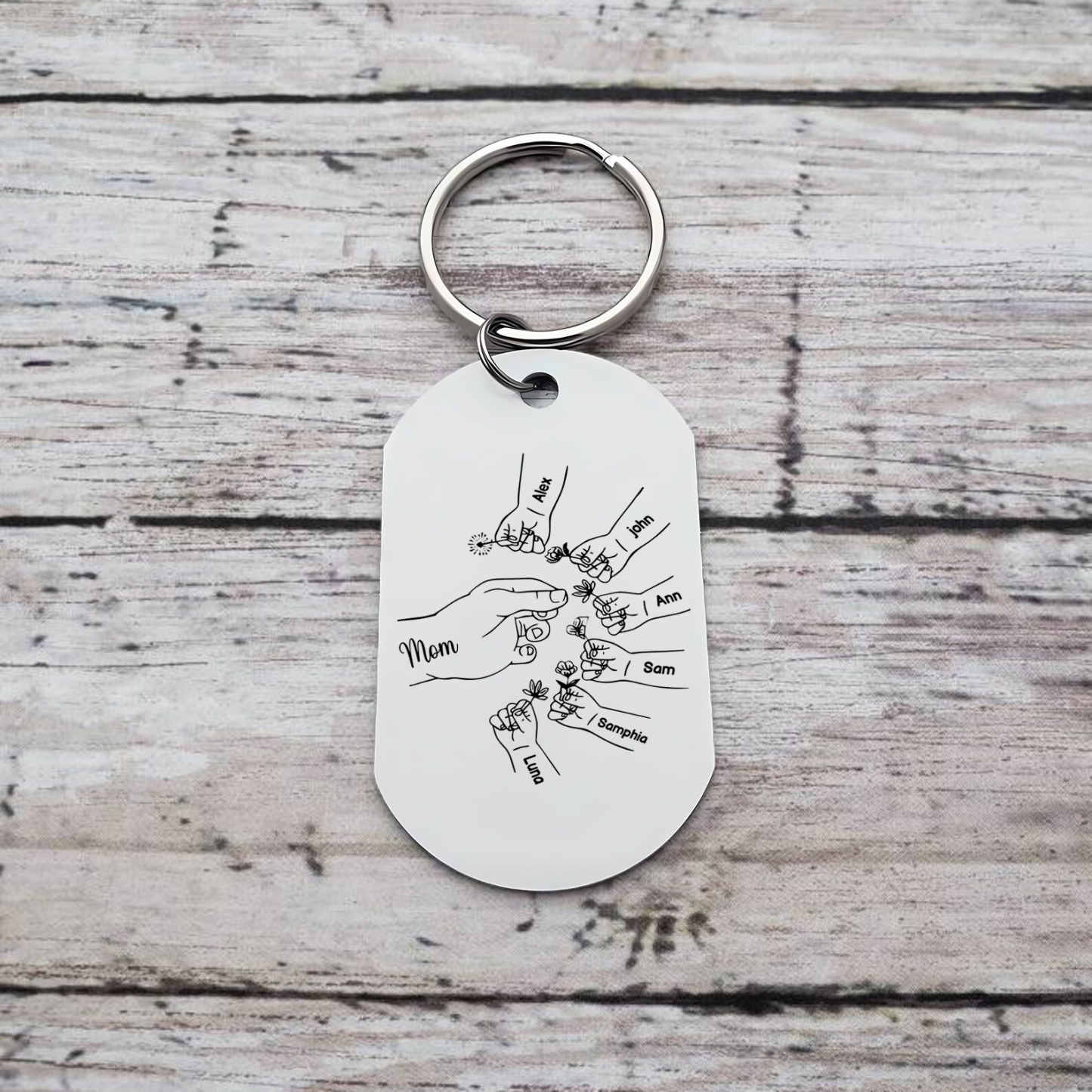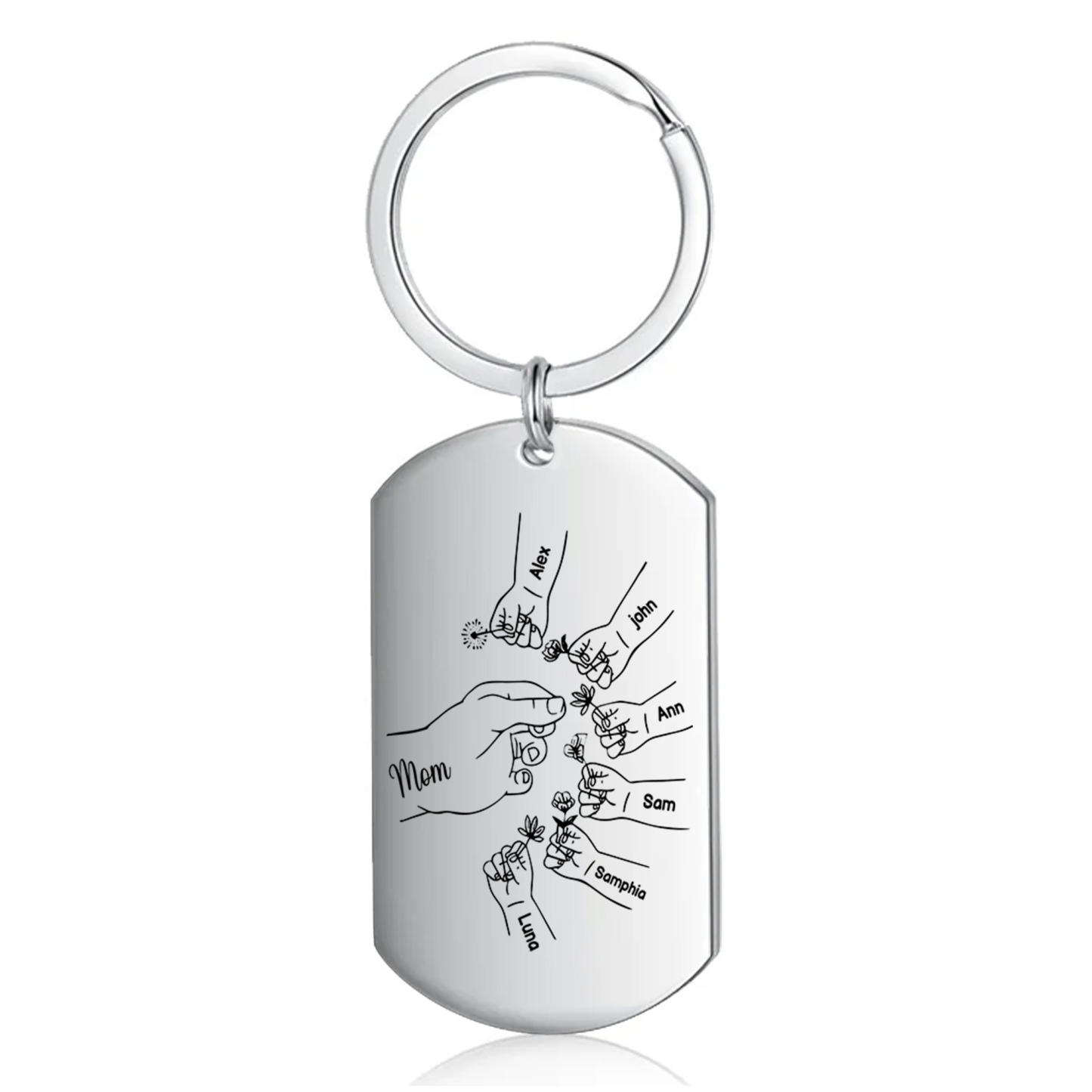 7 Names Personalized Charm Design Keychain Mom Hook Engraved Text Special Gift for Mom
