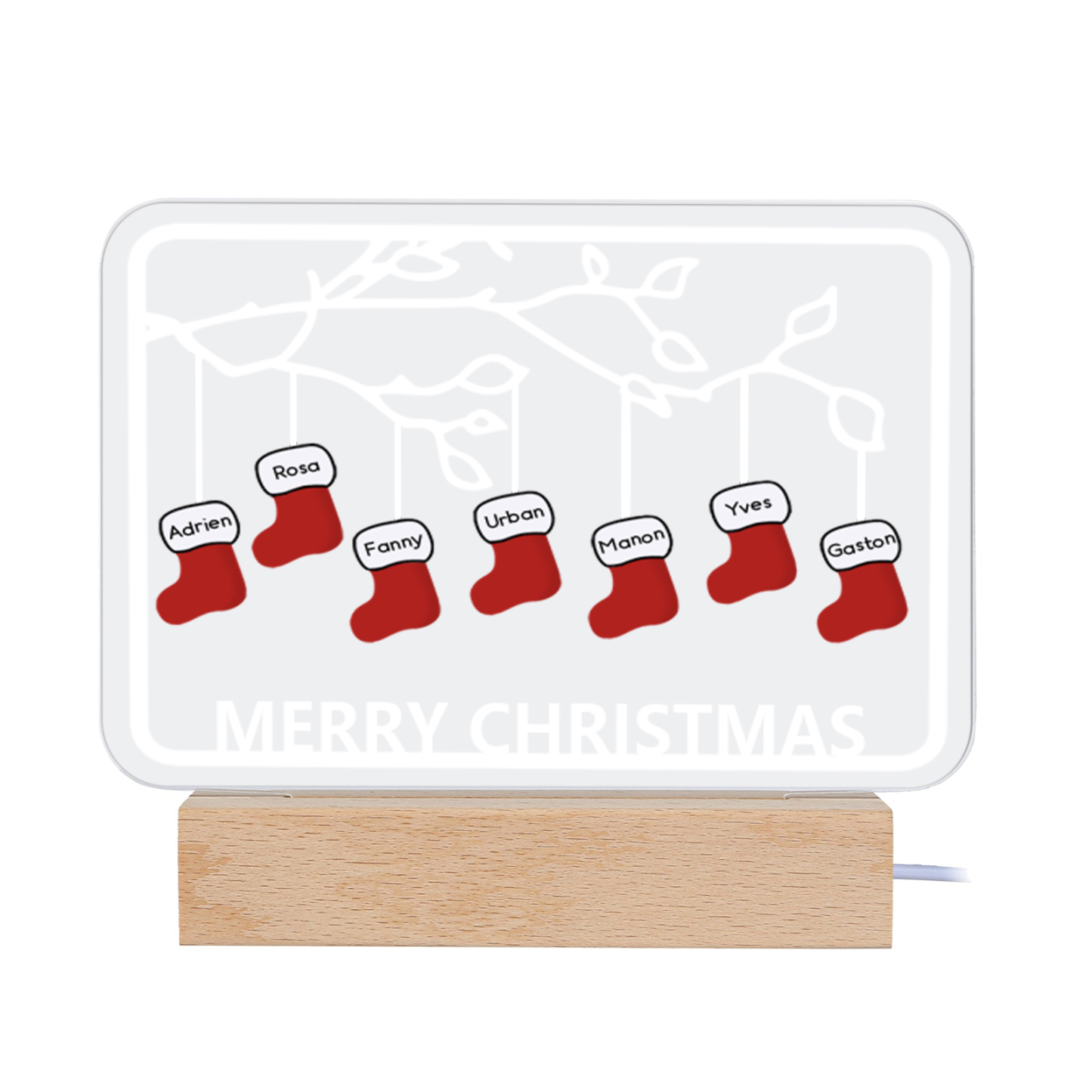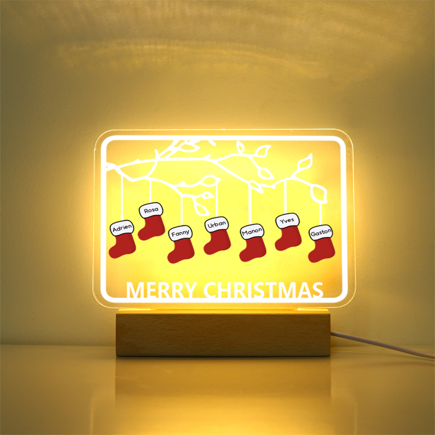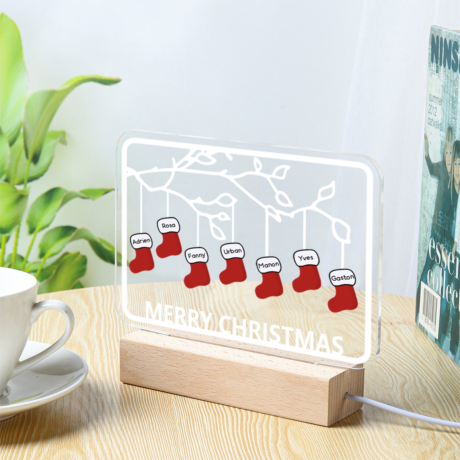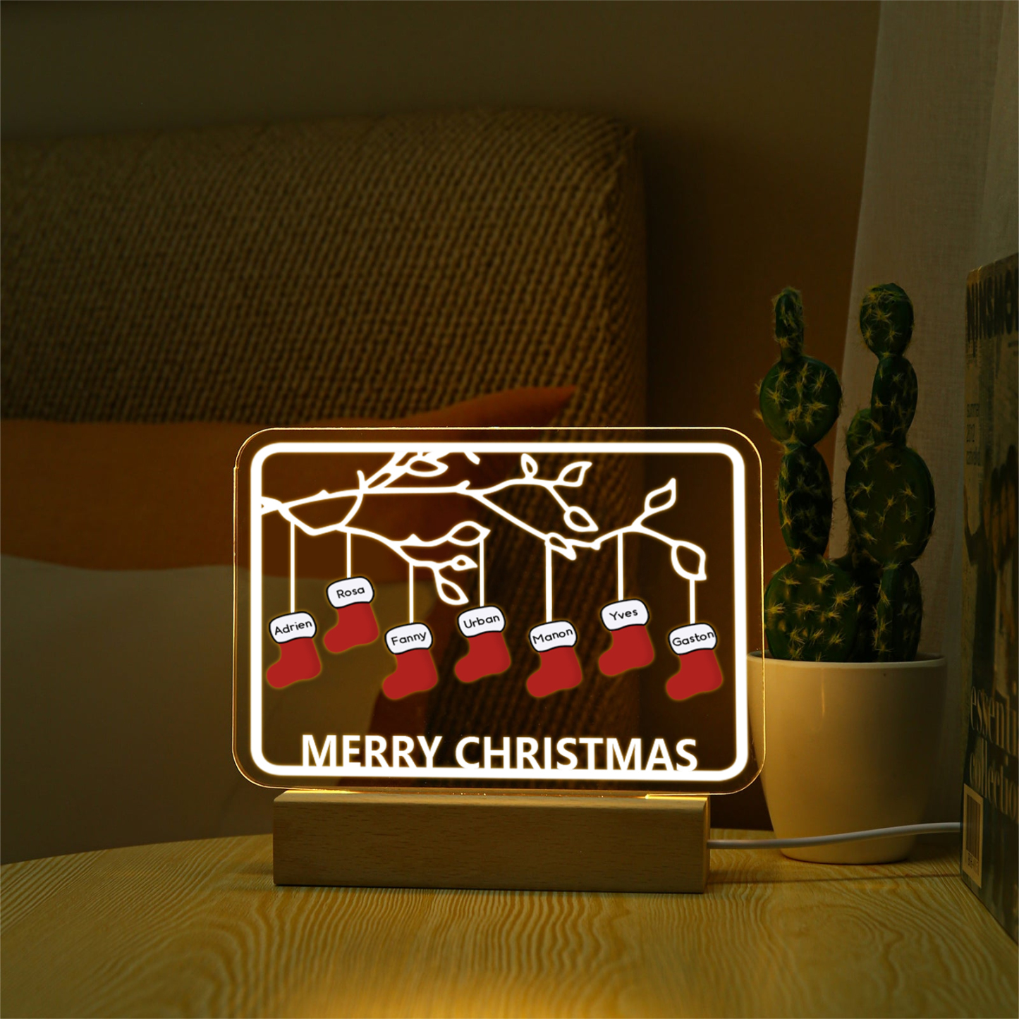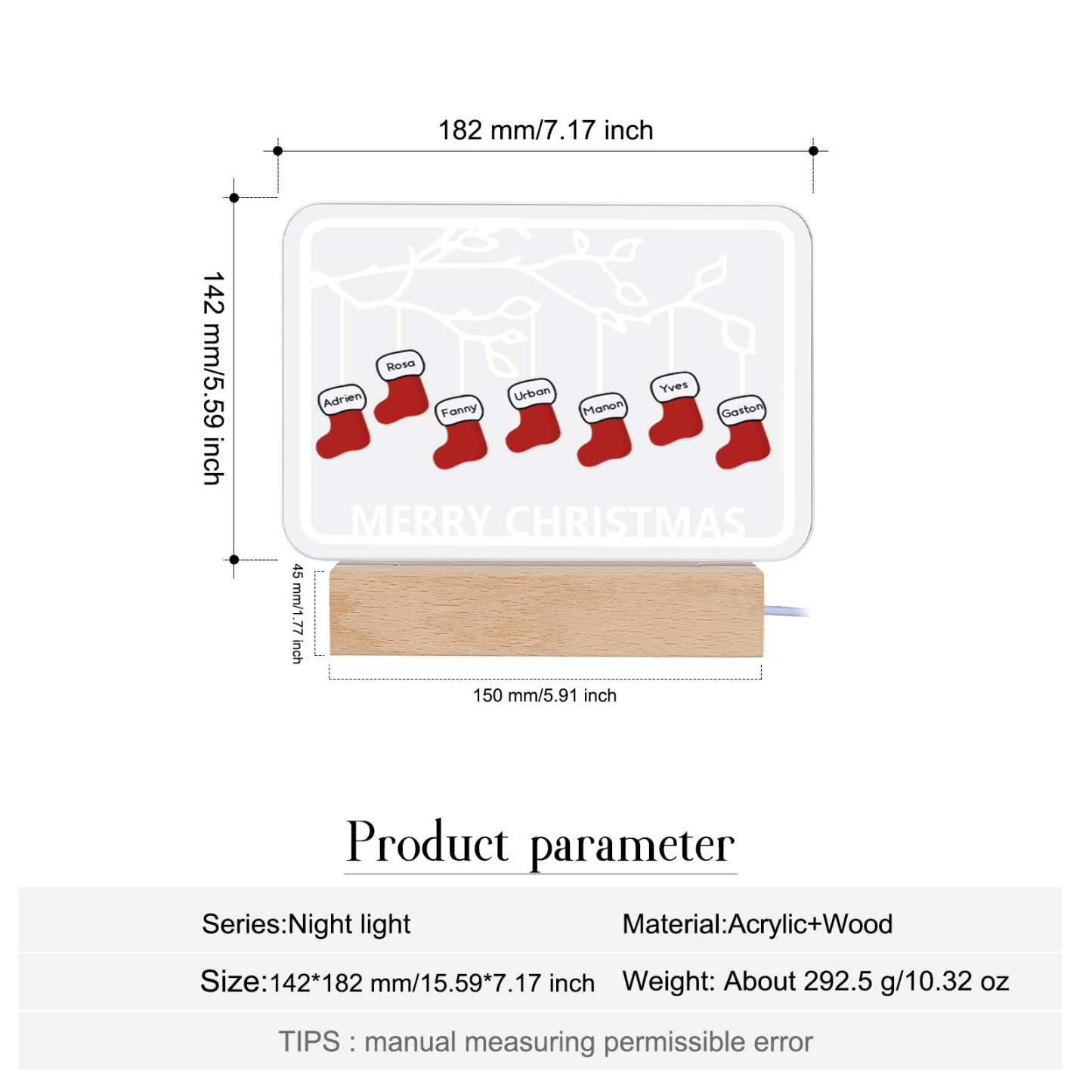 7 Names-Personalized Christmas Family Night Light with Family Member Names, Custom 7 Names Night Light with LED Lighting Bedroom Decoration