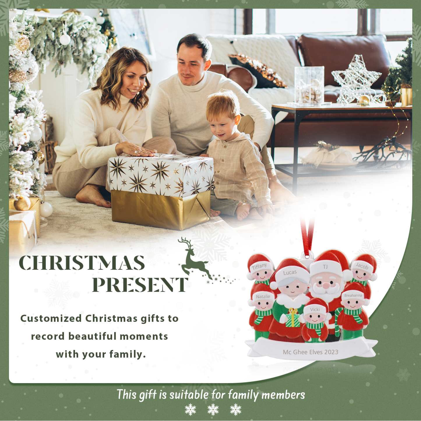 🎁Made of Resin material, 4-7 names and text can be customized, The names of each family member are written on the hat, and a year or text can be written on the banner. this is a great Christmas gift for the family.