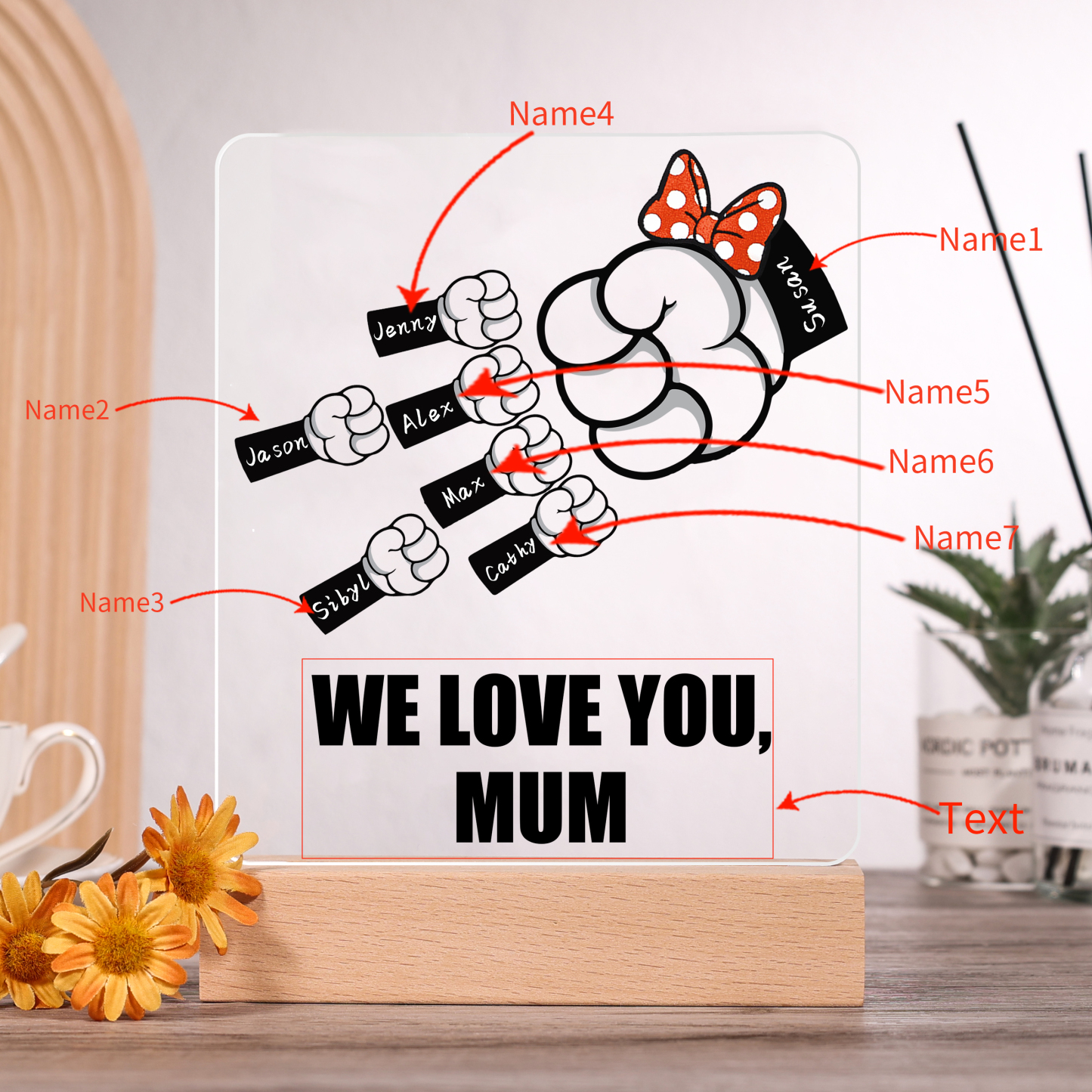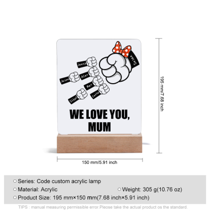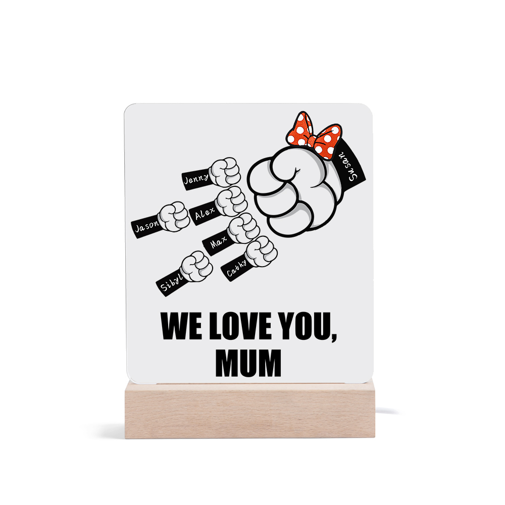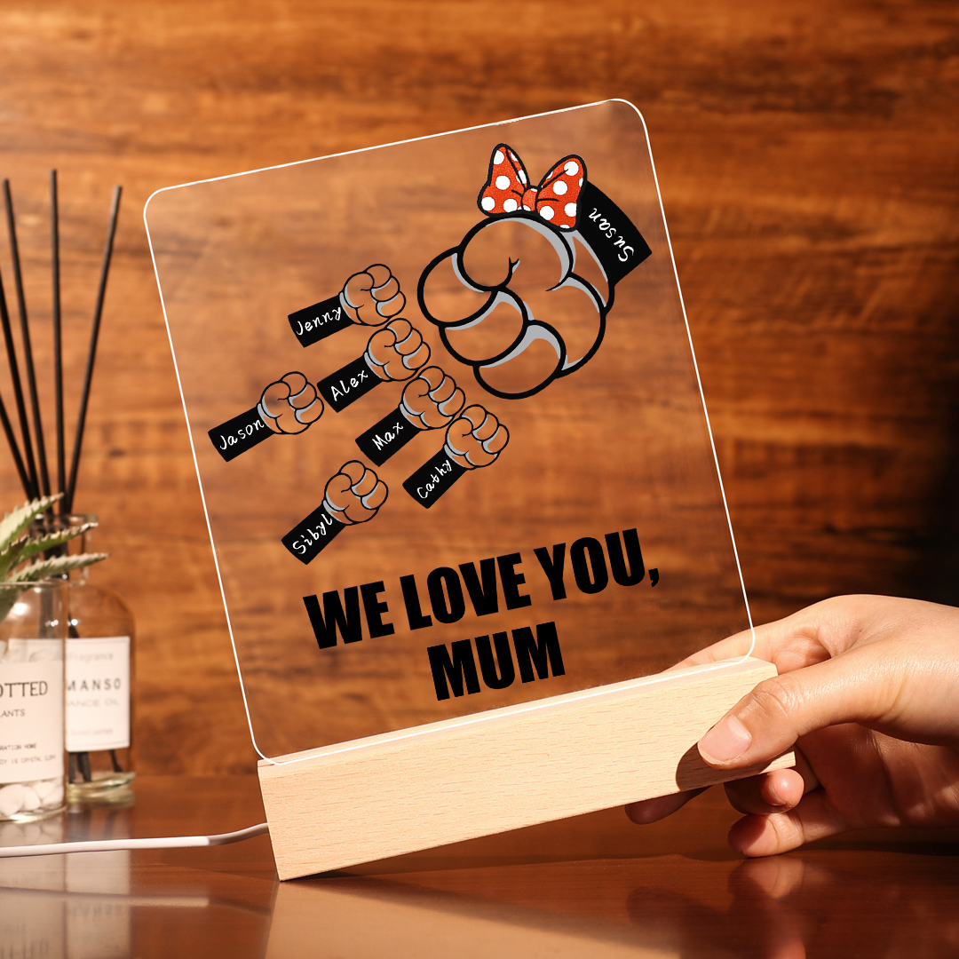 7 Names-Personalized Family Fist Bump Acrylic Night Light, Custom Text Lamp Gift For Family