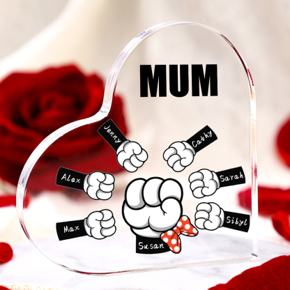 7 Names-Personalized Family Fist Bump Acrylic Ornament-Custom Text Acrylic Family Heart Keepsake Desktop Ornament For Family