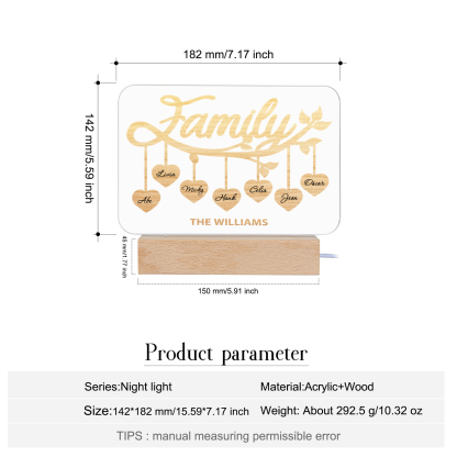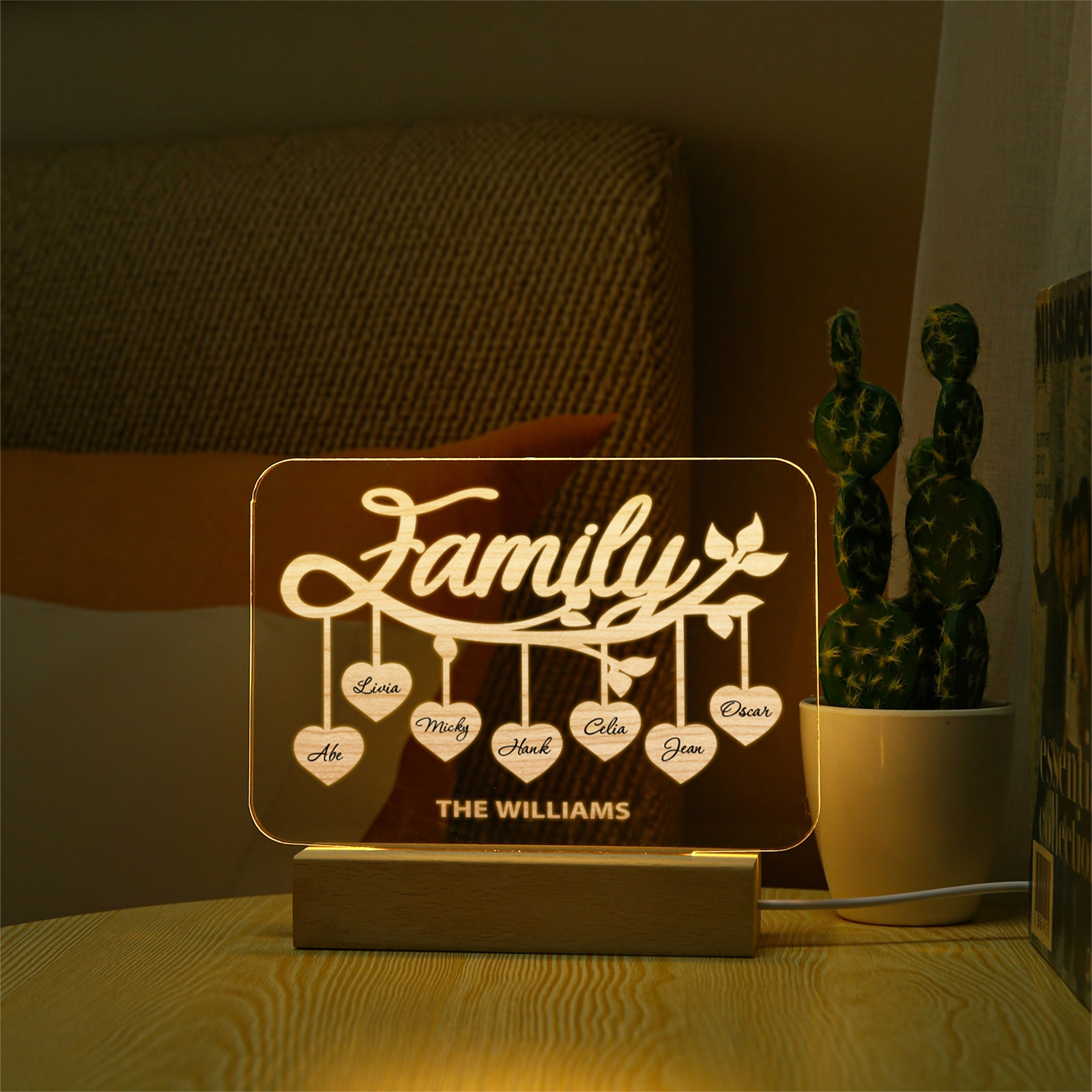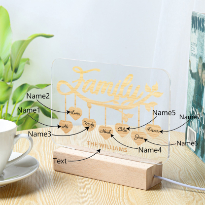 7 Names-Personalized Family Night Light Custom Text LED Lamp Mother's Day Gift For Family