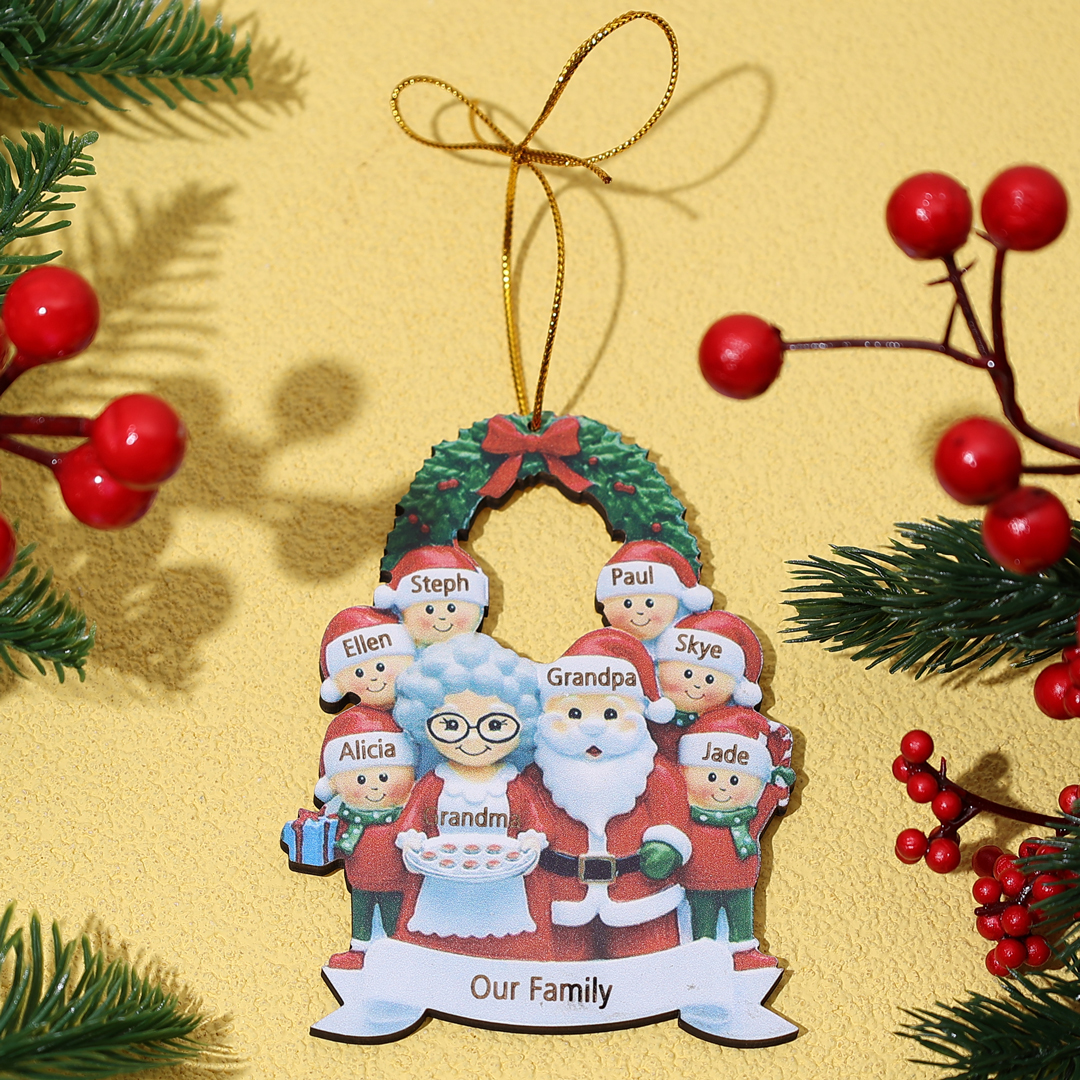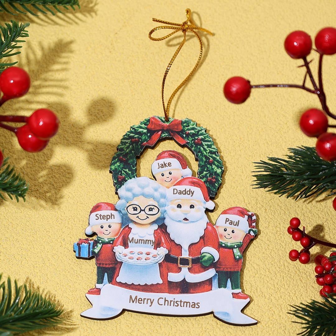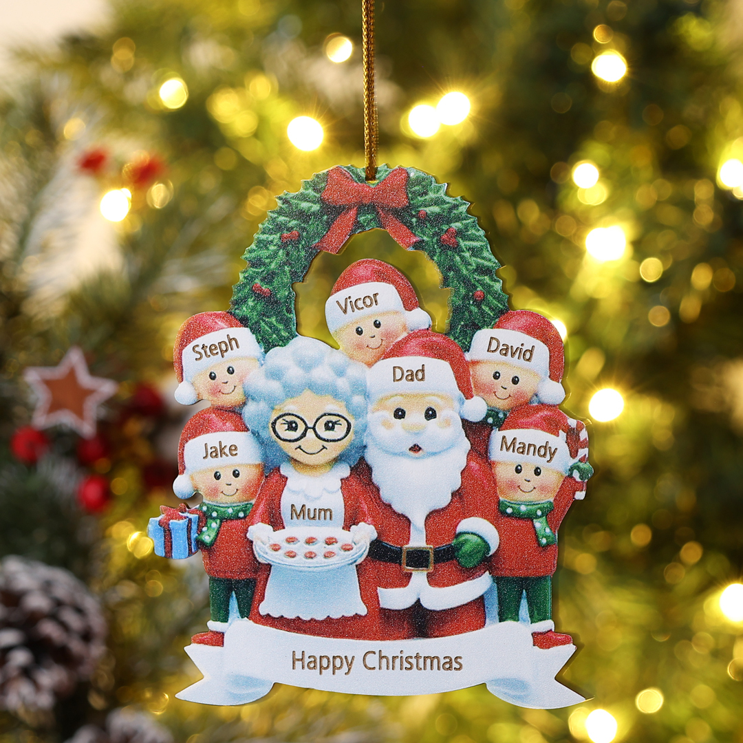 7 Names-Personalized Family Wooden Christmas Xmas Tree Decoration Ornament-Custom 7 Names Hanging Ornament Gifts For Family