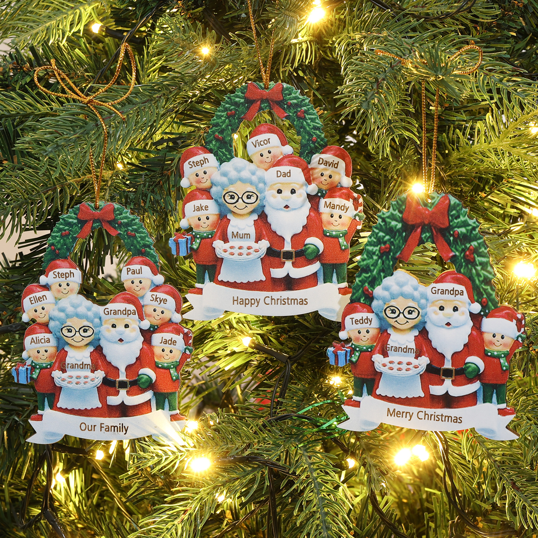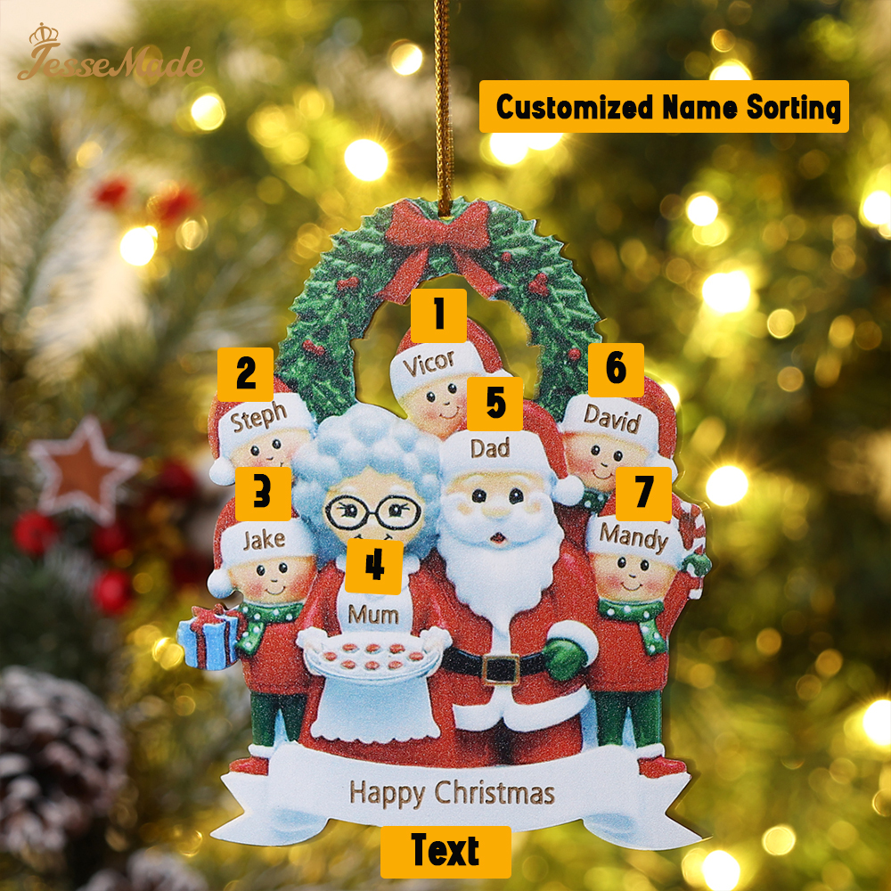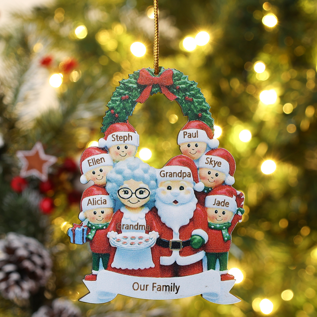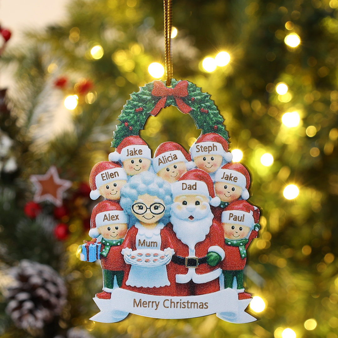 7 Names-Personalized Family Wooden Christmas Xmas Tree Decoration Ornament-Custom 7 Names Hanging Ornament Gifts For Family