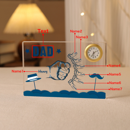 7 Names - Personalized Fist Bump Custom Name Acrylic Clock Ornament Father's Day Gift for Dad