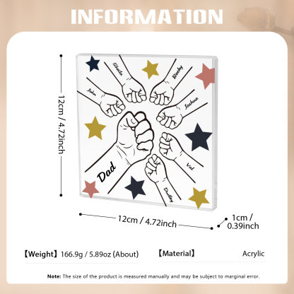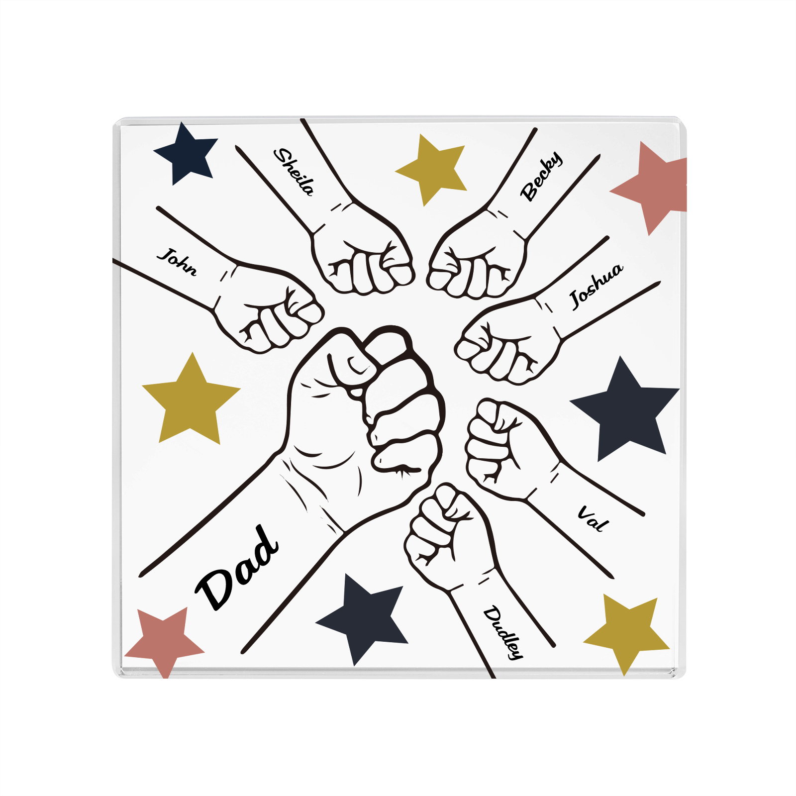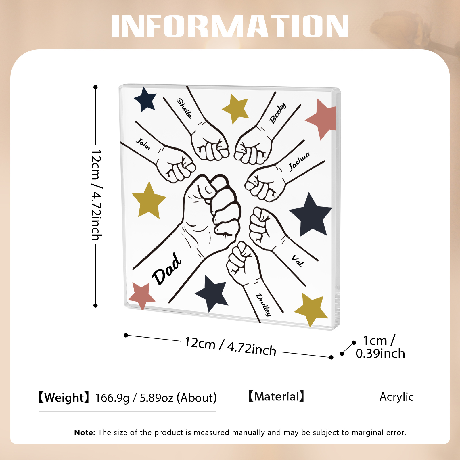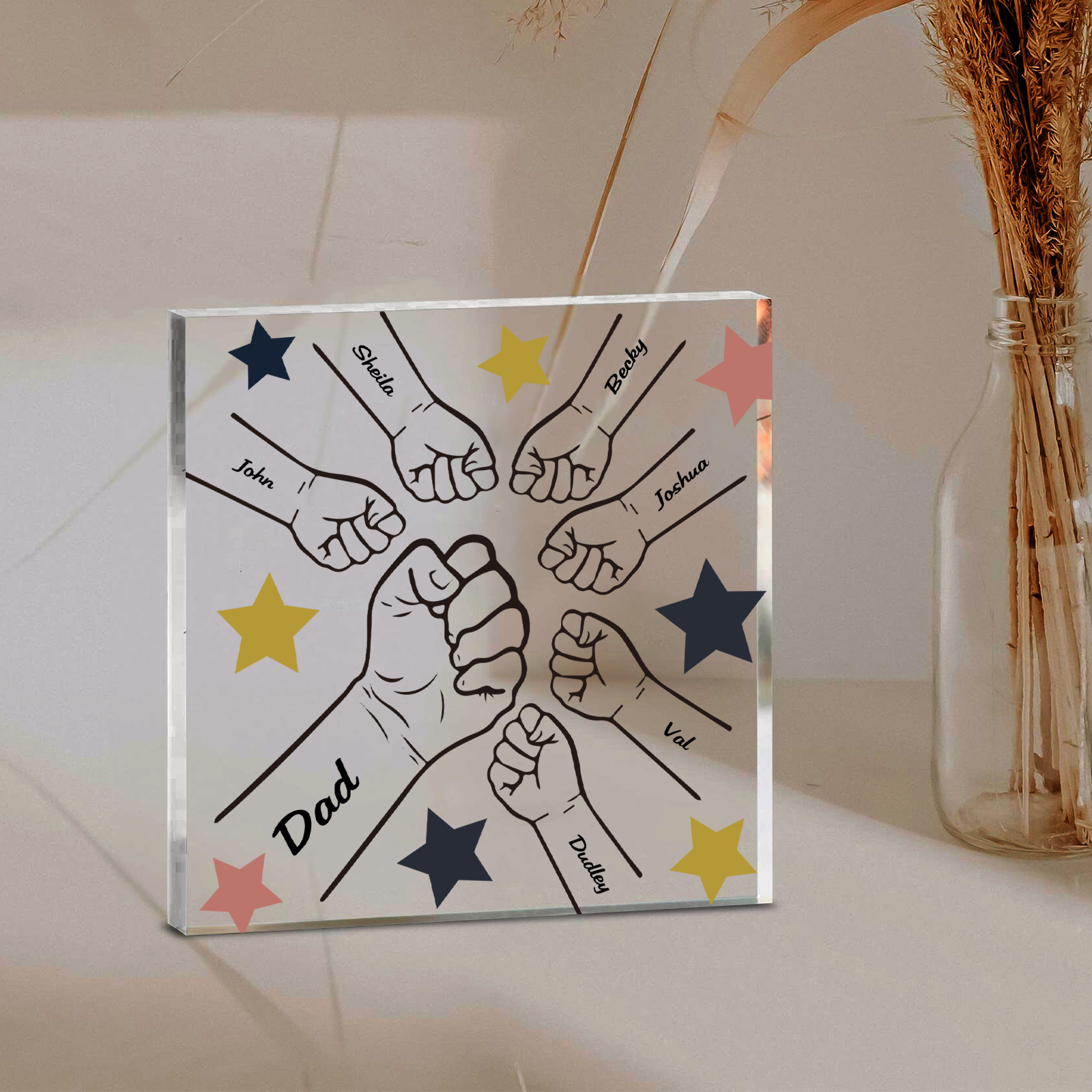 7 Names - Personalized Fist Bump Family Acrylic Keepsake Customized Name Acrylic Home Decor Gift for Dad