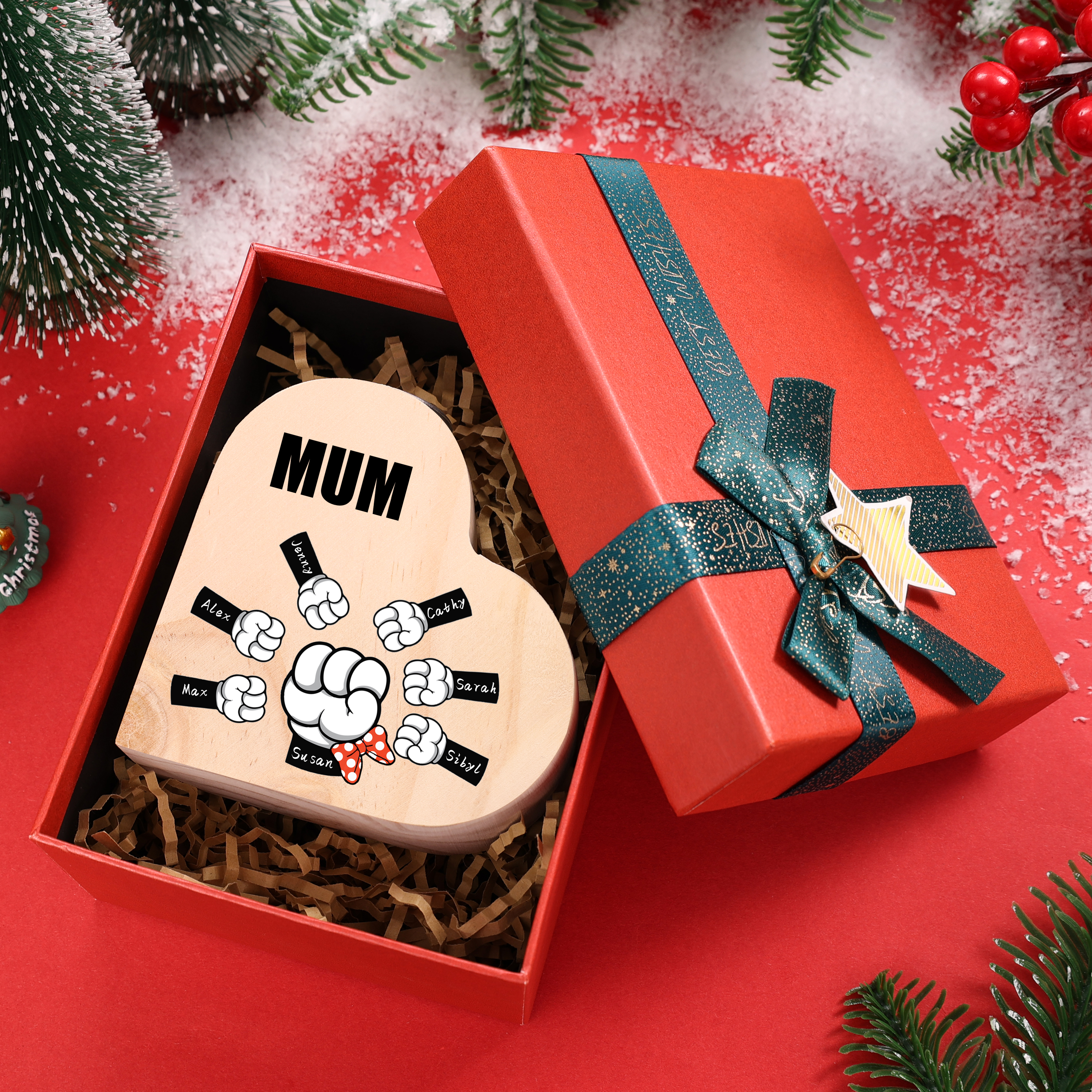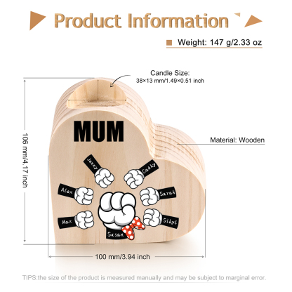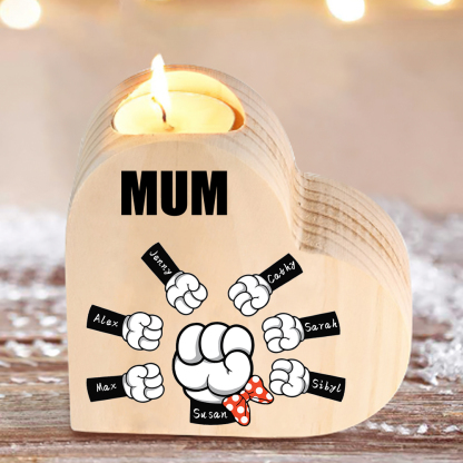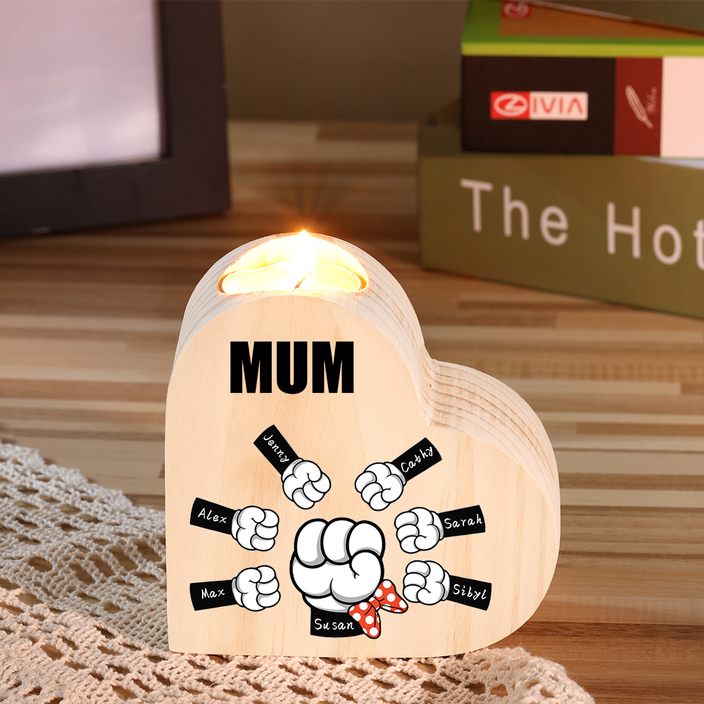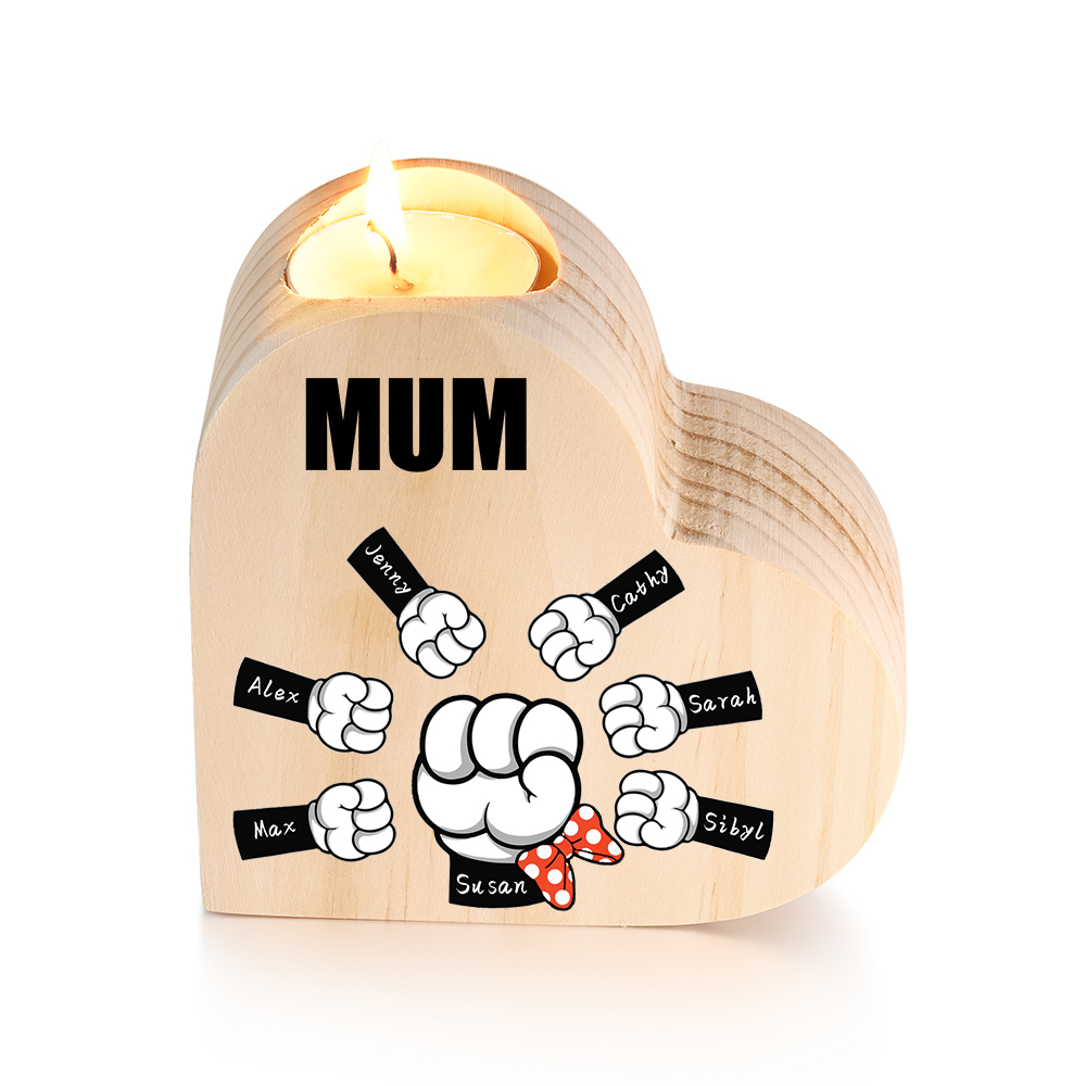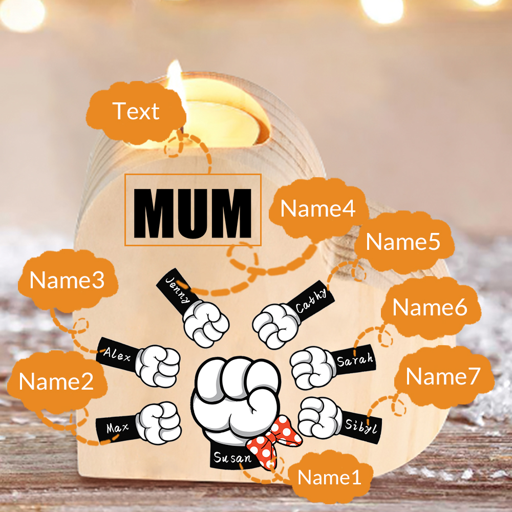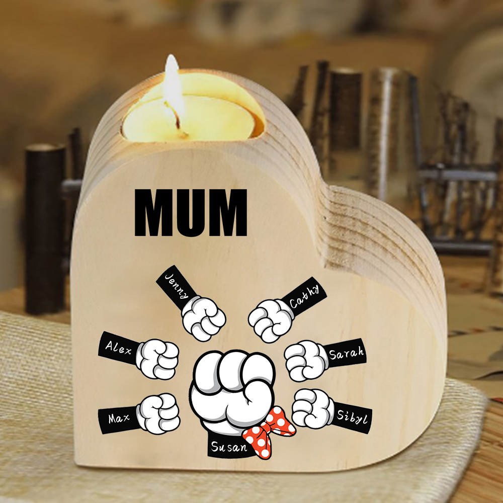 7 Names-Personalized Fist Bump Heart-Shape Candlestick Custom Text Mother's Day Gift Wooden Custom Candle Holder For Mum