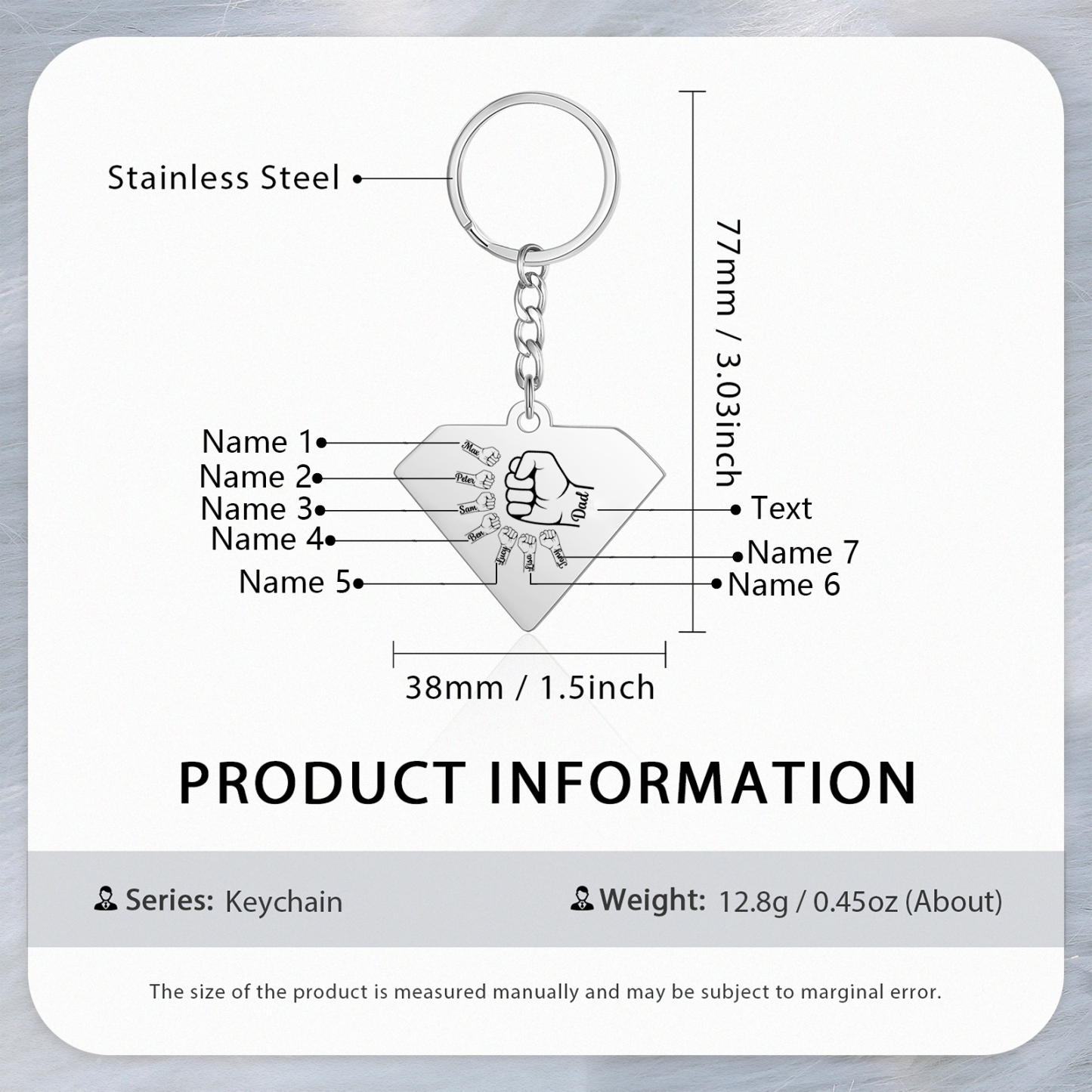 7 Names - Personalized Fist Bump Keychain Engraved Kids Names and text Keychain Gifts for Dad/Grandad