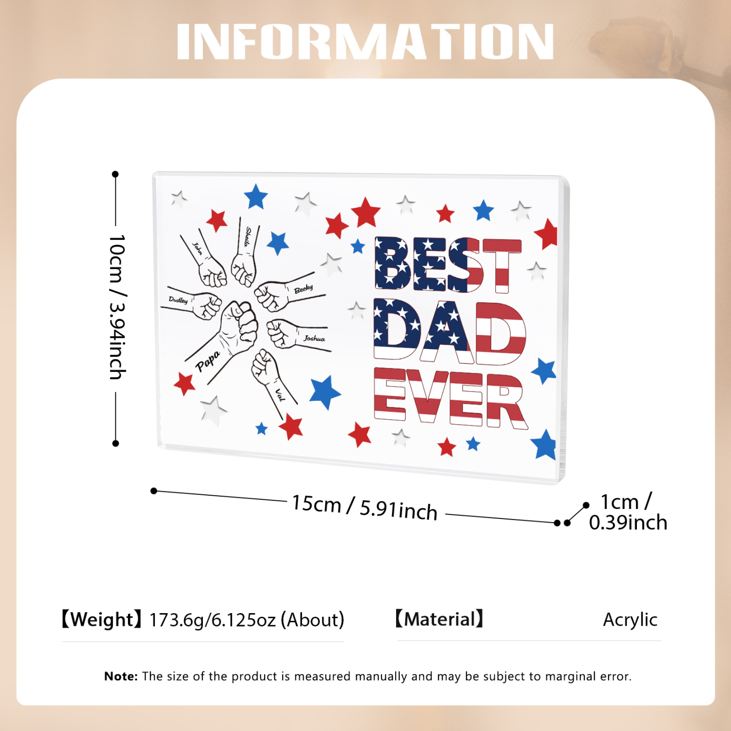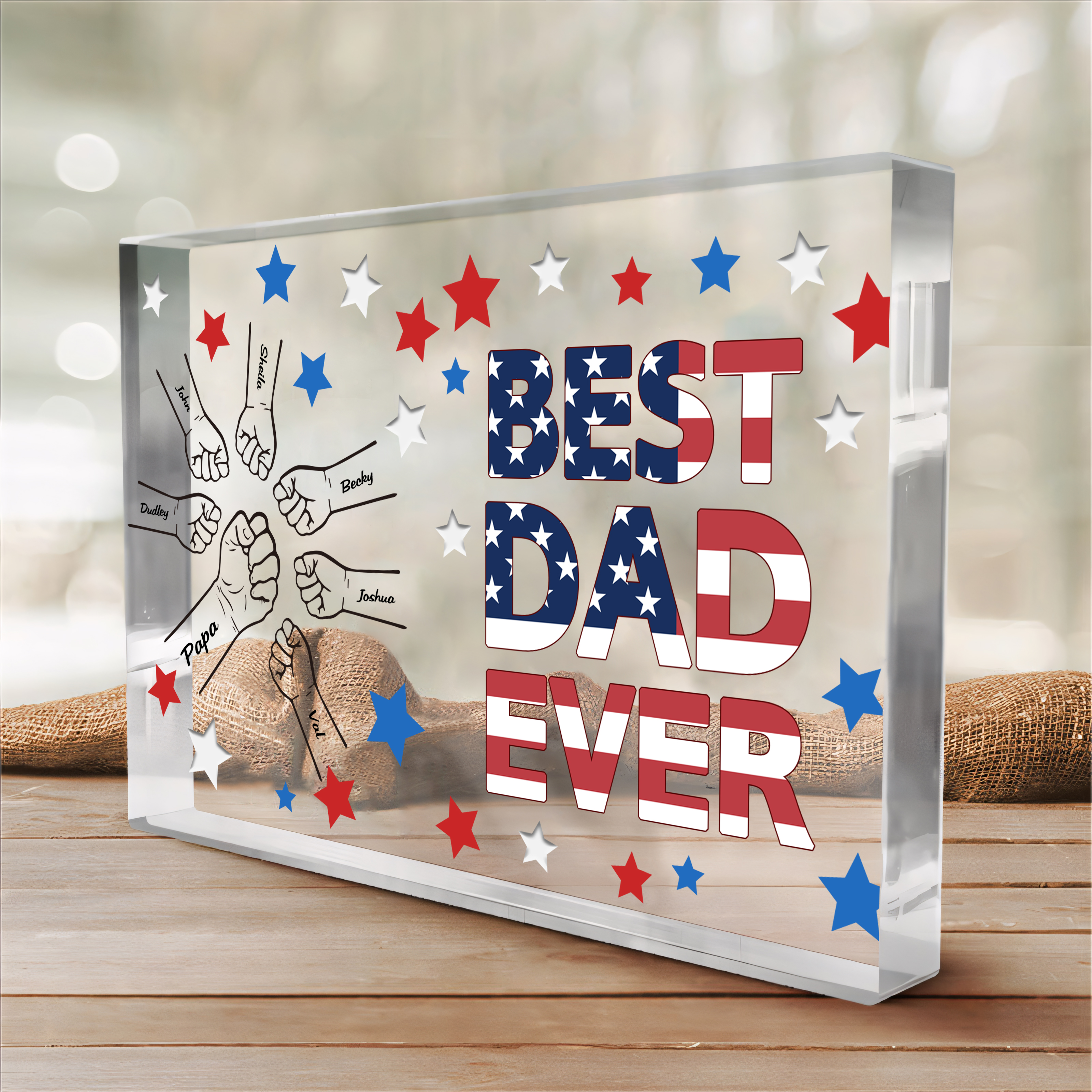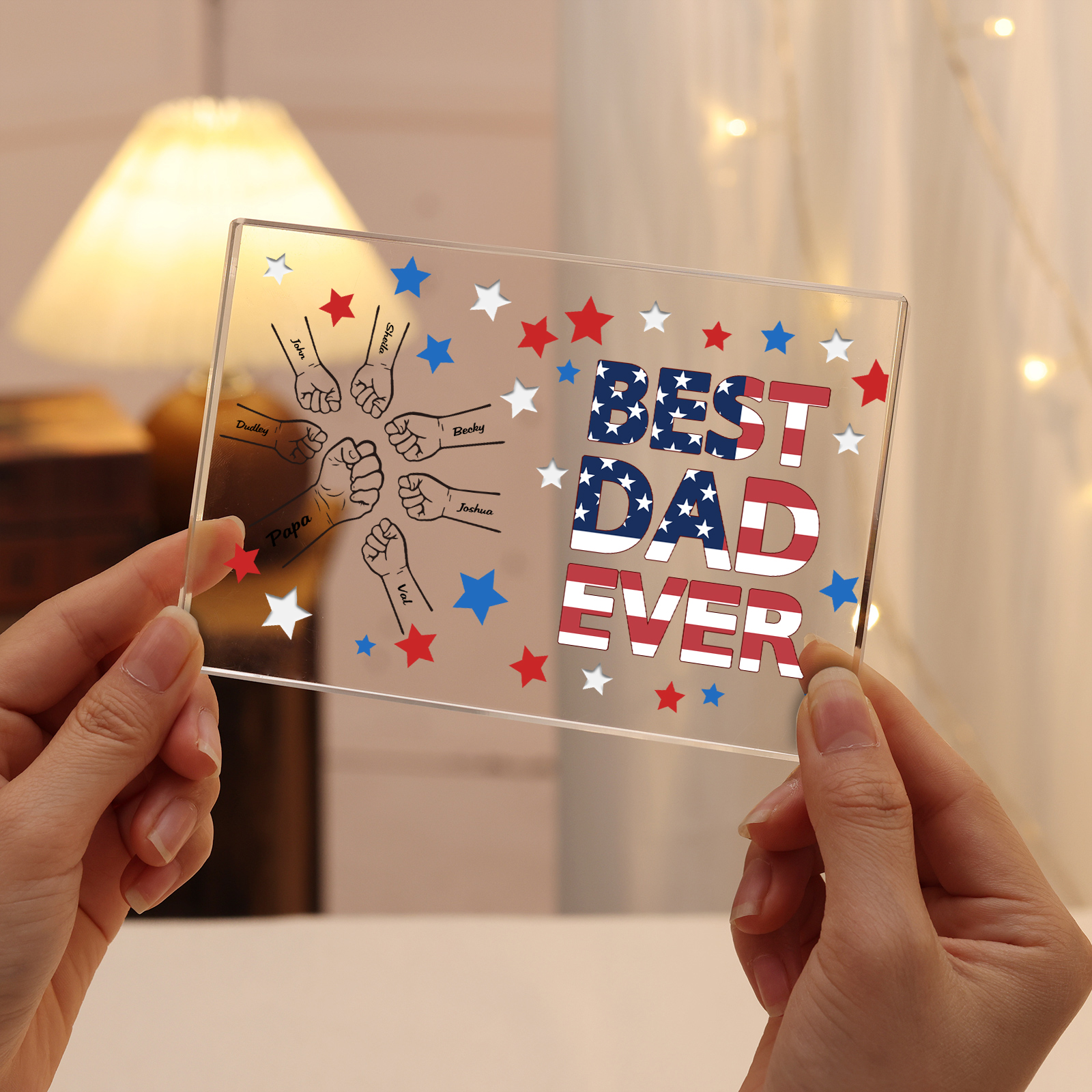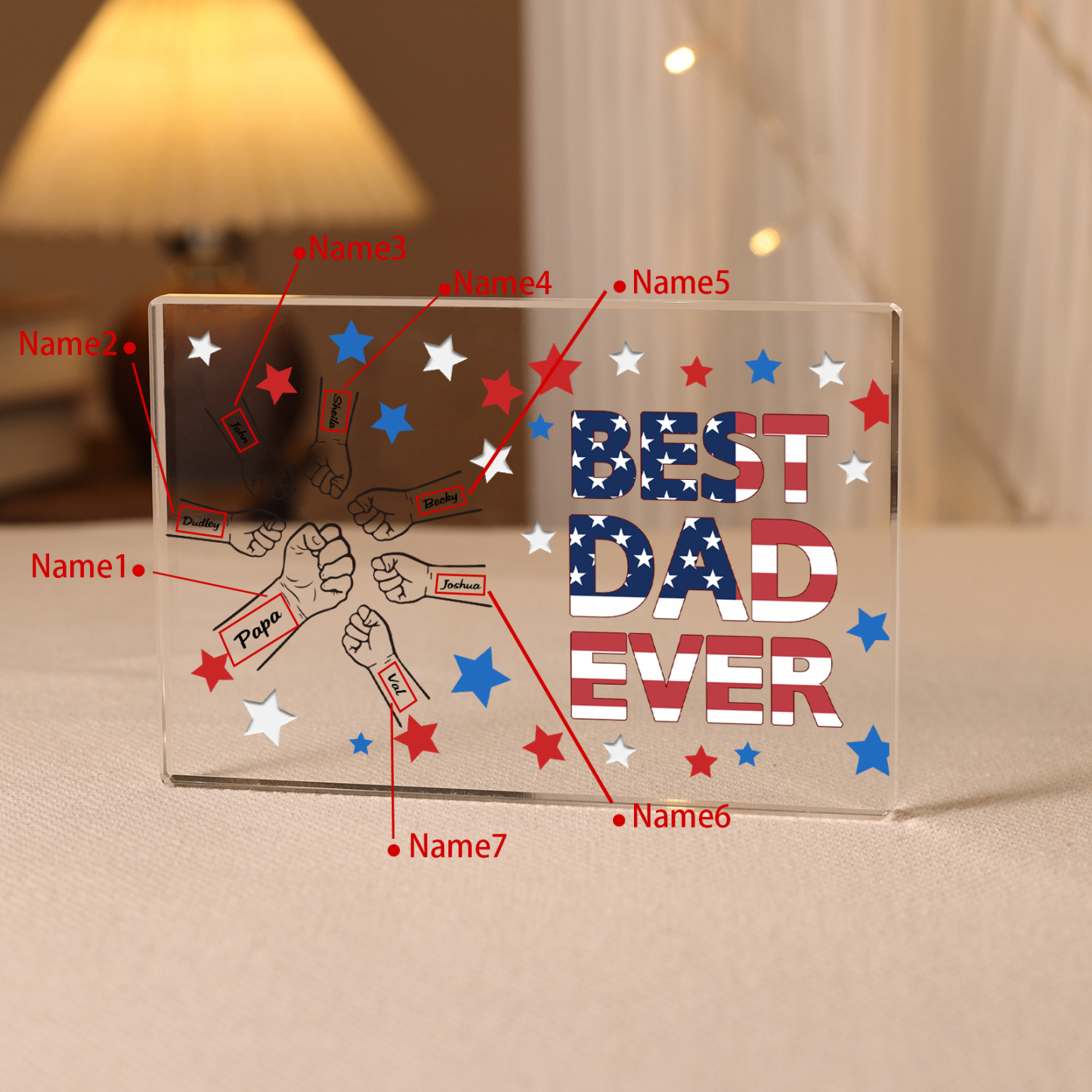 7 Names - Personalized Fist Family Acrylic Keepsake Customized Name Acrylic Home Decor Gift for Dad