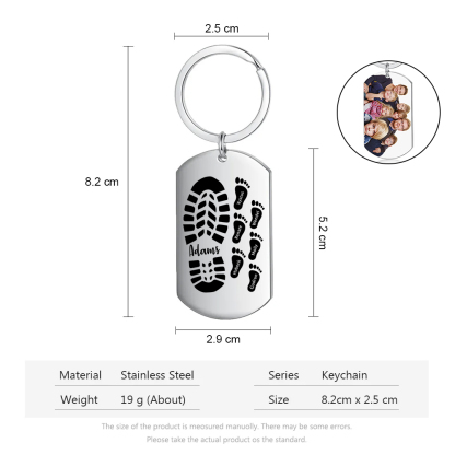 7 Names - Personalized Footprint Pattern Keychain Custom Named Father's Day Gift for Dad