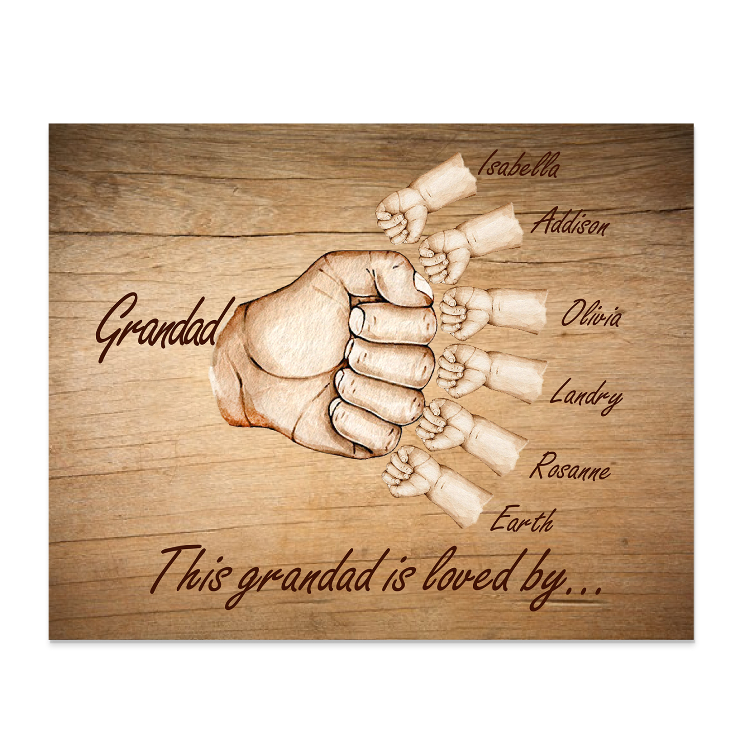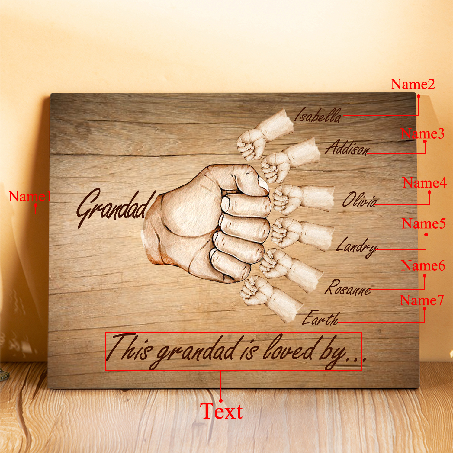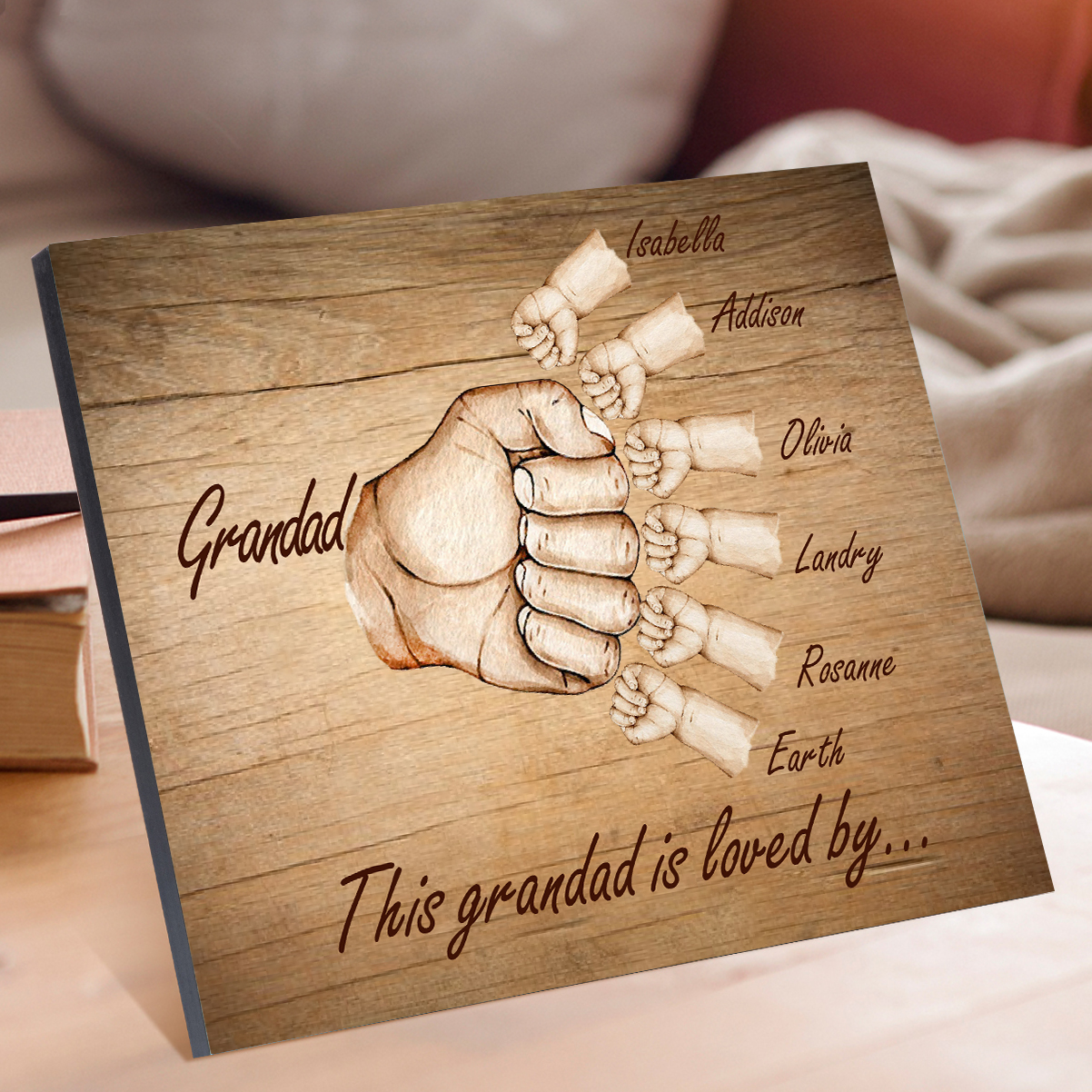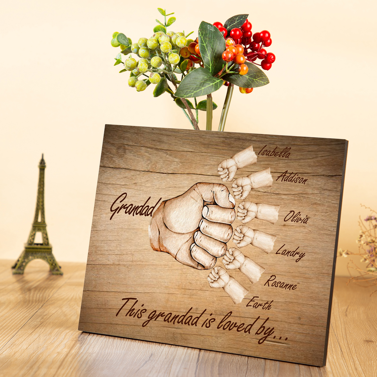 7 Names-Personalized Grandad Family Fist Bump Frame Wooden Ornament Custom Text Plaque Home Decoration for Grandfather