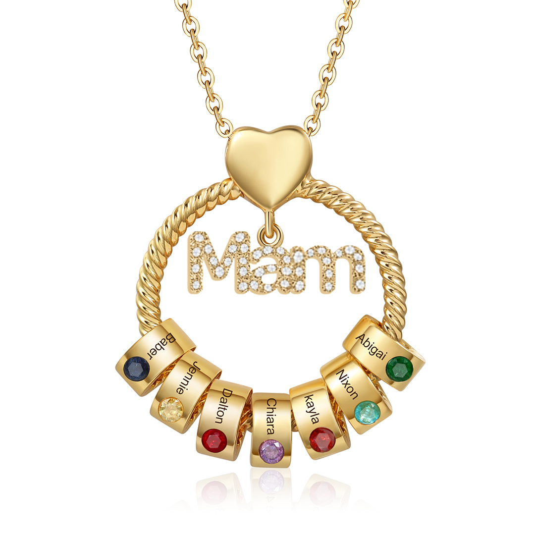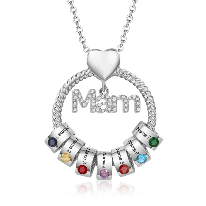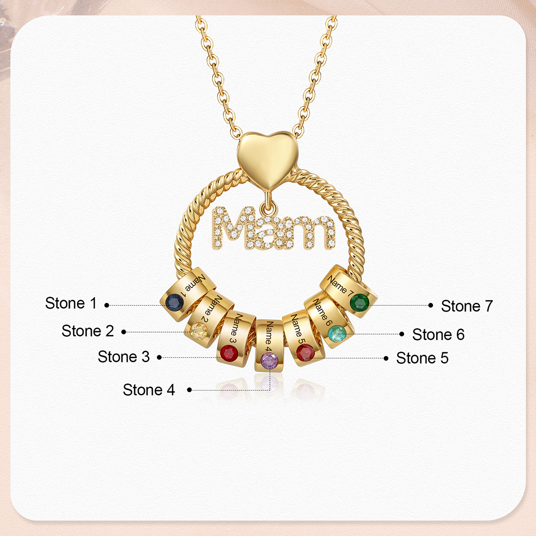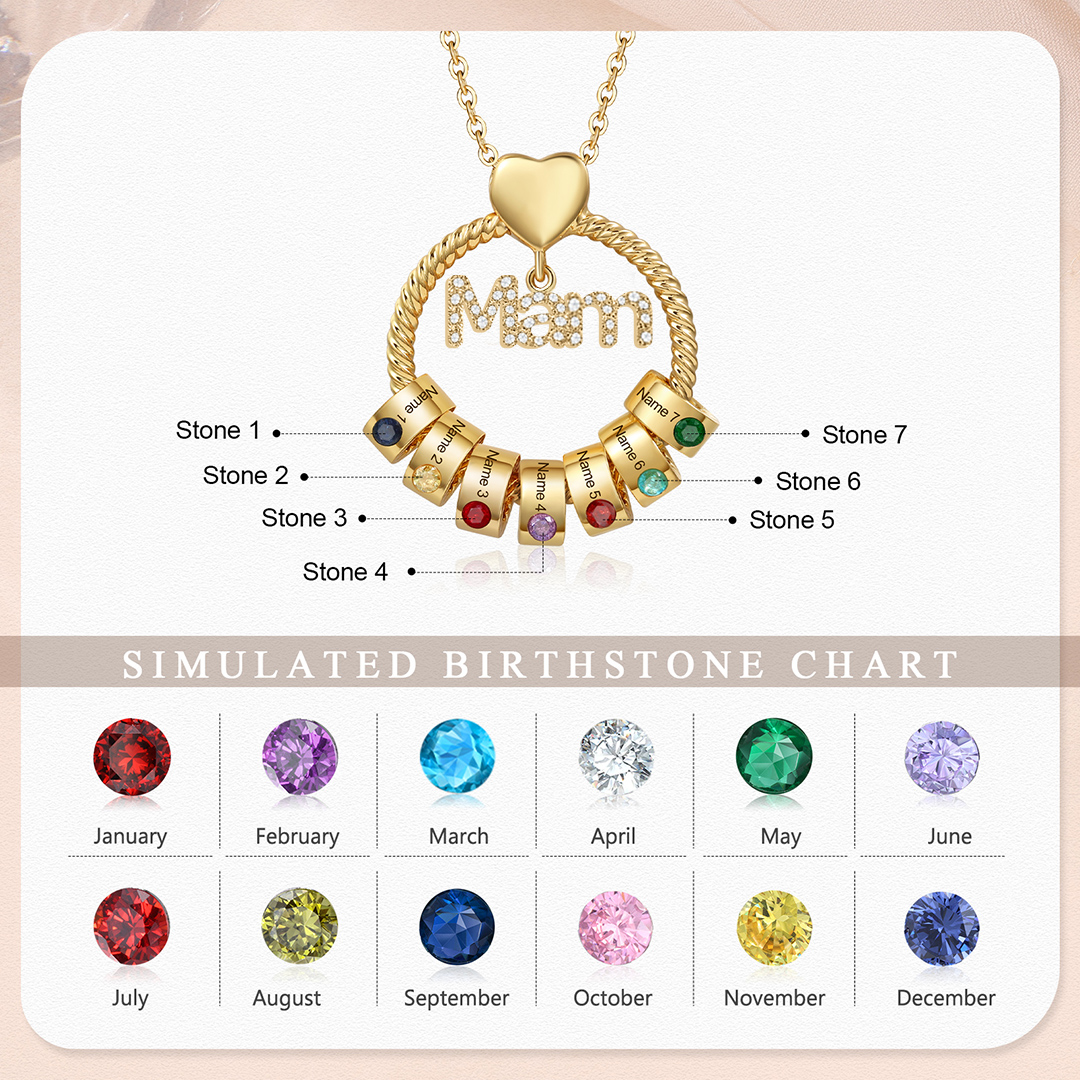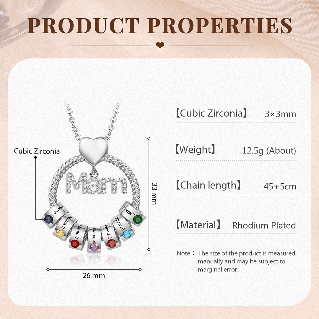 7 Names-Personalized Mam Circle Necklace With 7 Birthstones Pendant Engraved Names Gift For Mother