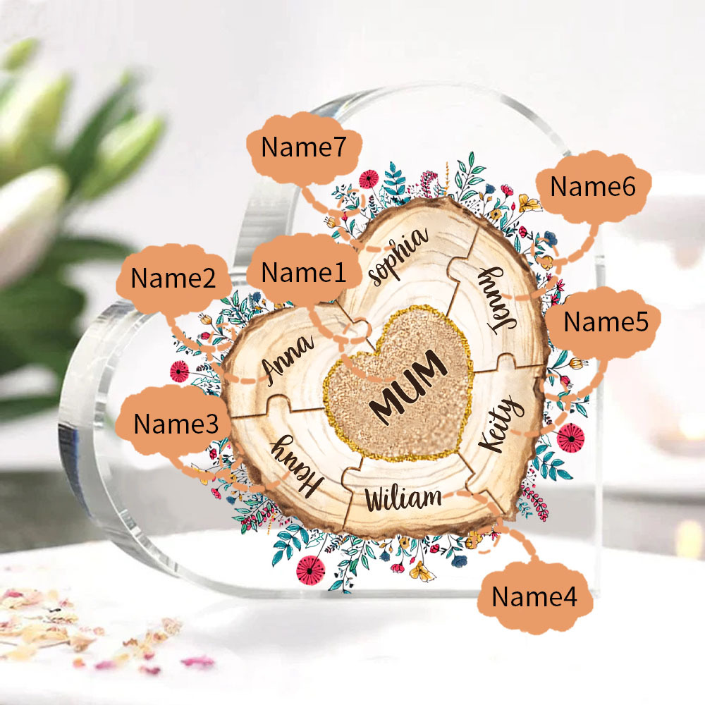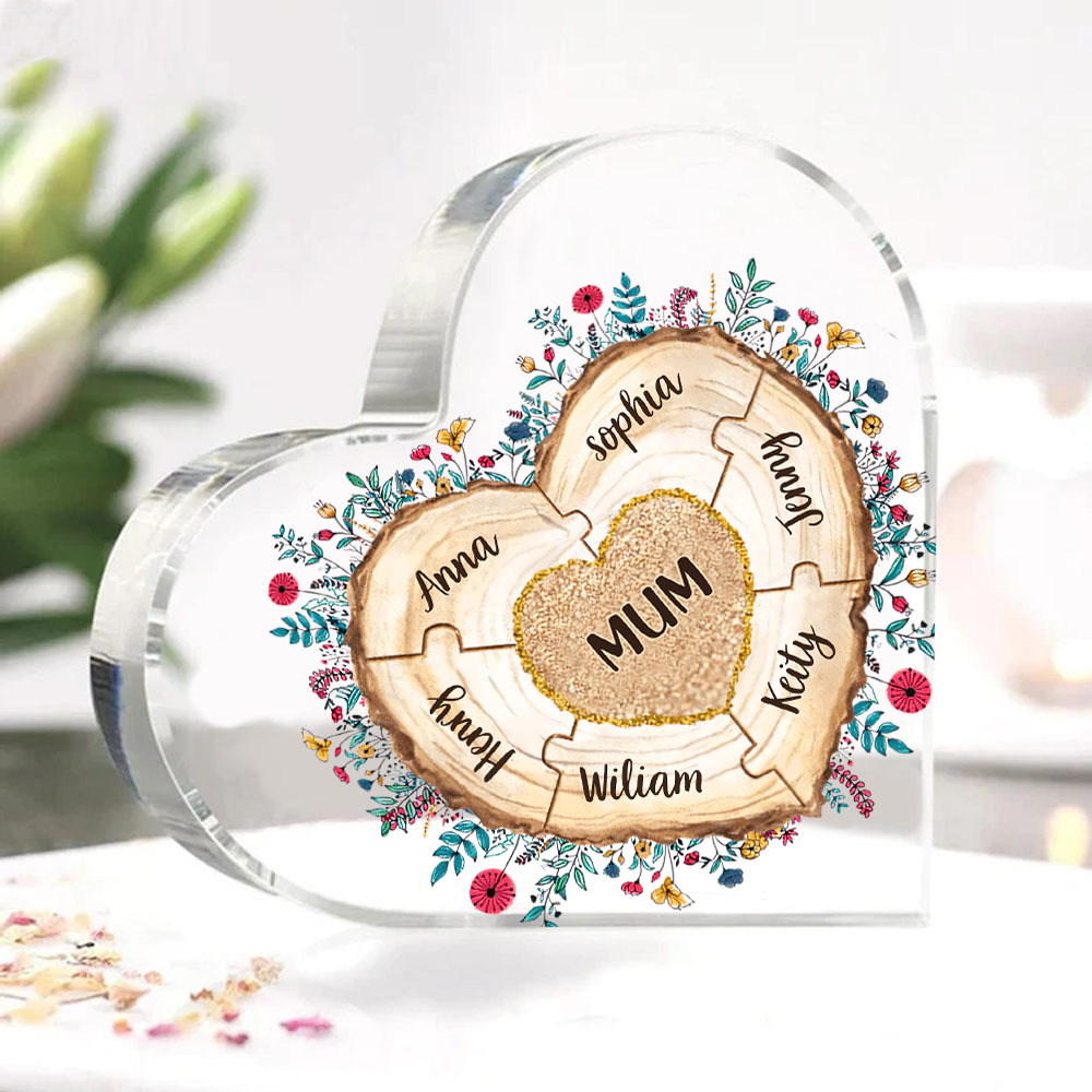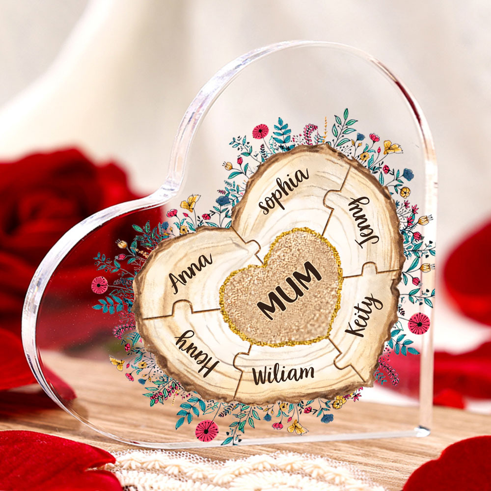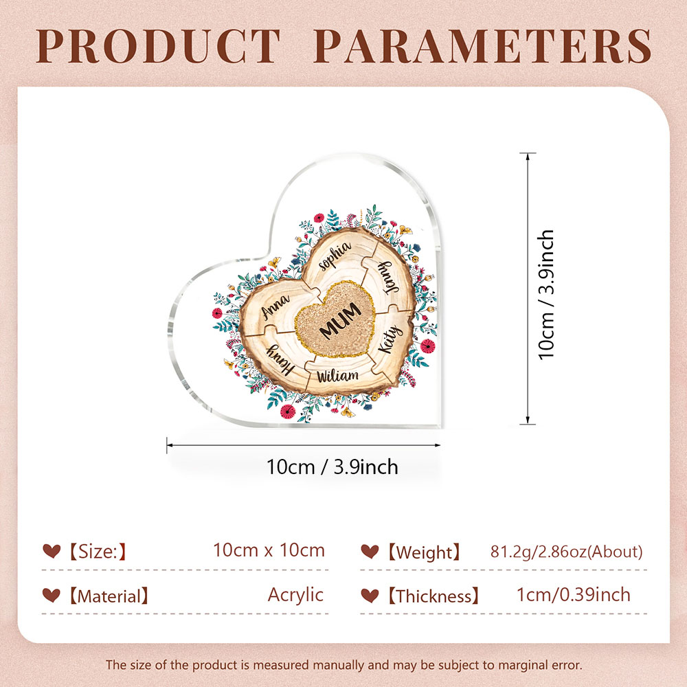 7 Names-Personalized Mom Acrylic Heart Keepsake Growth Rings Ornaments Gifts Set With Gift Box for Grandma/Mother