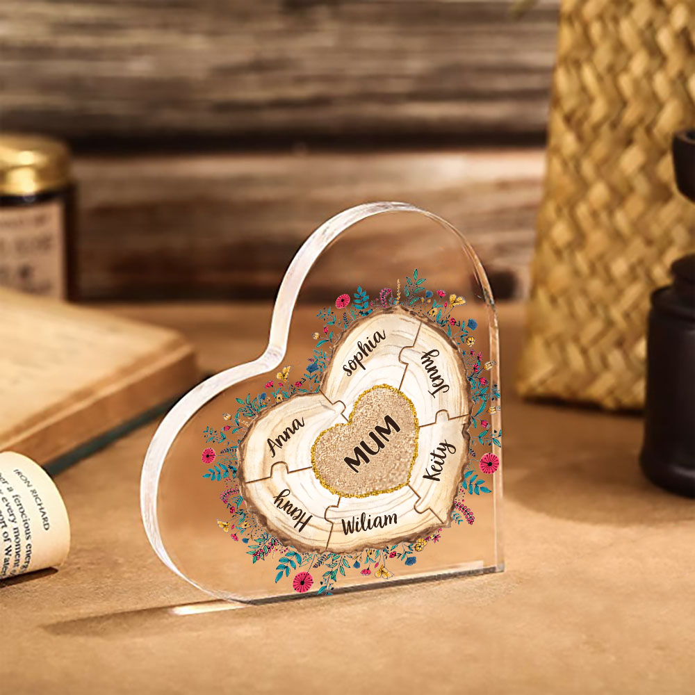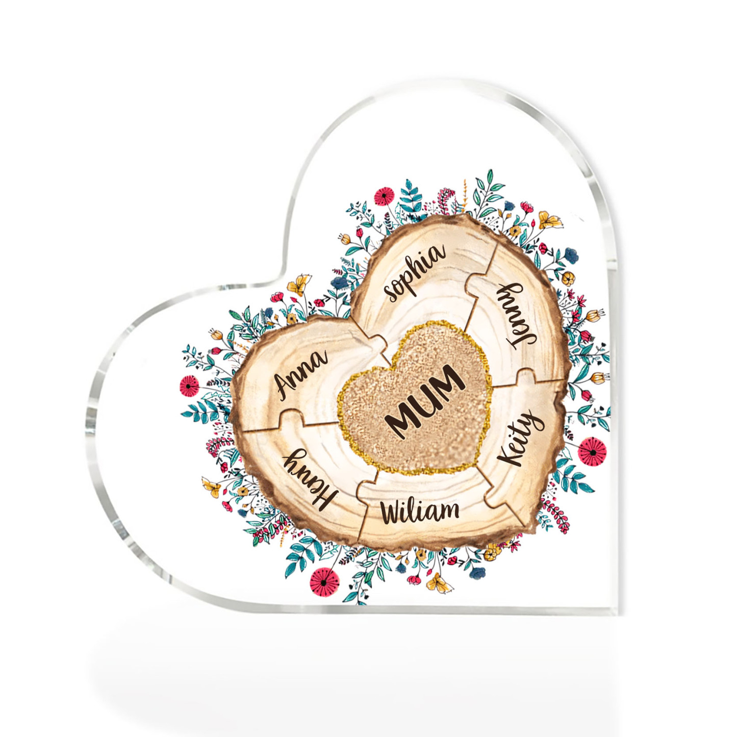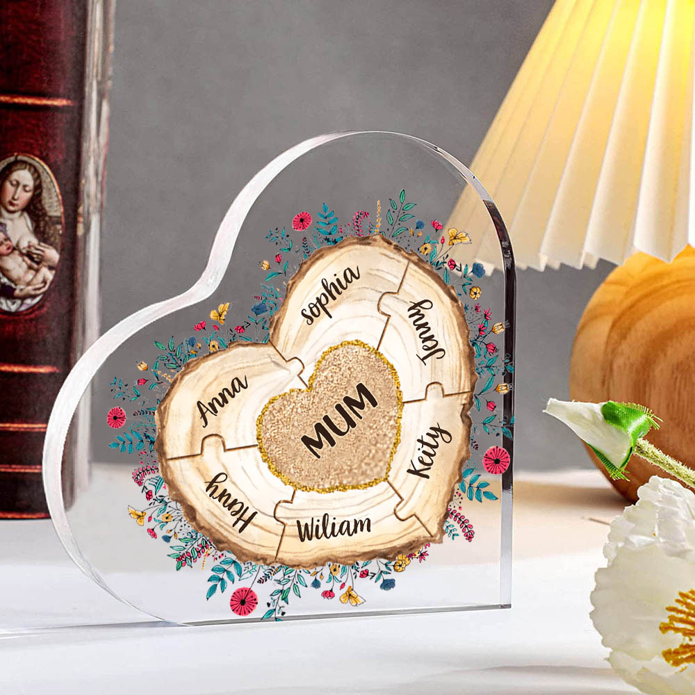 7 Names-Personalized Mom Acrylic Heart Keepsake Growth Rings Ornaments Gifts Set With Gift Box for Grandma/Mother