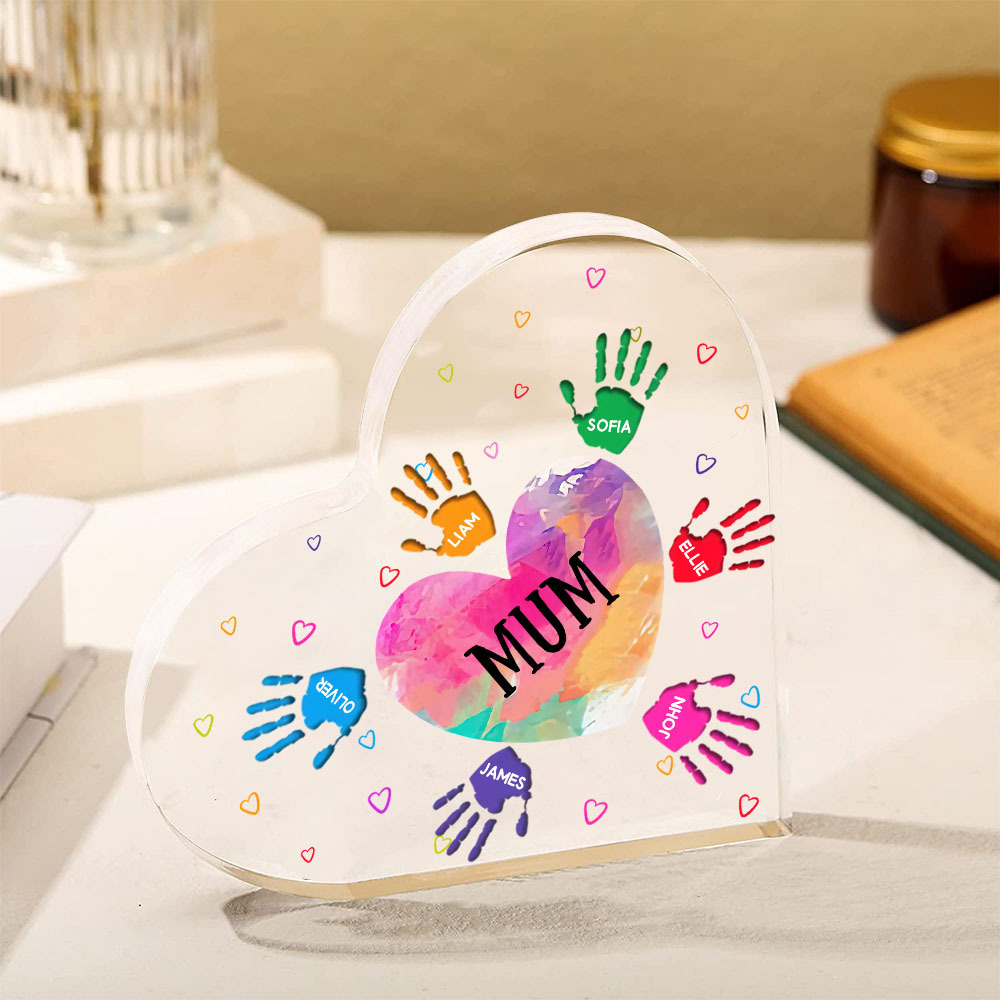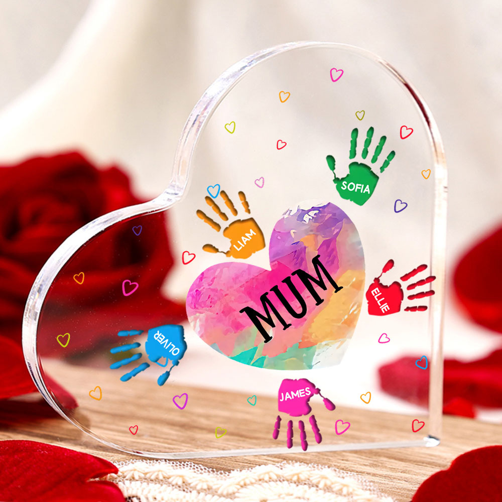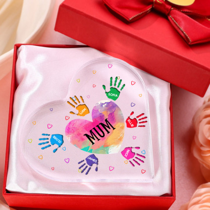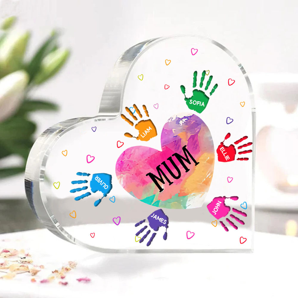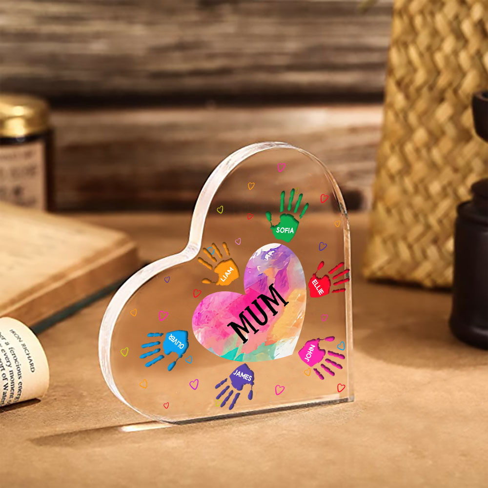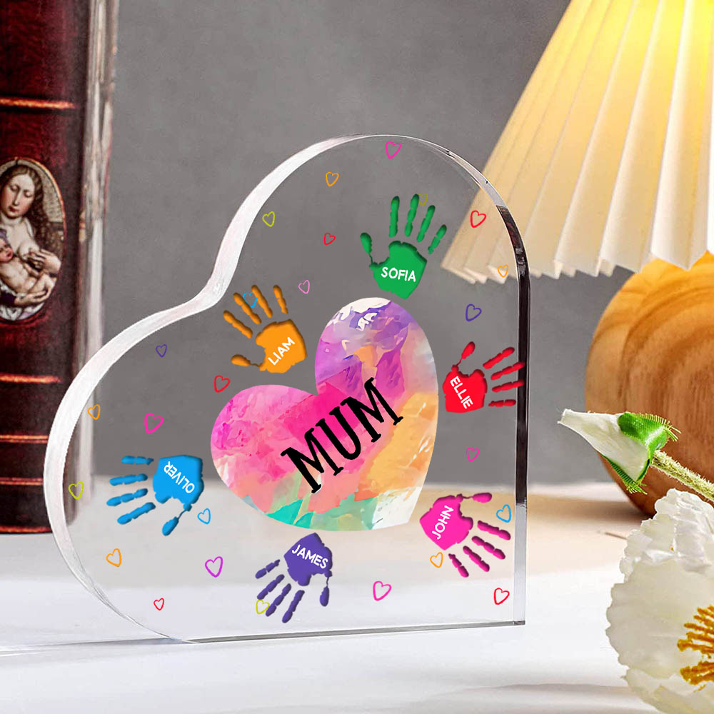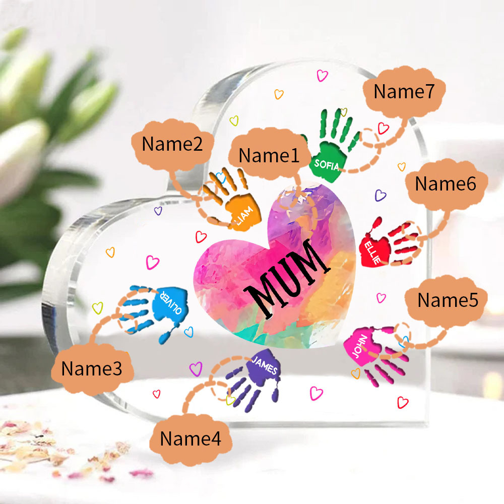 7 Names-Personalized Mom Acrylic Heart Keepsake Palm Ornaments Gifts Set With Gift Box for Grandma/Mother