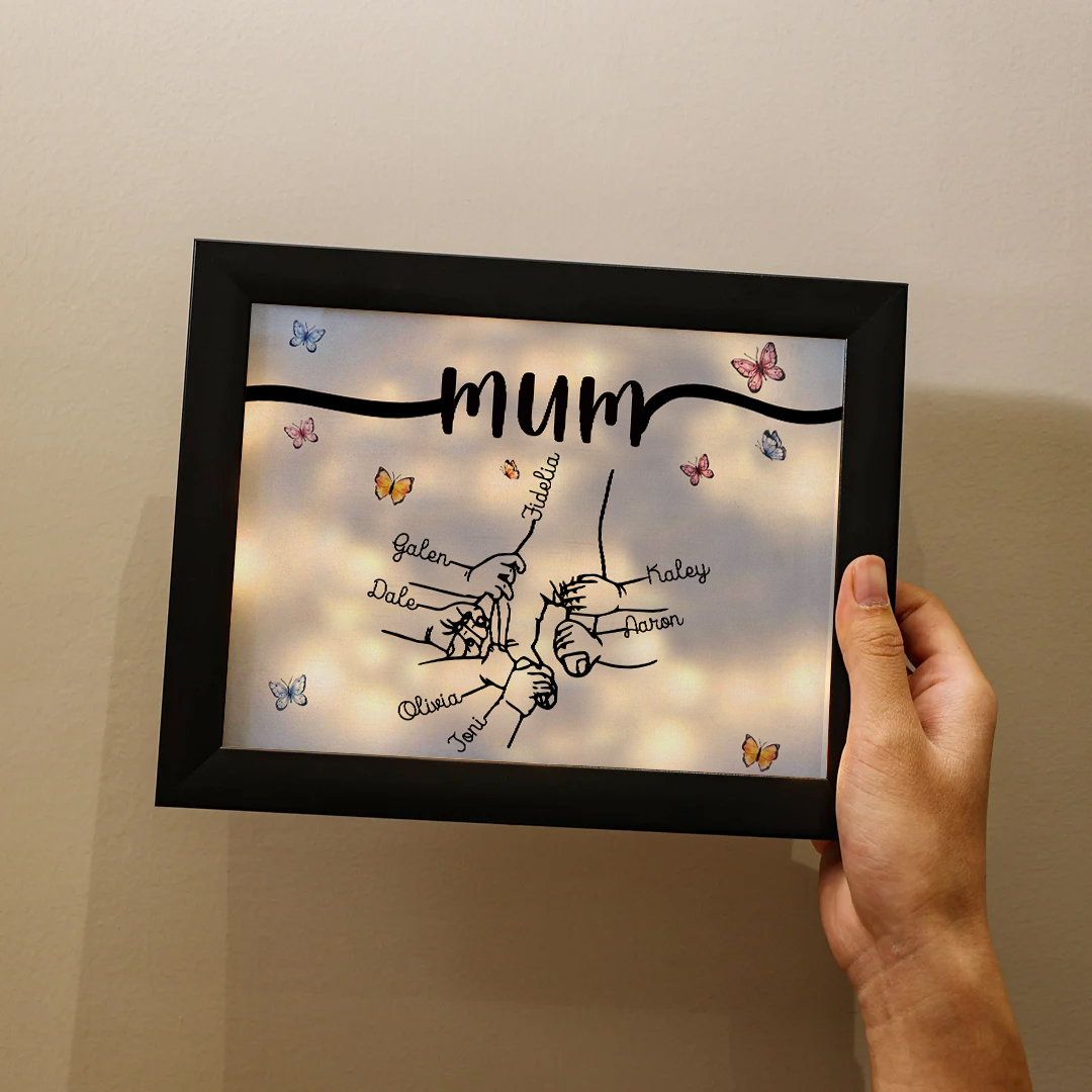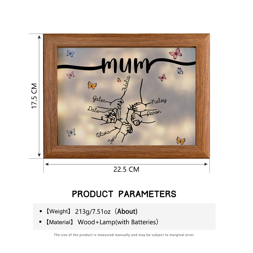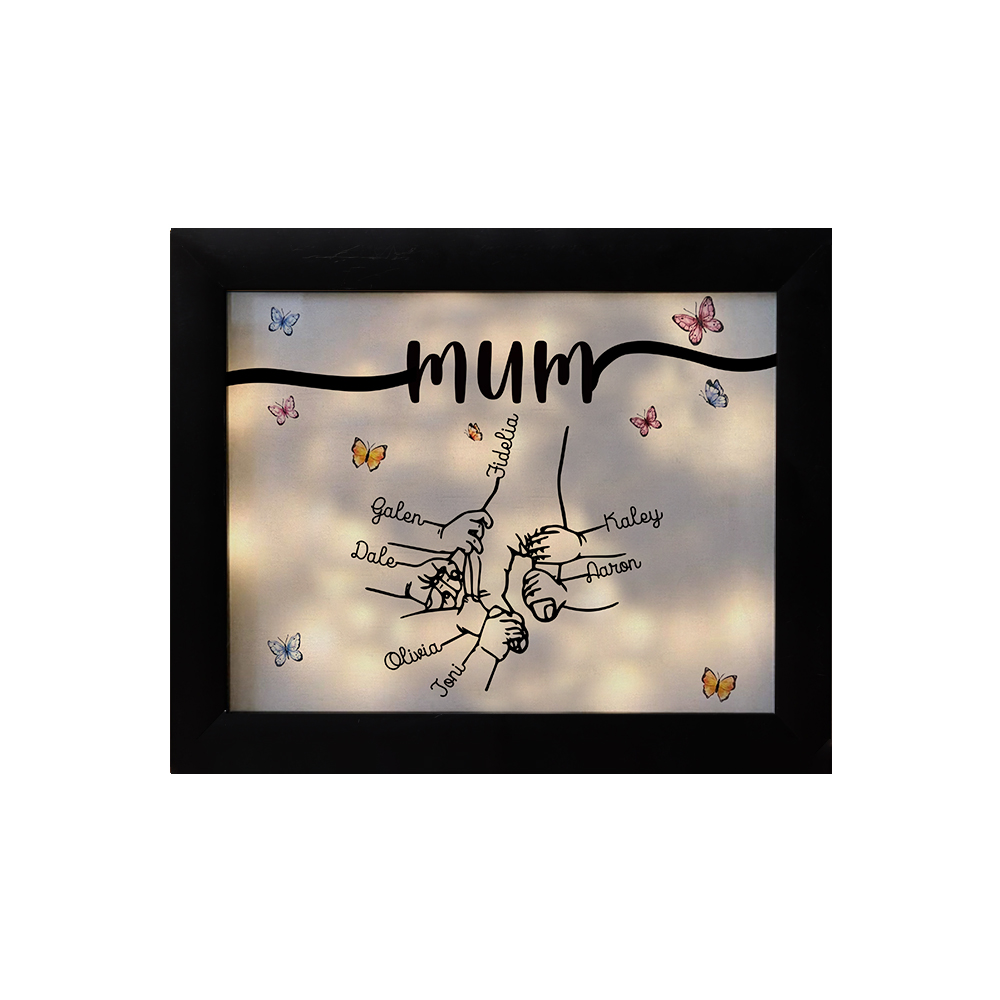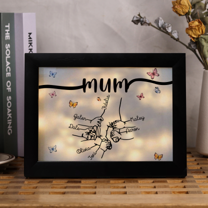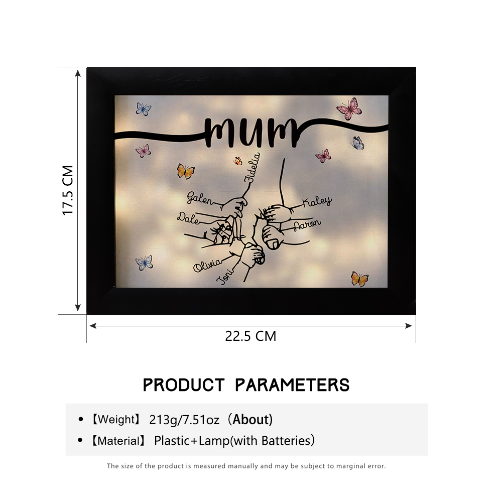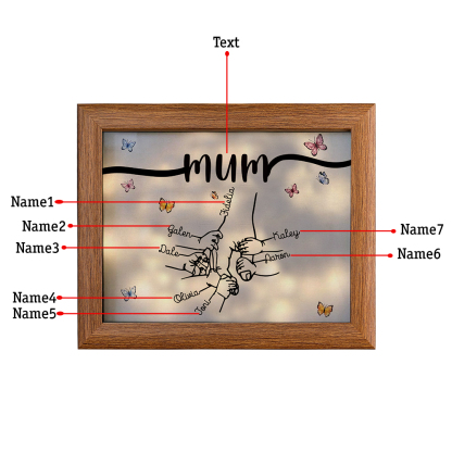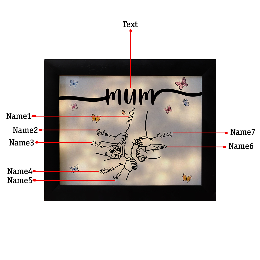 7 Names-Personalized Mum Family Hooking Hands Frame Custom Text LED Night Light Gift For Mum