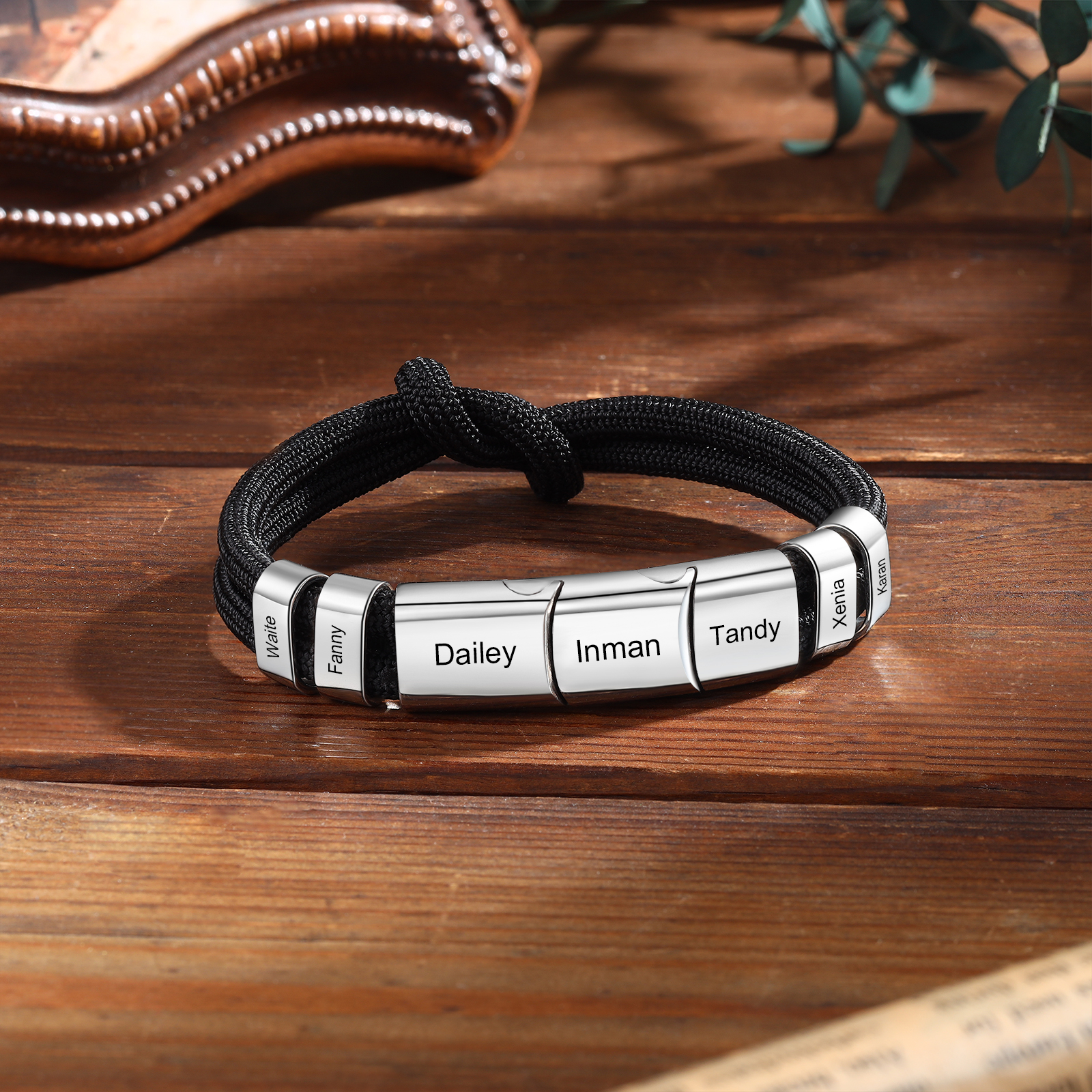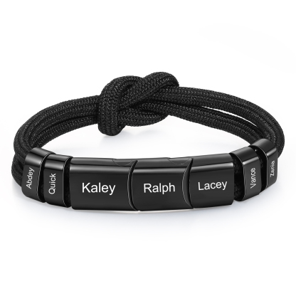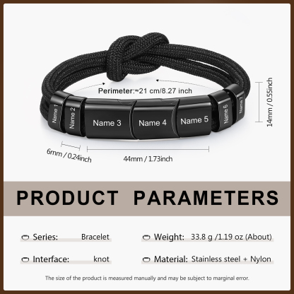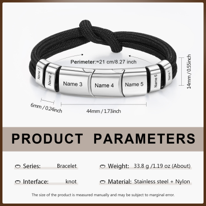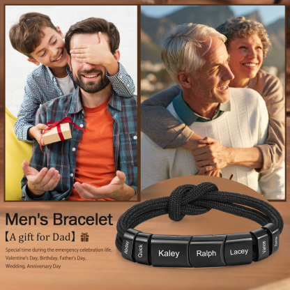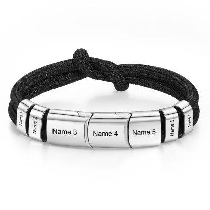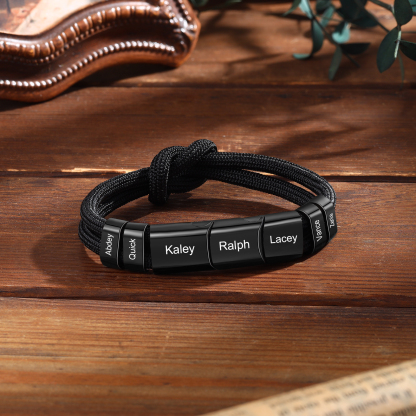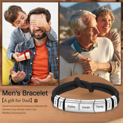 7 Names - Personalized Name Braided Leather Bracelet Engraving Men's Bracelet for Dad