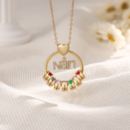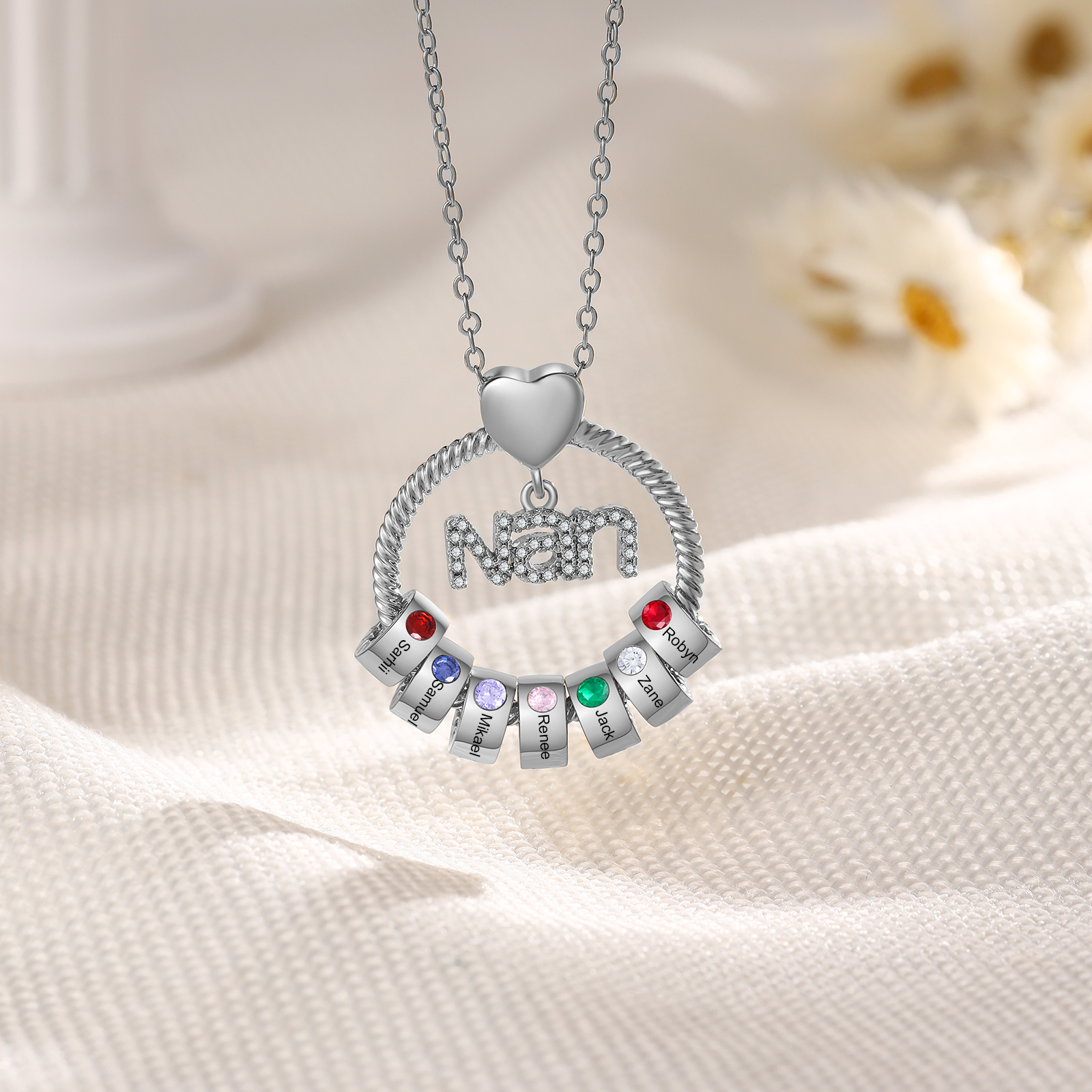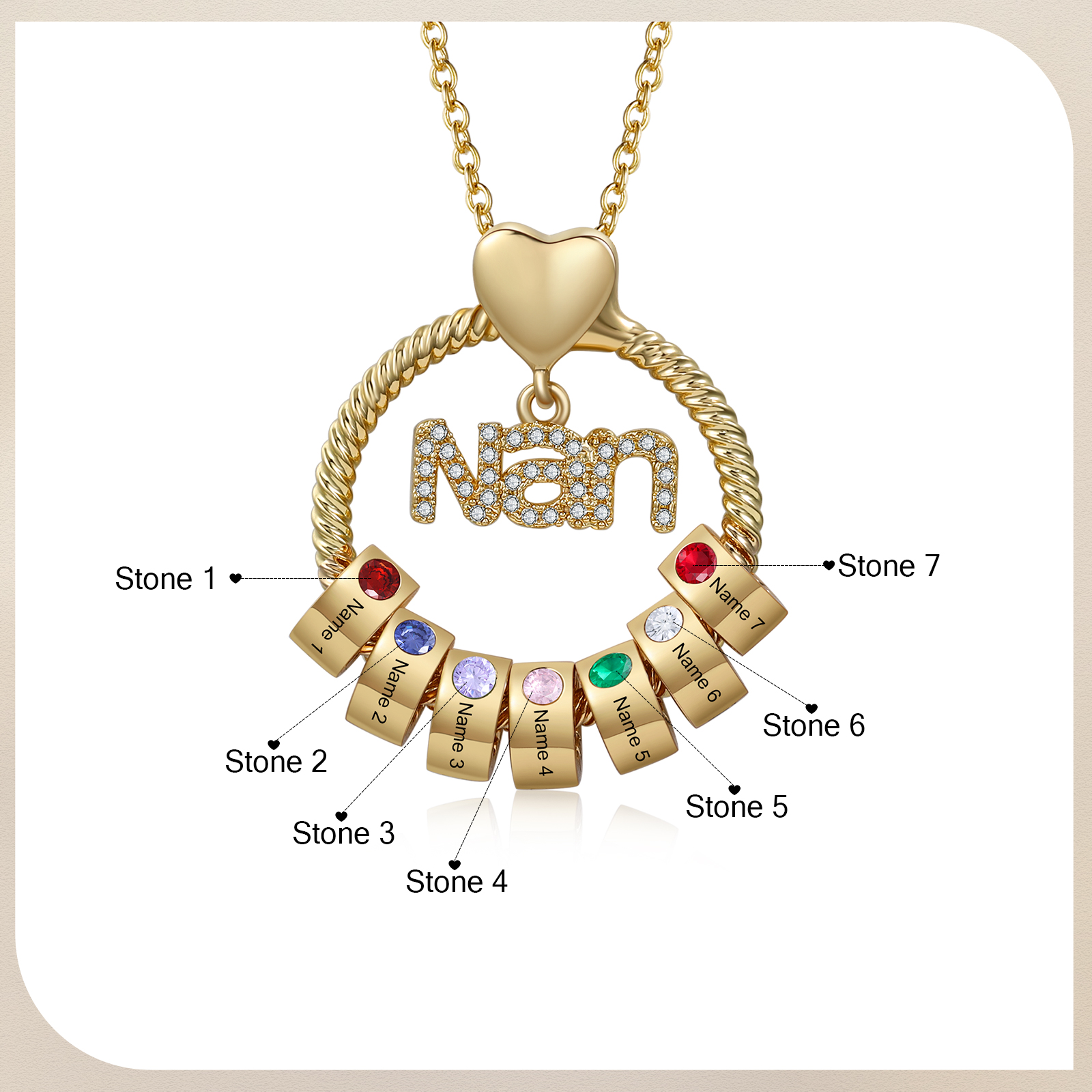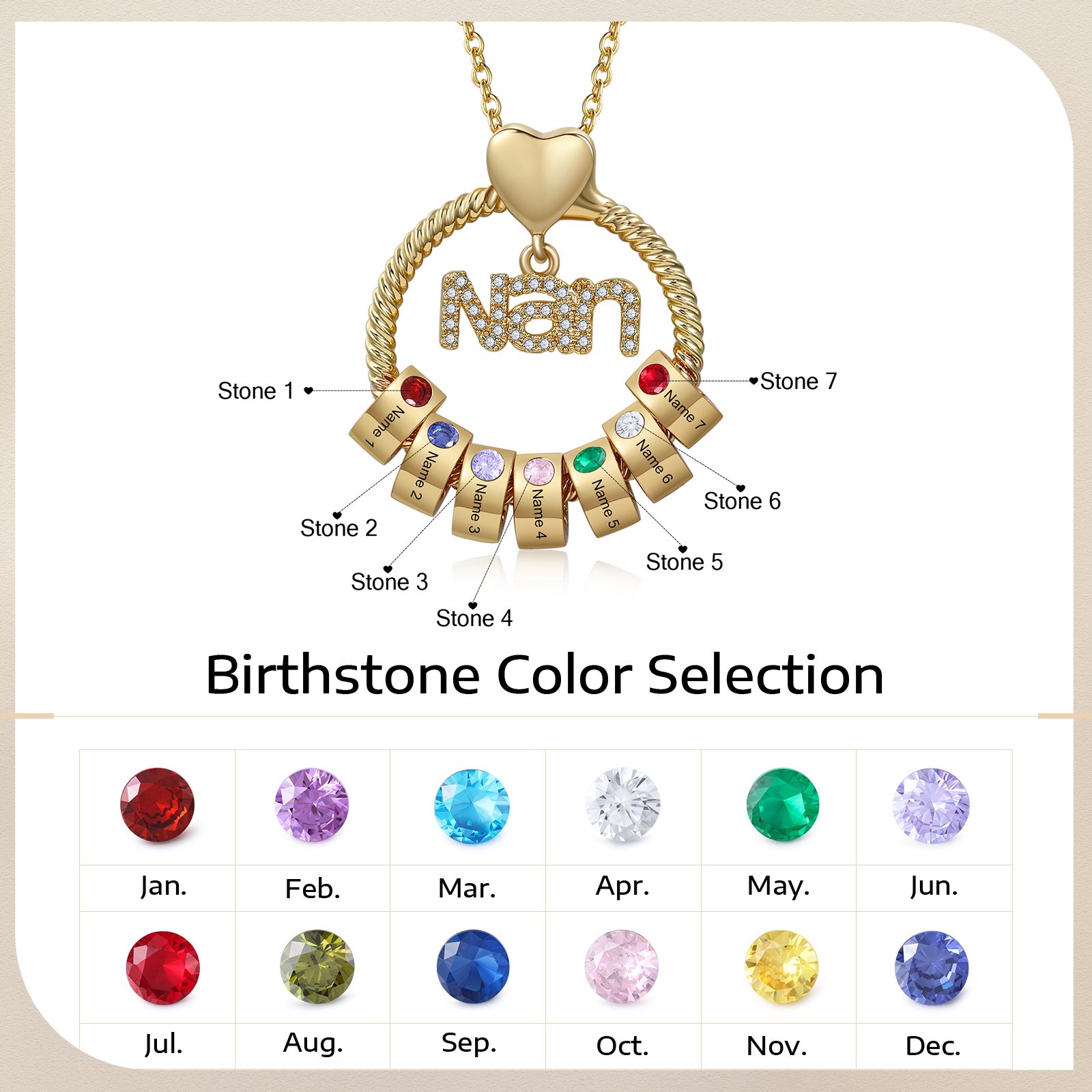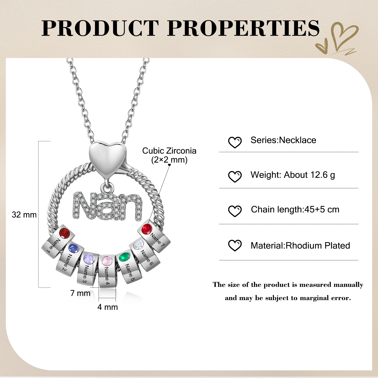 7 Names-Personalized Nan Circle Necklace Set With Rose Flower Gift Box-Custom Woman Necklace With 7 Birthstones Engraved Names Gift For Nan/Nana/Nanny/Granny