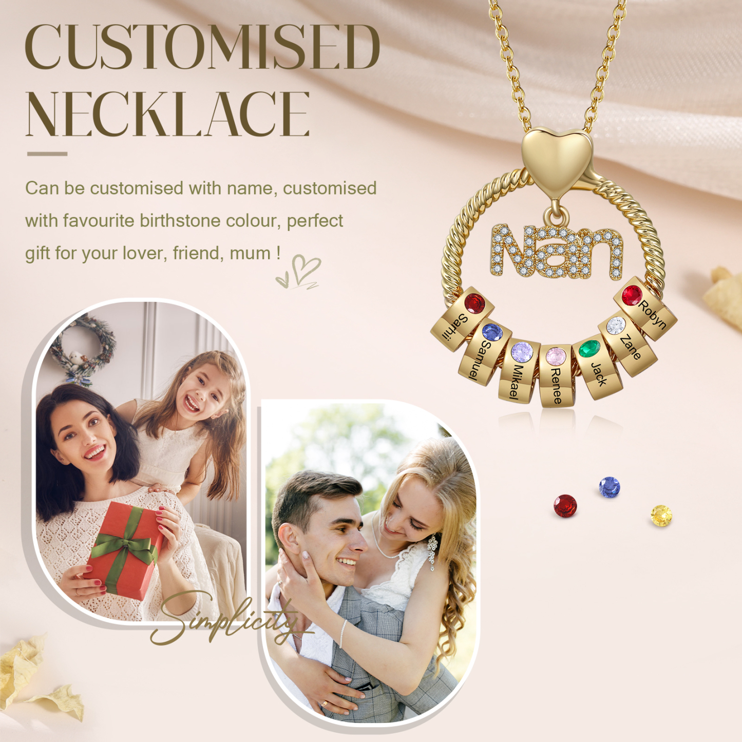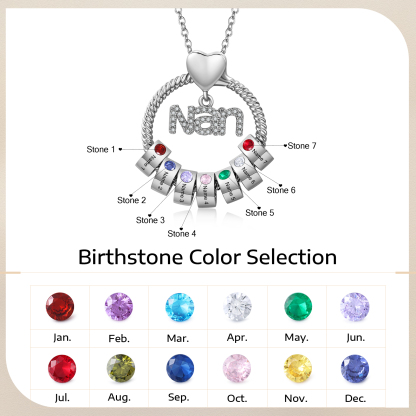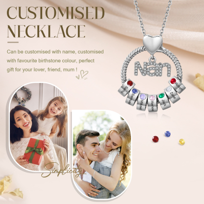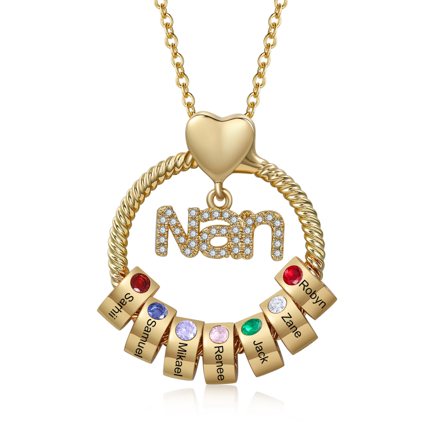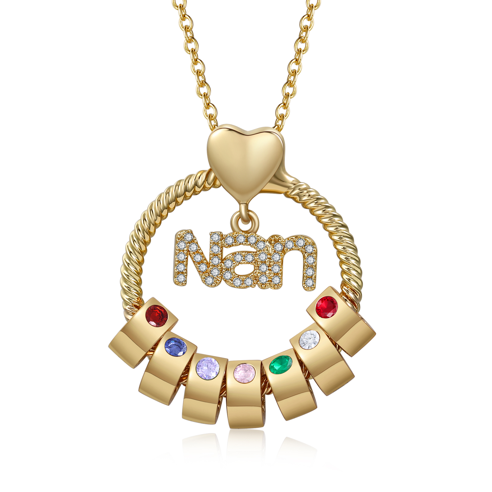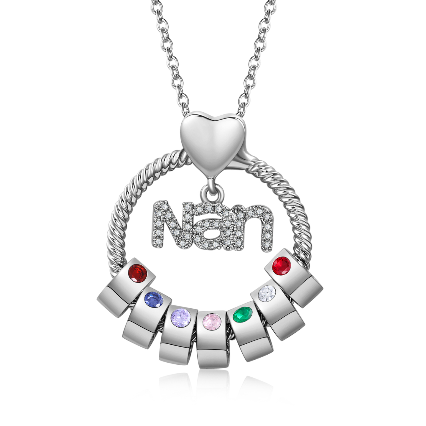 7 Names-Personalized Nan Circle Necklace Set With Rose Flower Gift Box-Custom Woman Necklace With 7 Birthstones Engraved Names Gift For Nan/Nana/Nanny/Granny