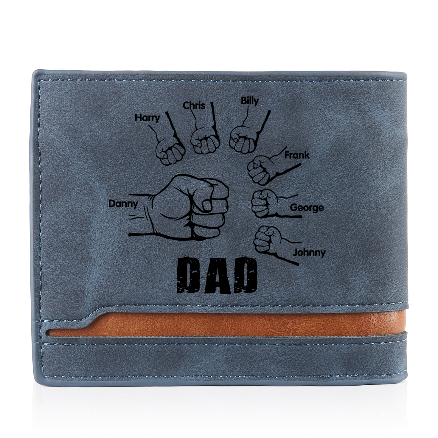 7 Names - Personalized Photo Custom Leather Men's Folding Wallet as a Father's Day Gift for Dad