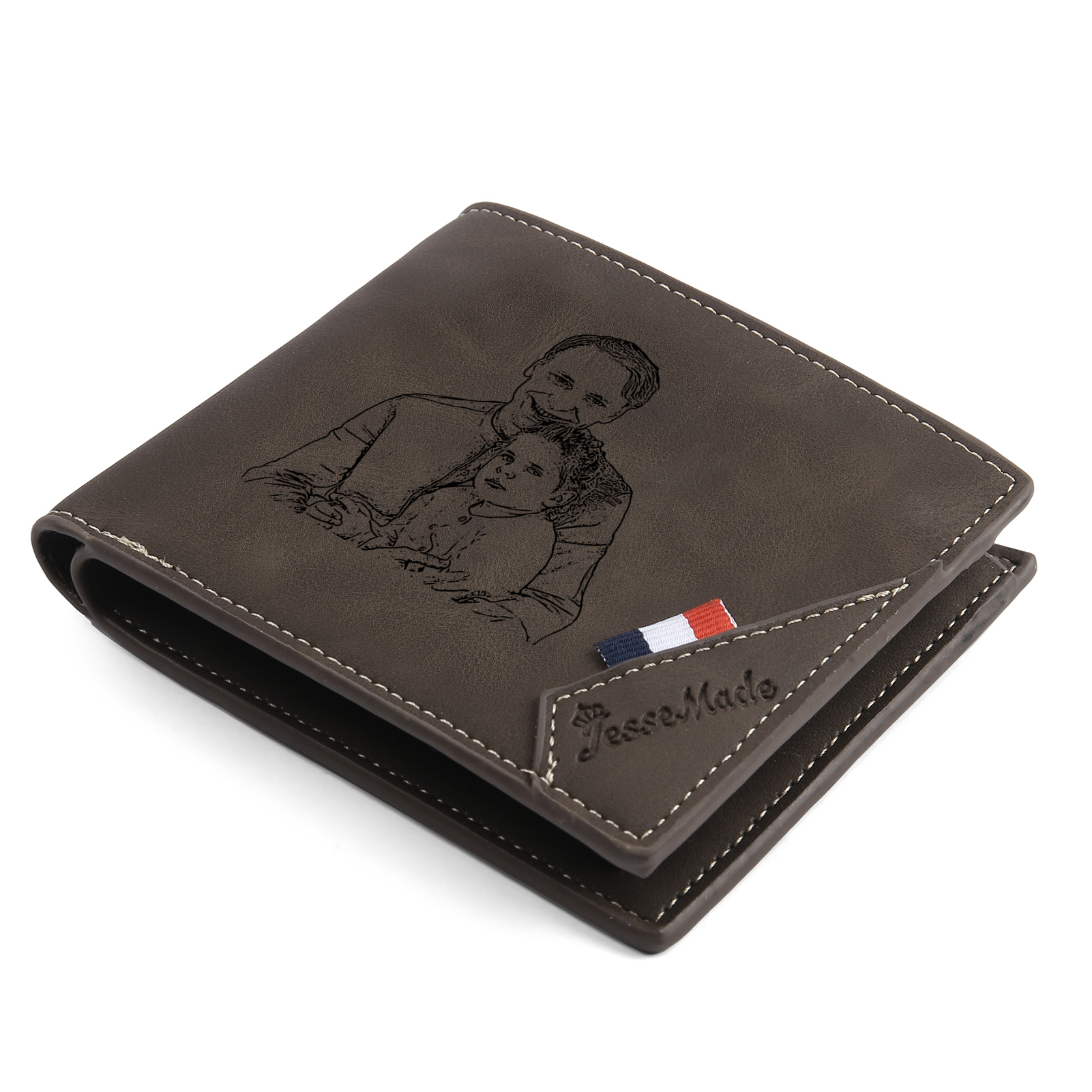 7 Names - Personalized Photo Custom Leather Men's Folding Wallet as a Father's Day Gift for Dad