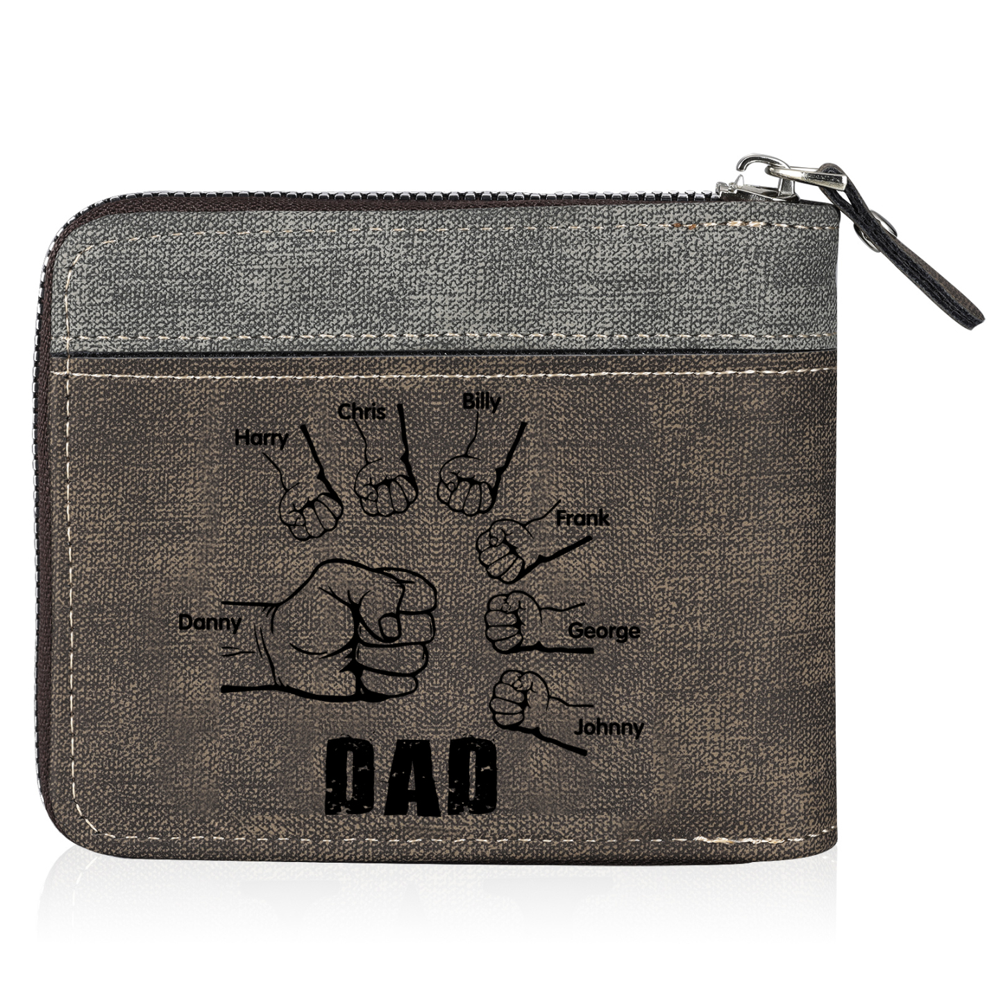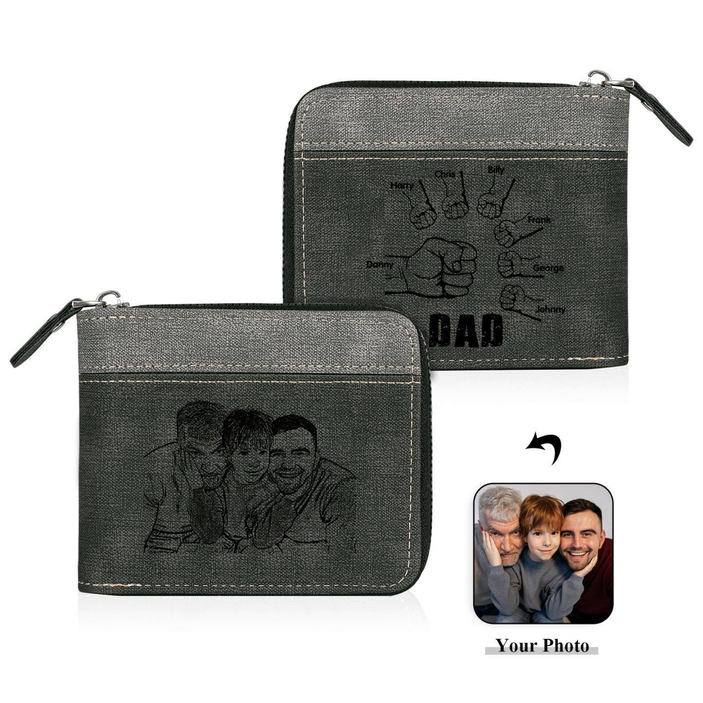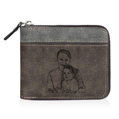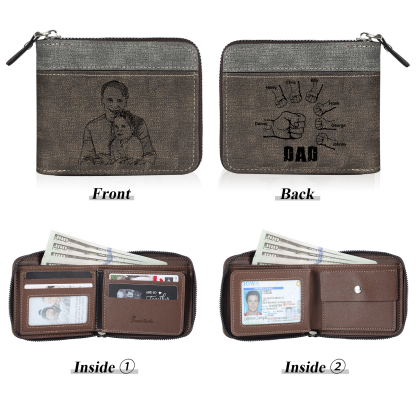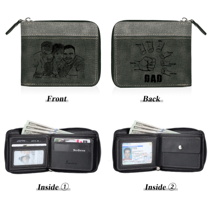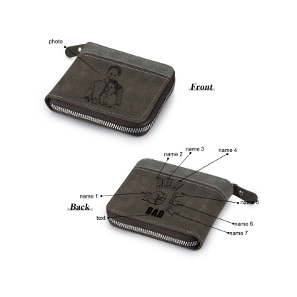 7 Names - Personalized Photo Custom Leather Men's Zipper Wallet as a Father's Day Gift for Dad