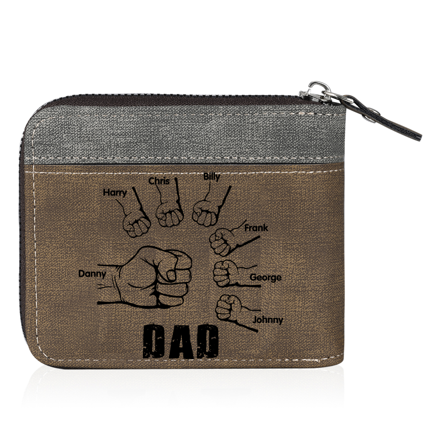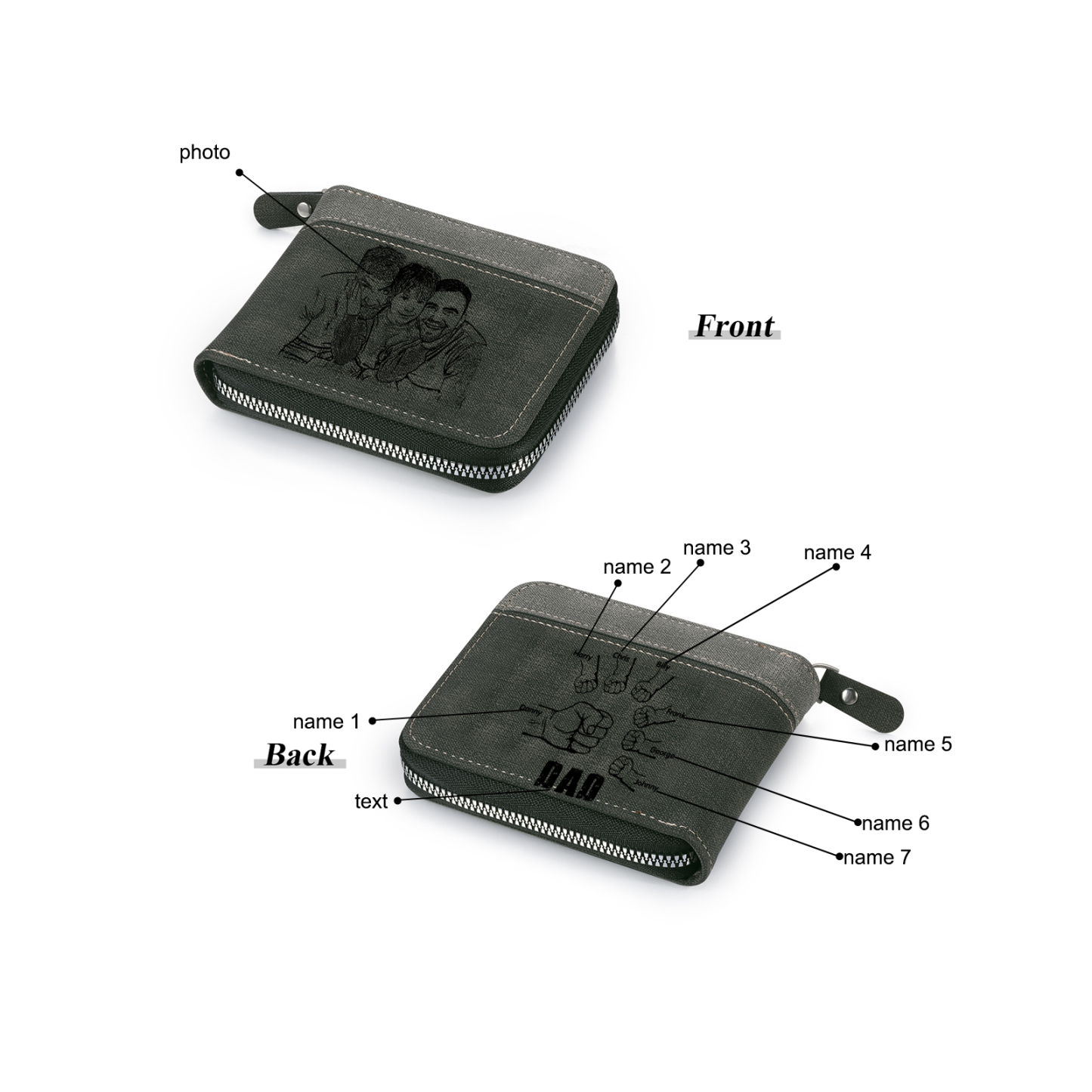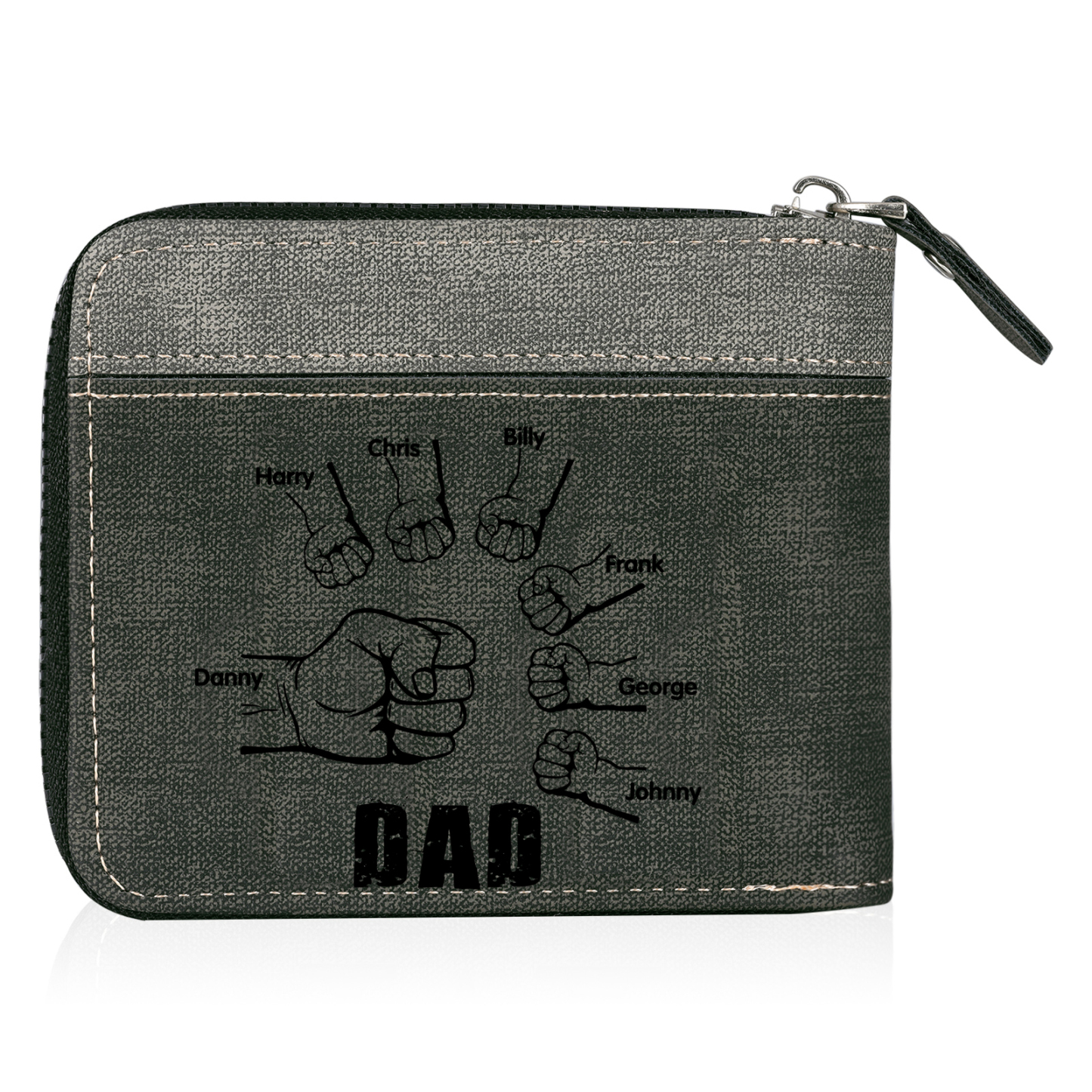 7 Names - Personalized Photo Custom Leather Men's Zipper Wallet as a Father's Day Gift for Dad