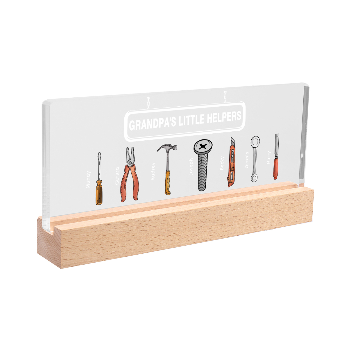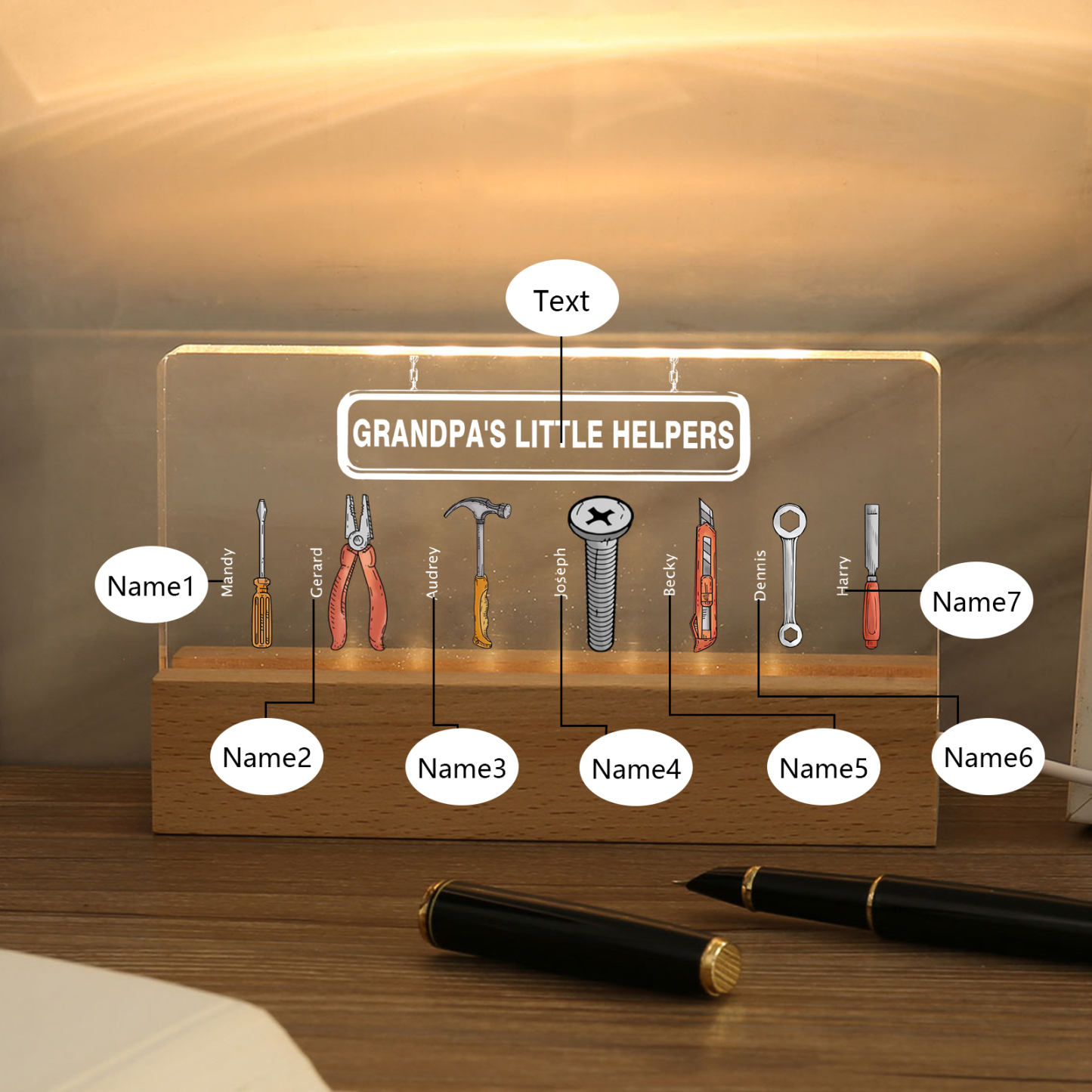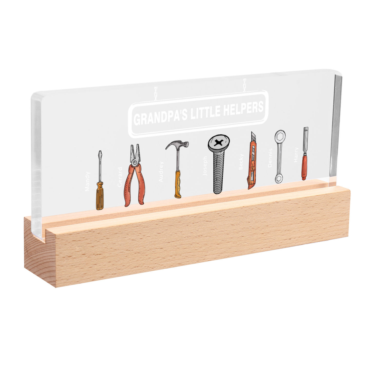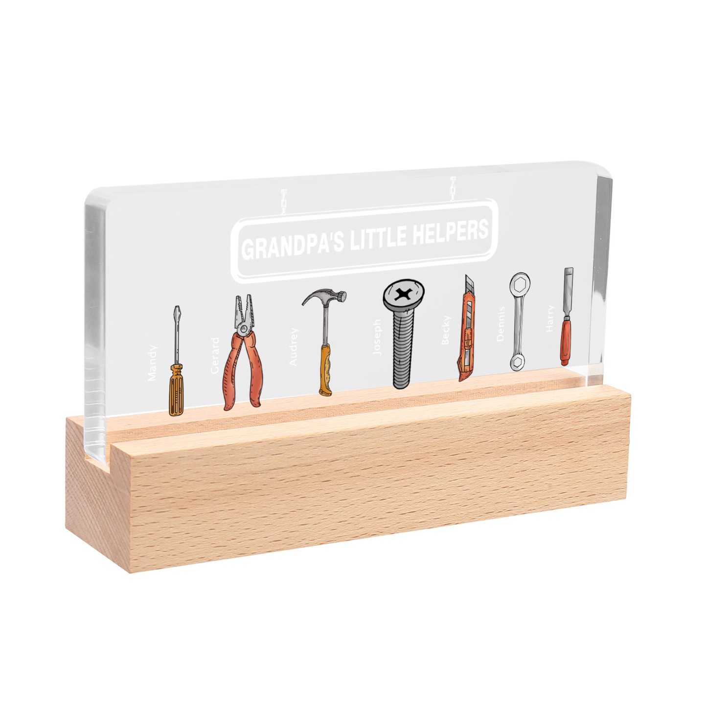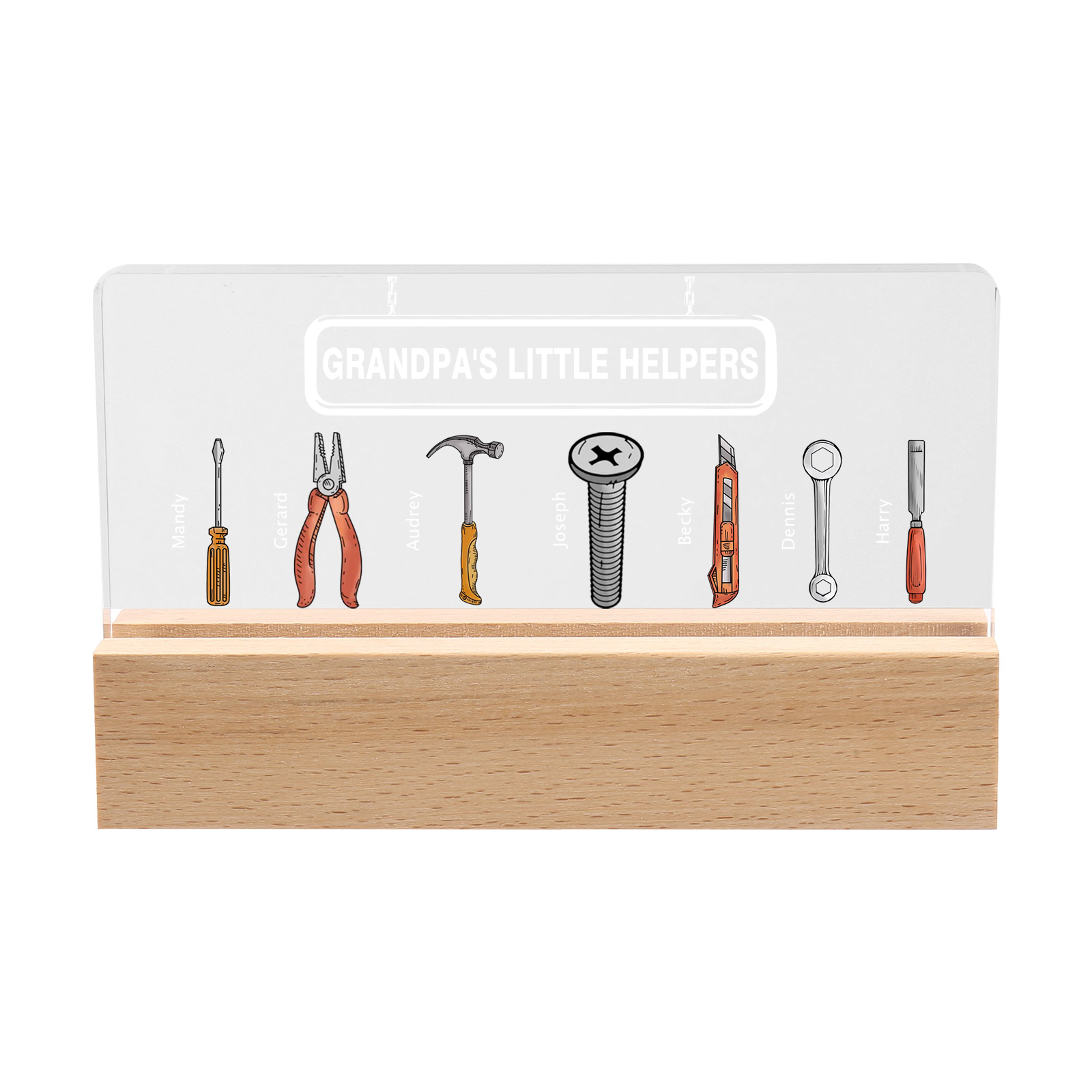 7 Names - Personalized Repair Tool Pattern Table Lamp Customized Text Father's Day Gift for Grandpa/Dad